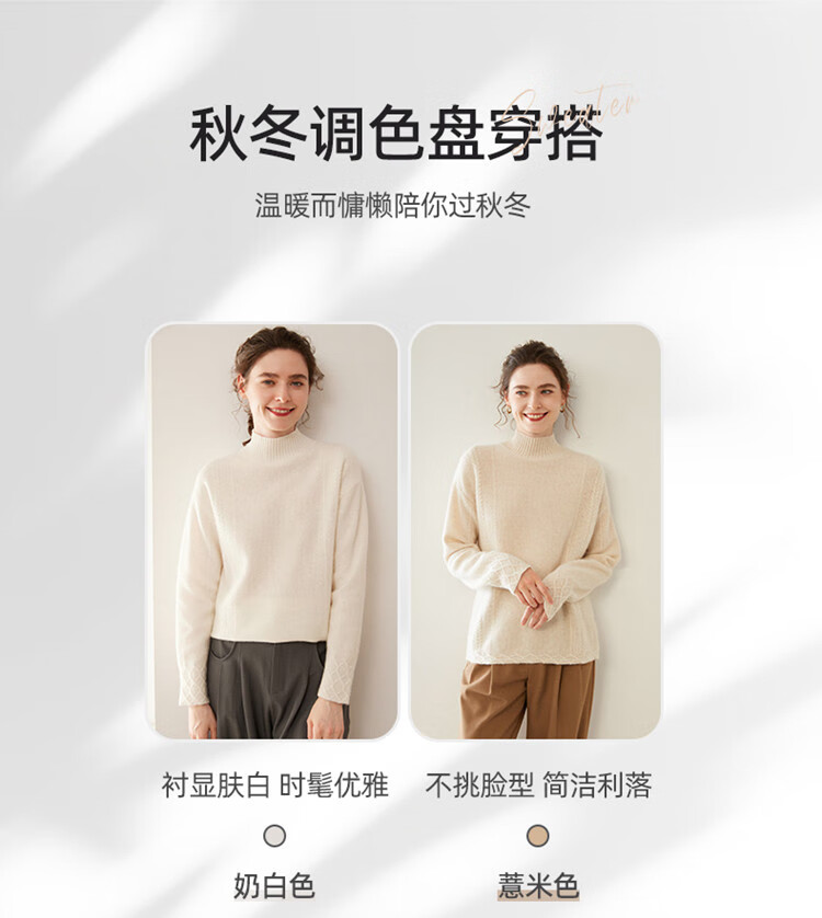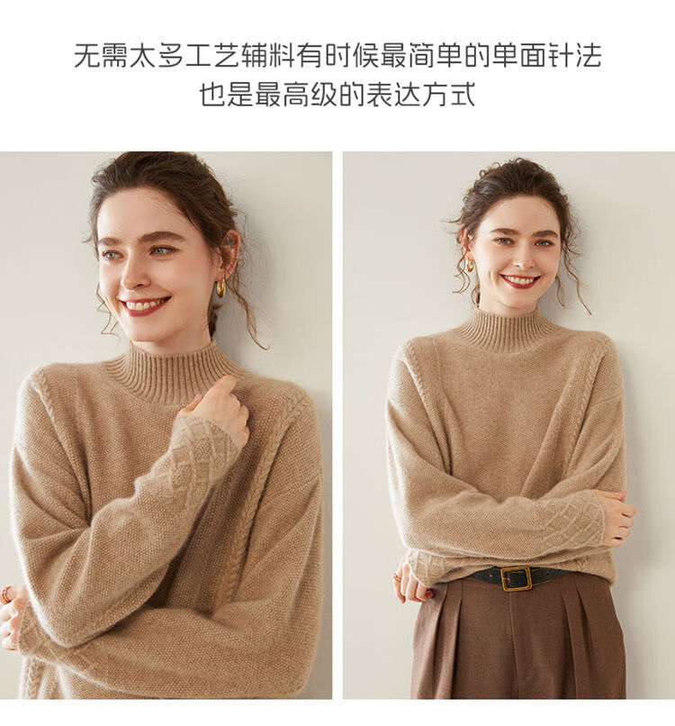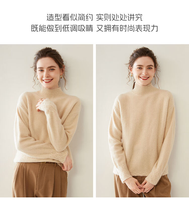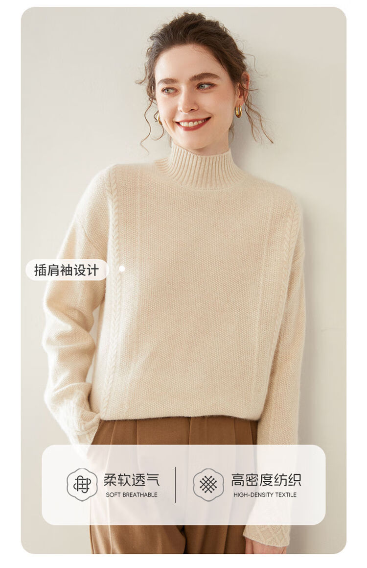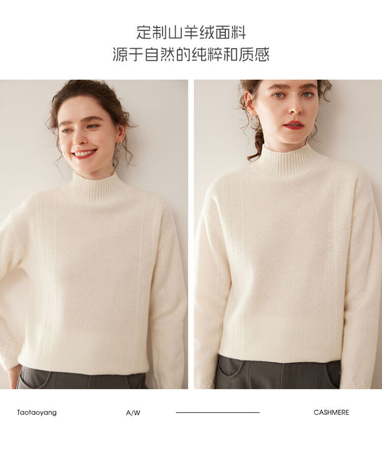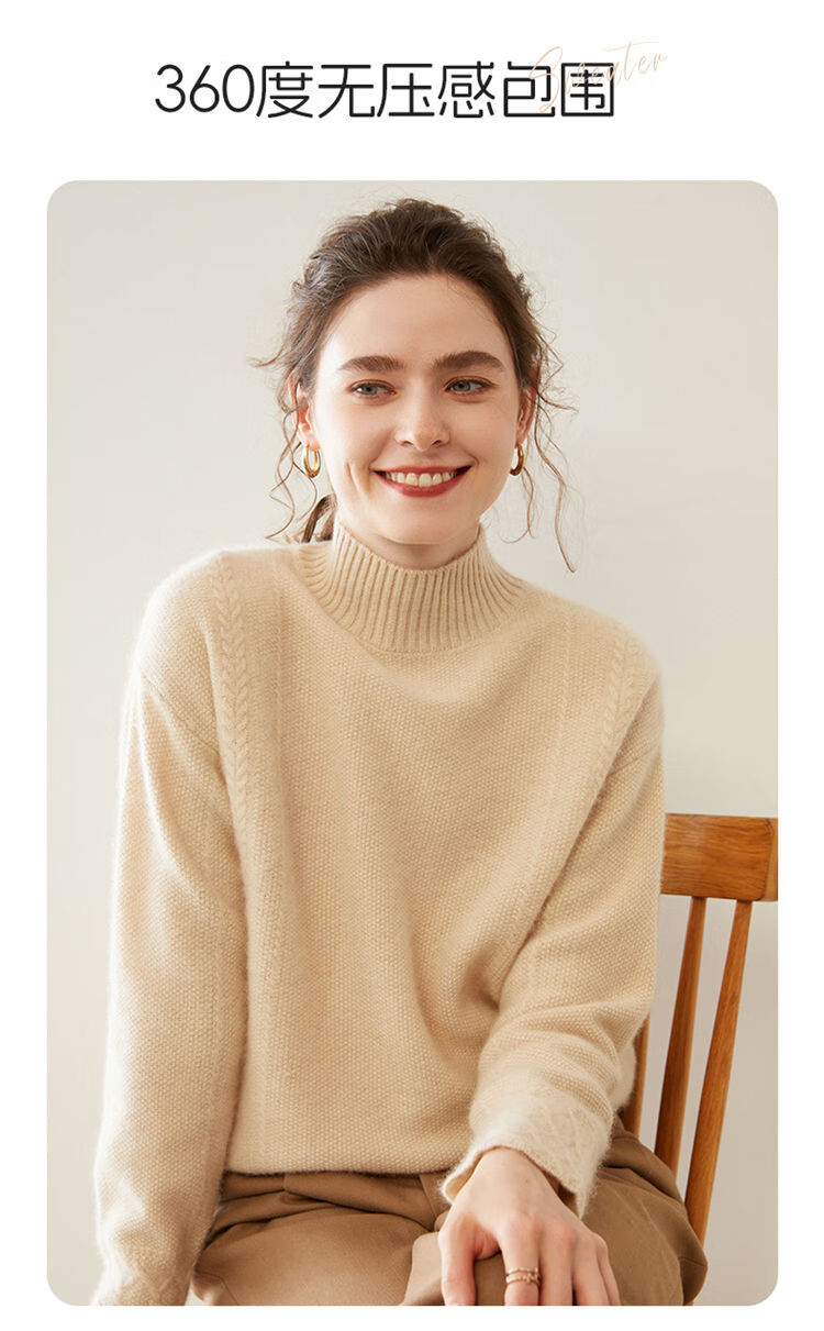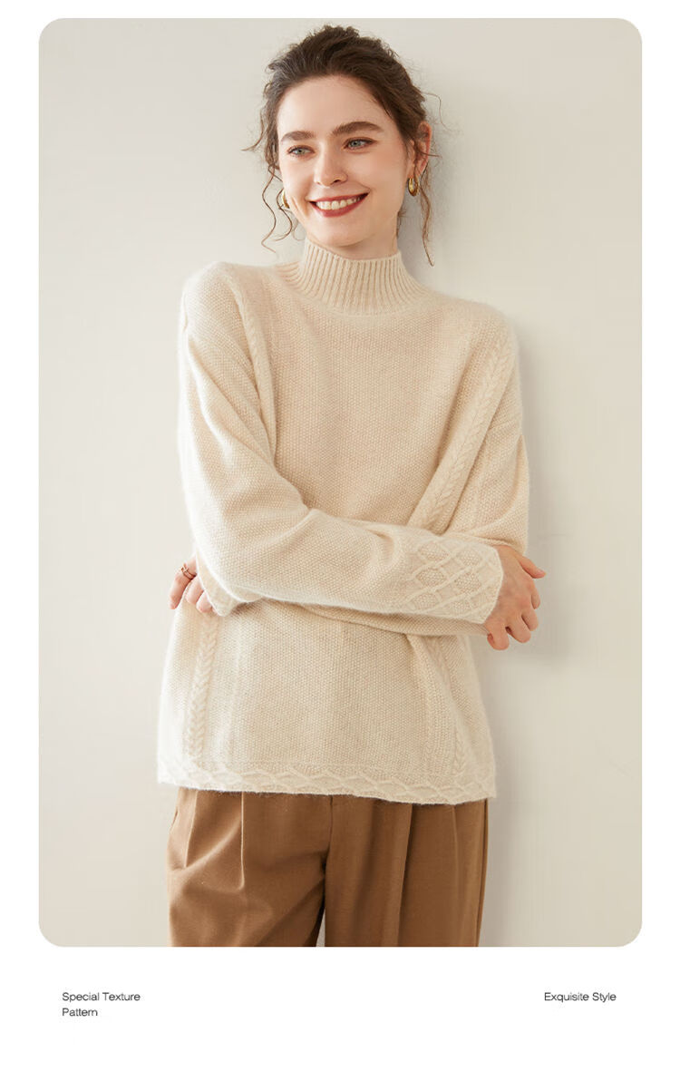 SENLIYA international light luxury high-end cashmere sweater women's half turtleneck pullover sweater loose thickened inner stitching milk white S