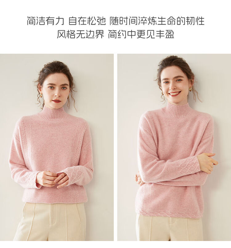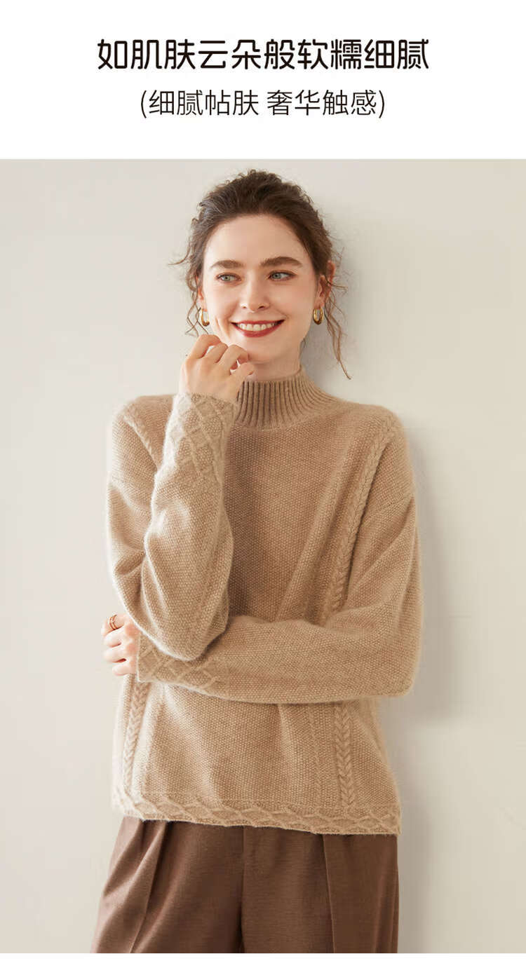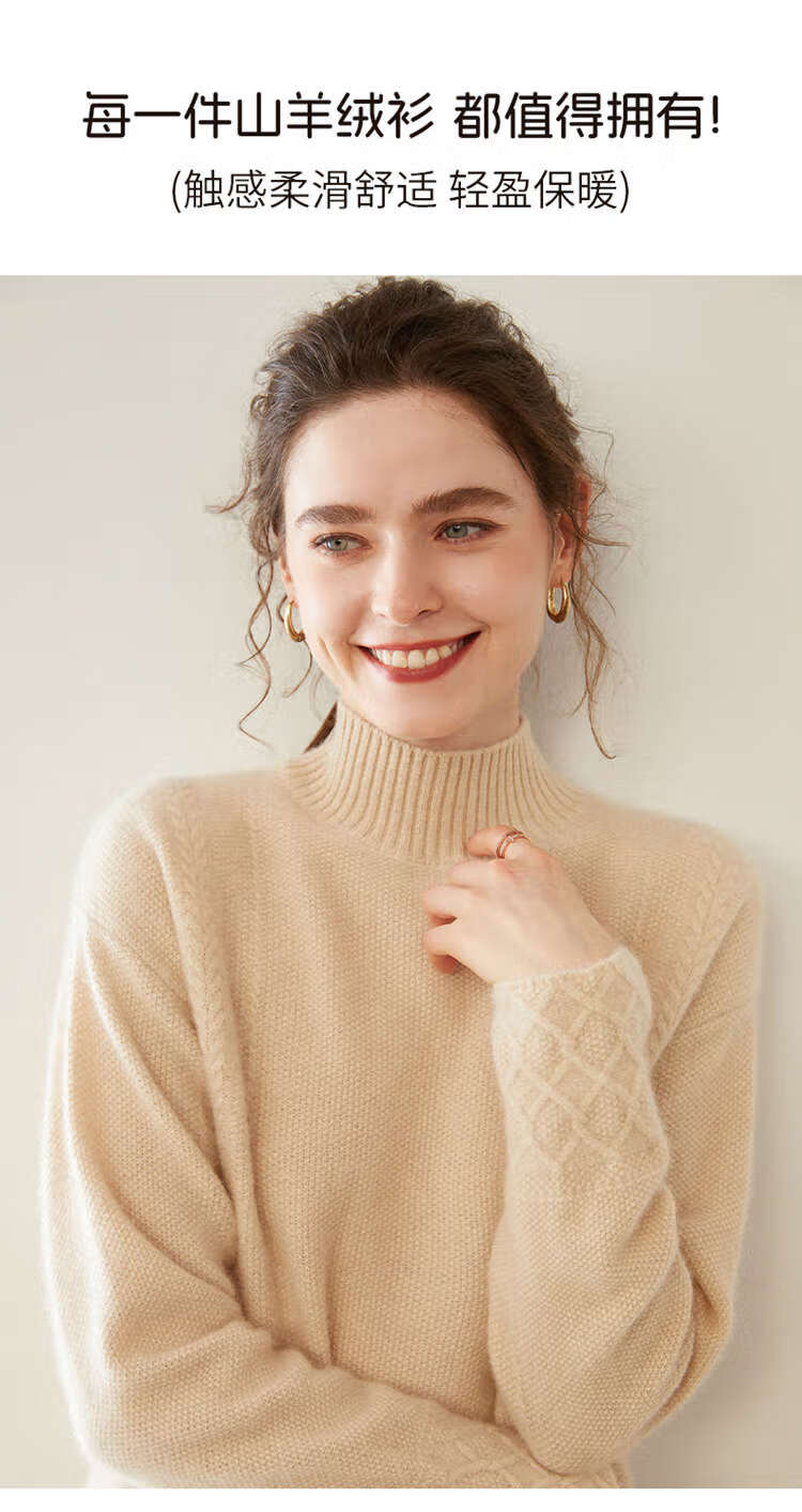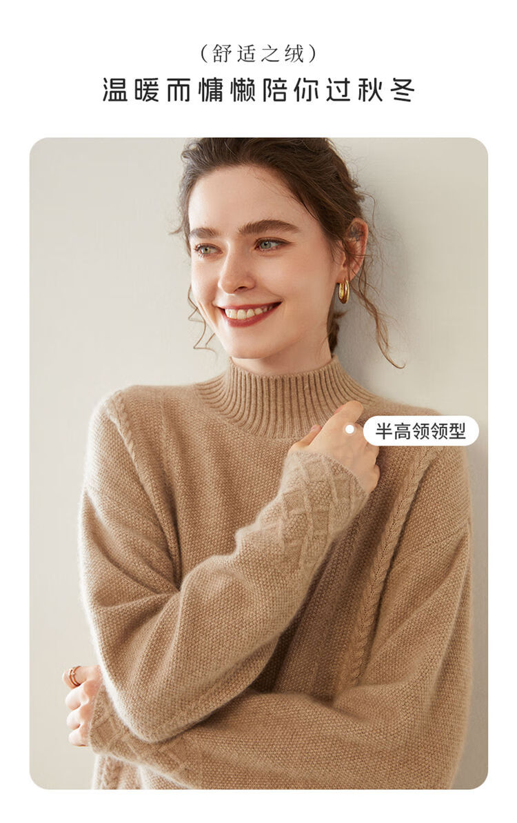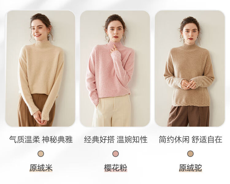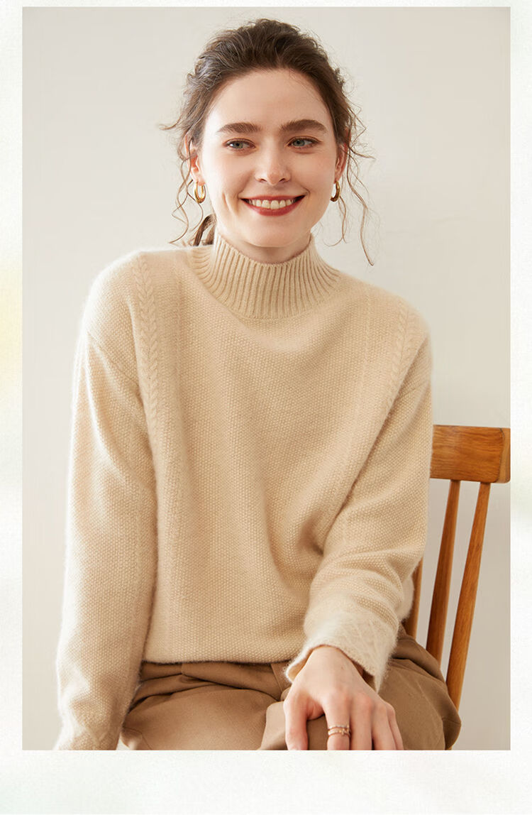 SENLIYA international light luxury high-end cashmere sweater women's half turtleneck pullover sweater loose thickened inner stitching milk white S