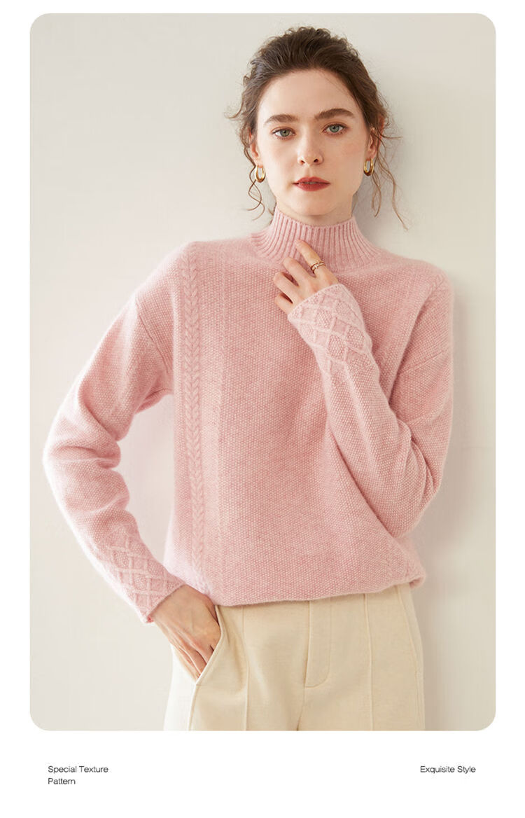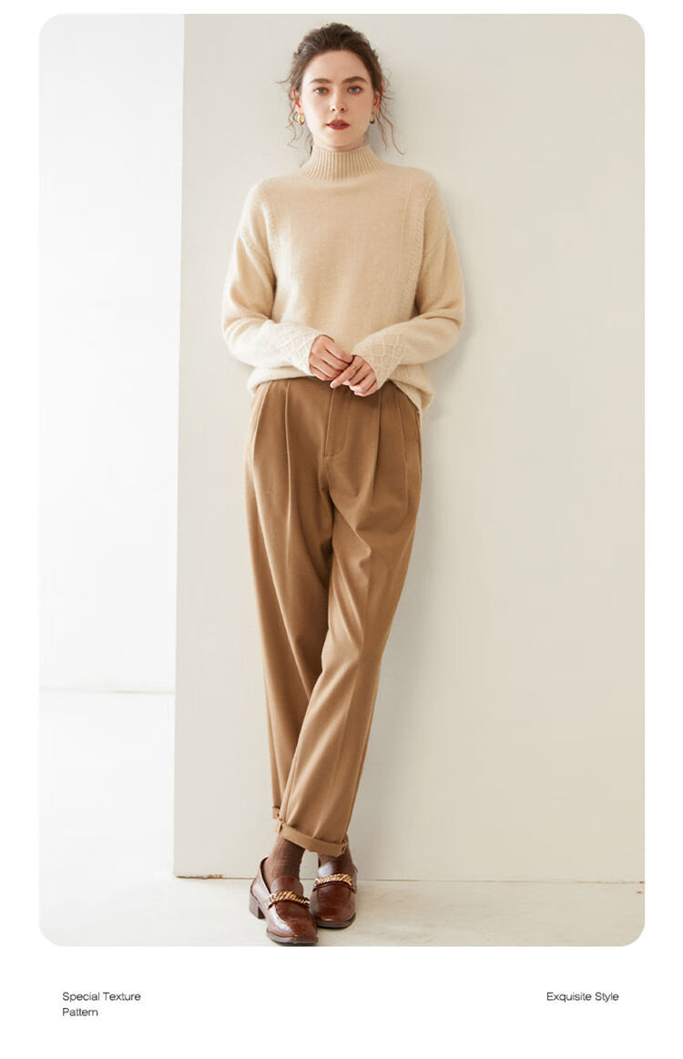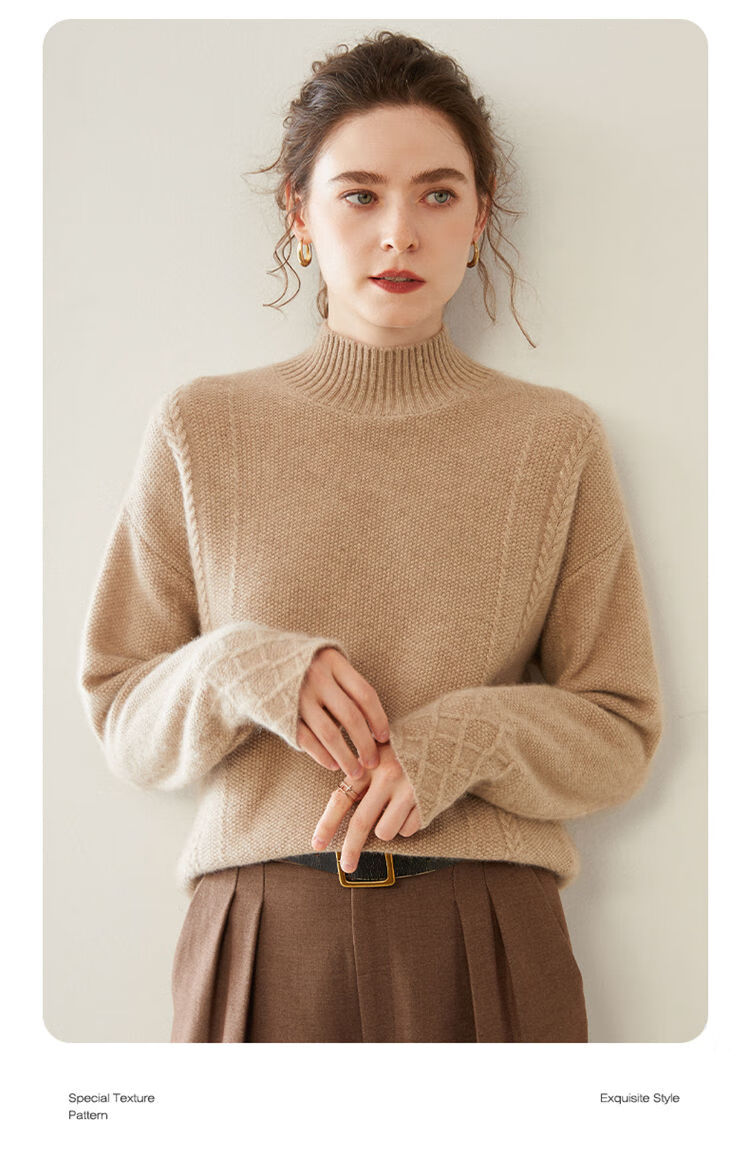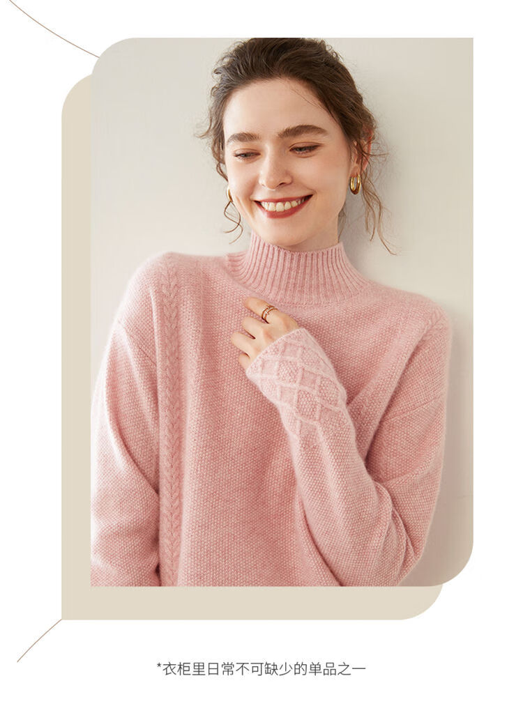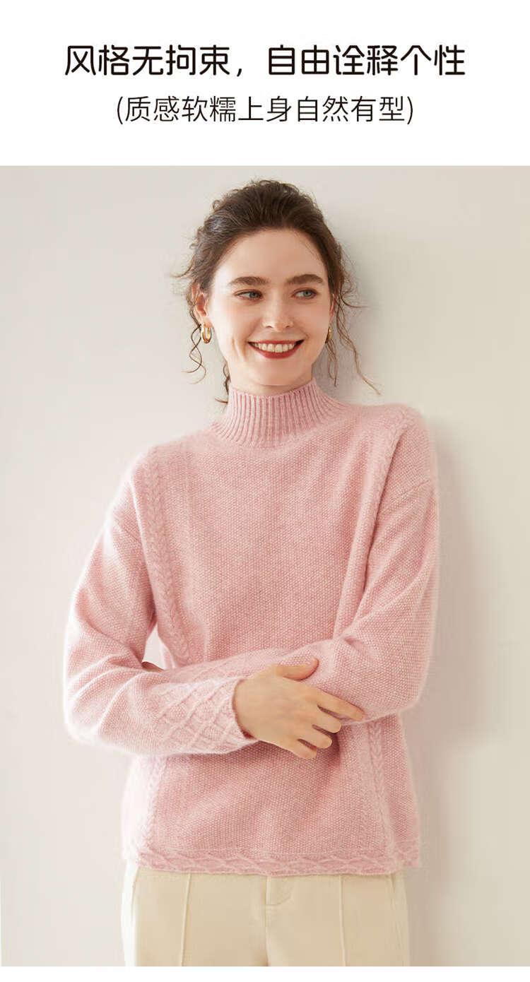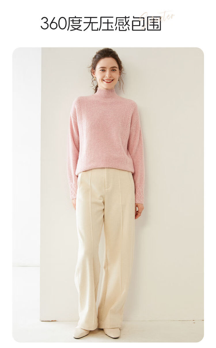 SENLIYA international light luxury high-end cashmere sweater women's half turtleneck pullover sweater loose thickened inner stitching milk white S