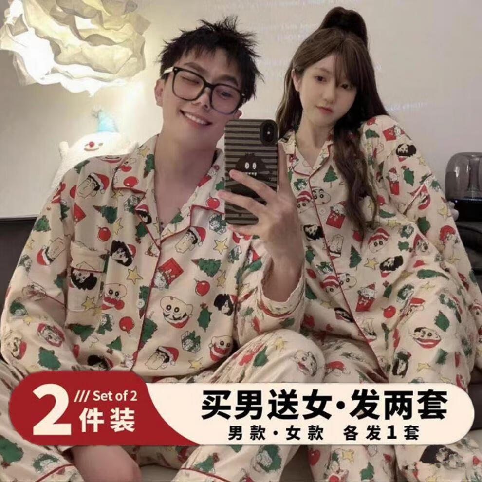 Jingga 2025 new ins crayon Shin-chan pajamas for women spring and autumn long-sleeved Internet celebrity loose men's home clothes set two sets #白小新long-sleeved trousers XL female + male XL