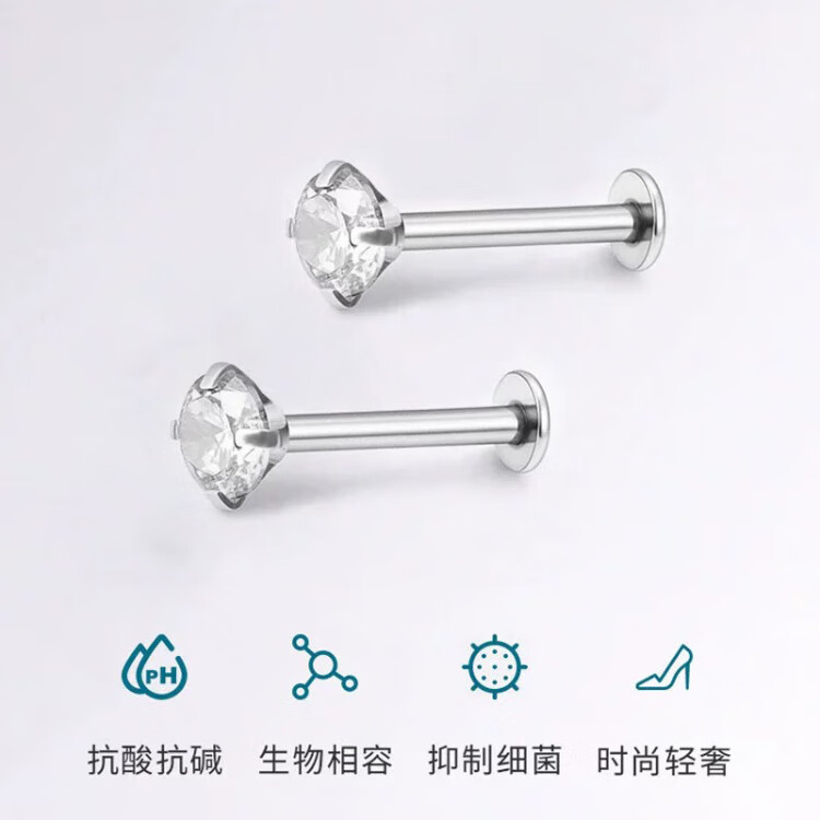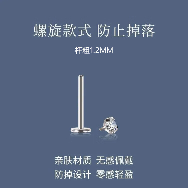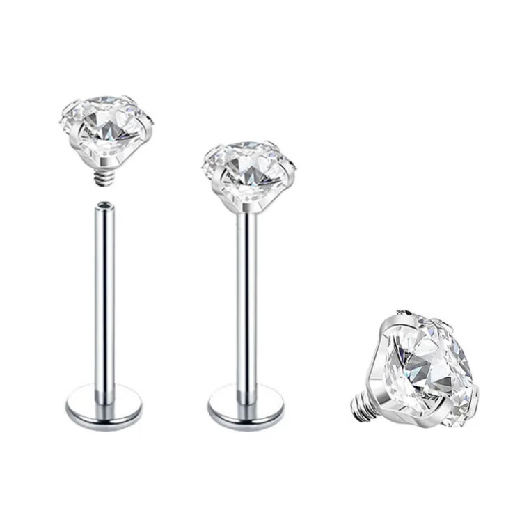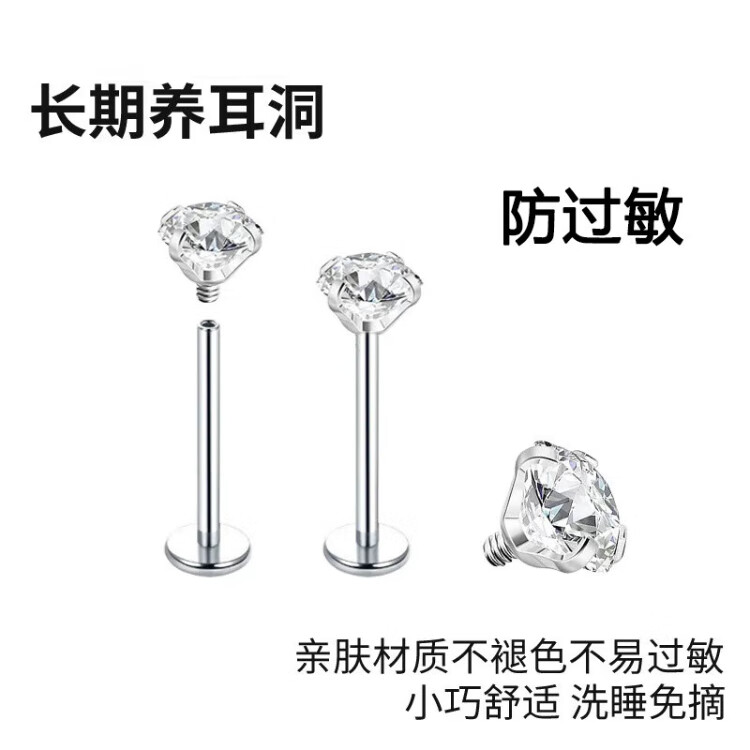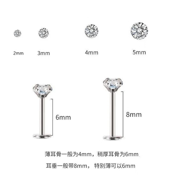 CEENIUF136 Medical Titanium Alloy Earrings, Ear Bone Nails, Ear Hole Implantation Grade, No-Pick, Hypoallergenic, Internal Spiral Girlfriend Earrings, 5mm Hao Stone, One Pair, Rod Length 8mm, Rod Thickness 1.2mm
