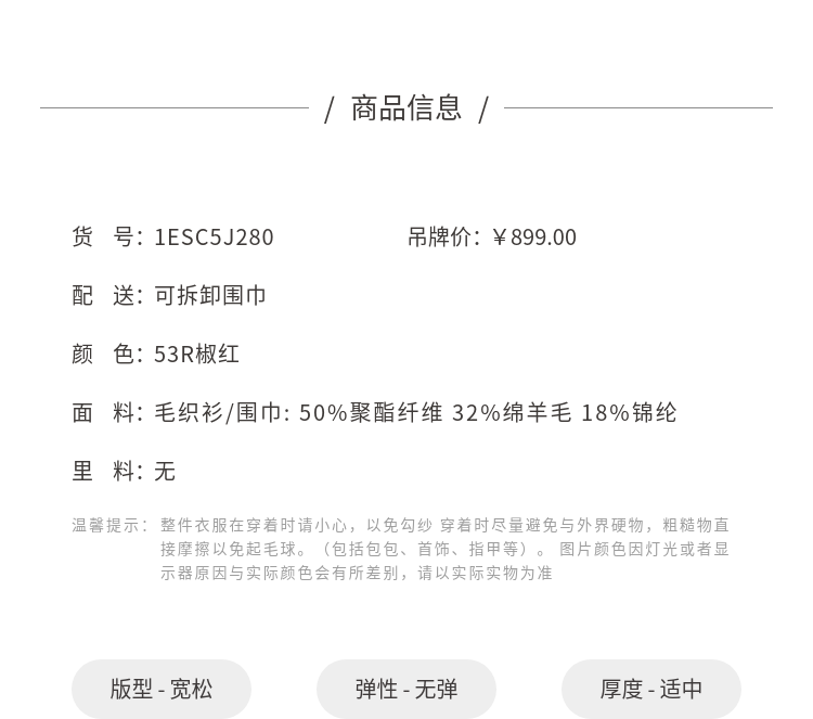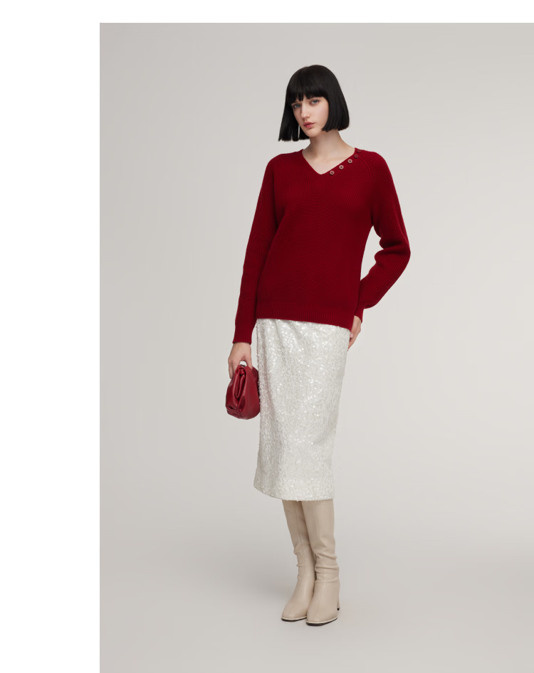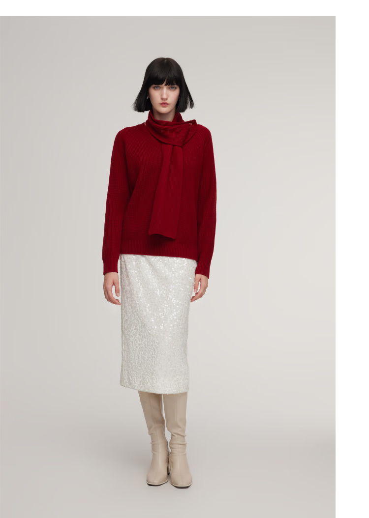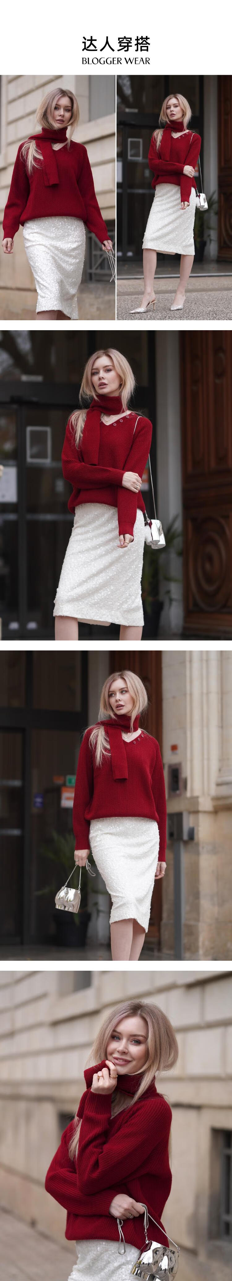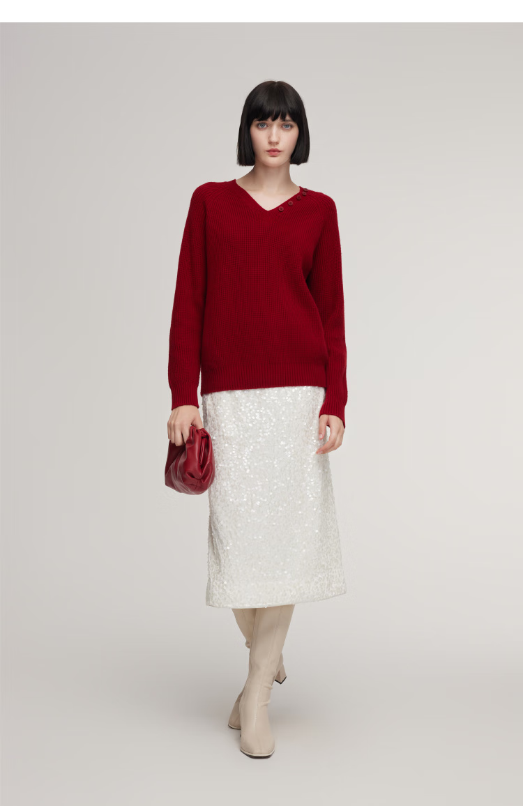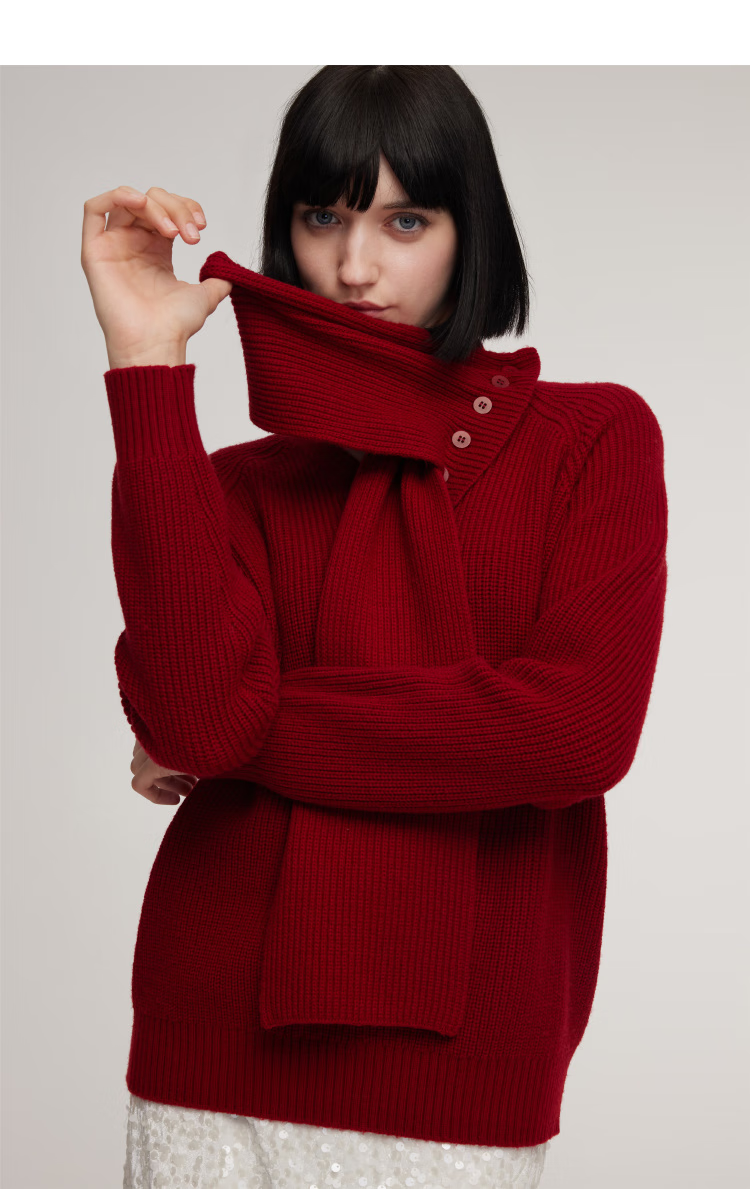 Gloria red sweater for women, great-looking autumn and winter wear, niche lazy top 1ESC5J280 53R pepper red S