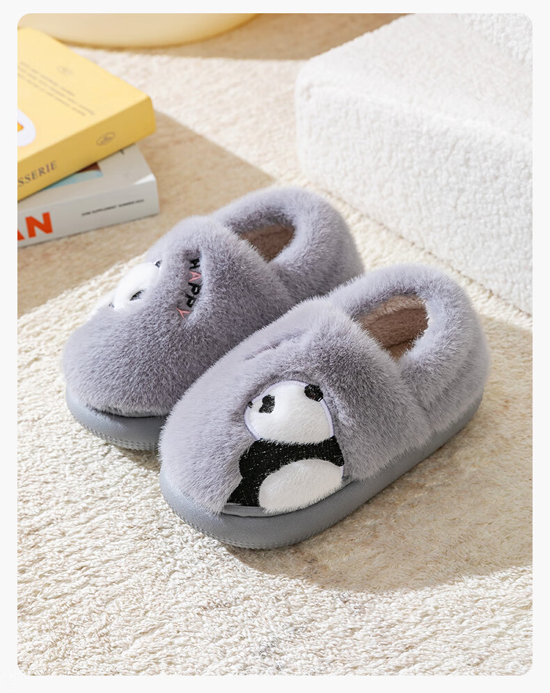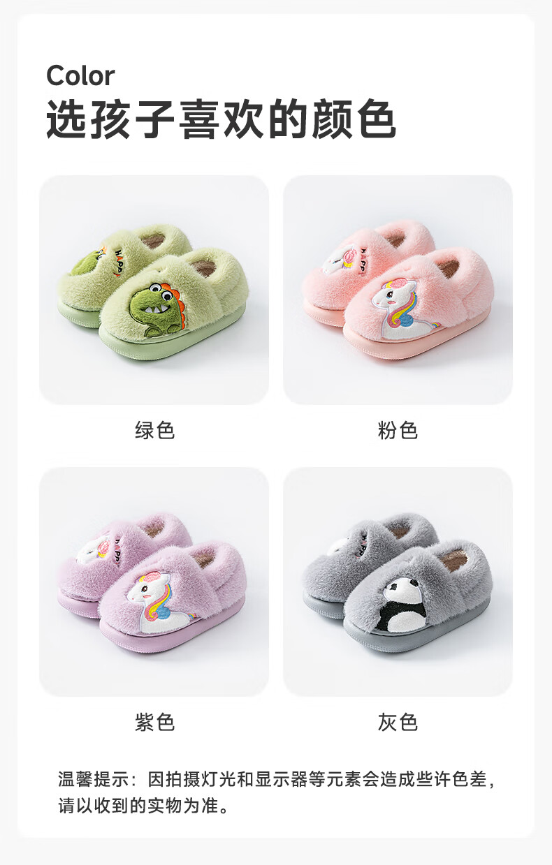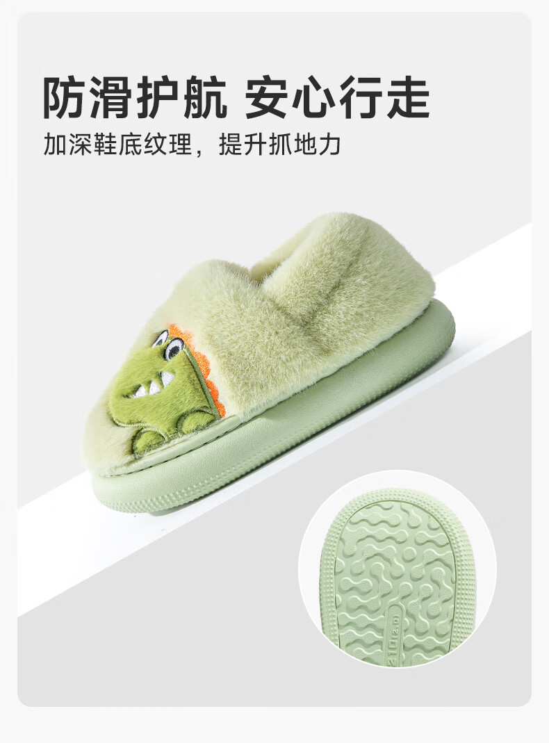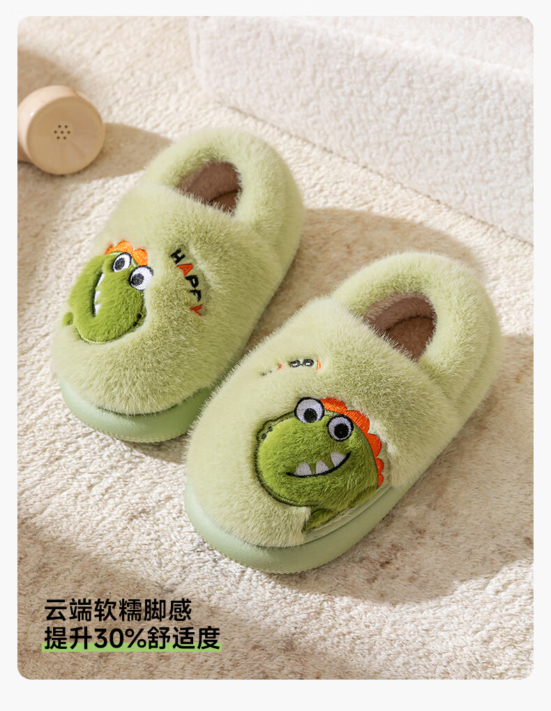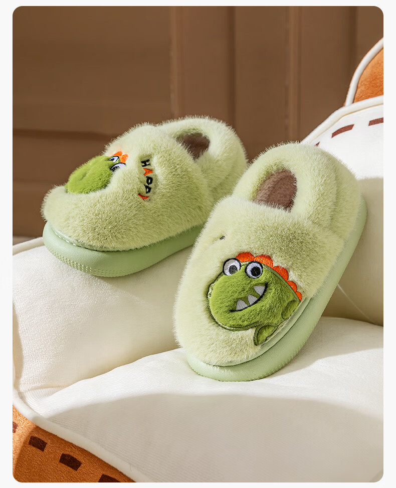 Pig Daddy Children's Cotton Slippers Autumn and Winter Bag Heel Boys' Home Indoor Warm Panda Furry Cotton Shoes for Middle-aged and Little Girls Green Little Dinosaur 18 Inner Length 16cm Suitable for Feet Length 15cm