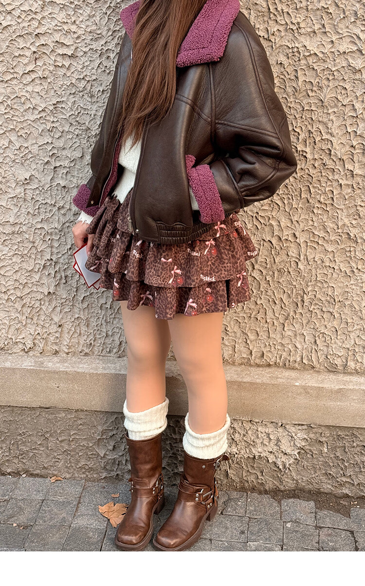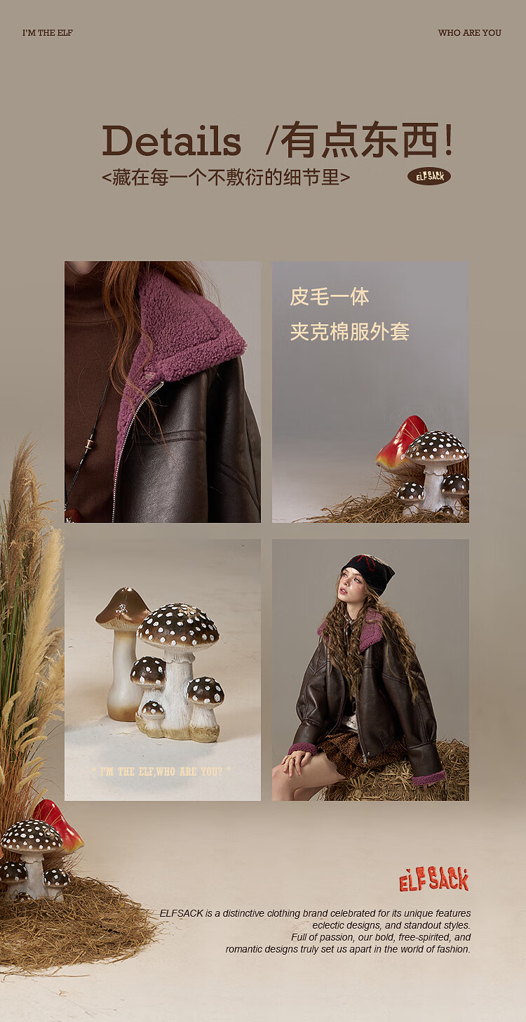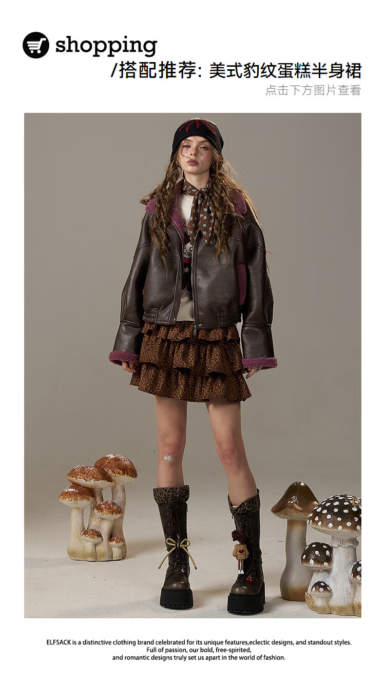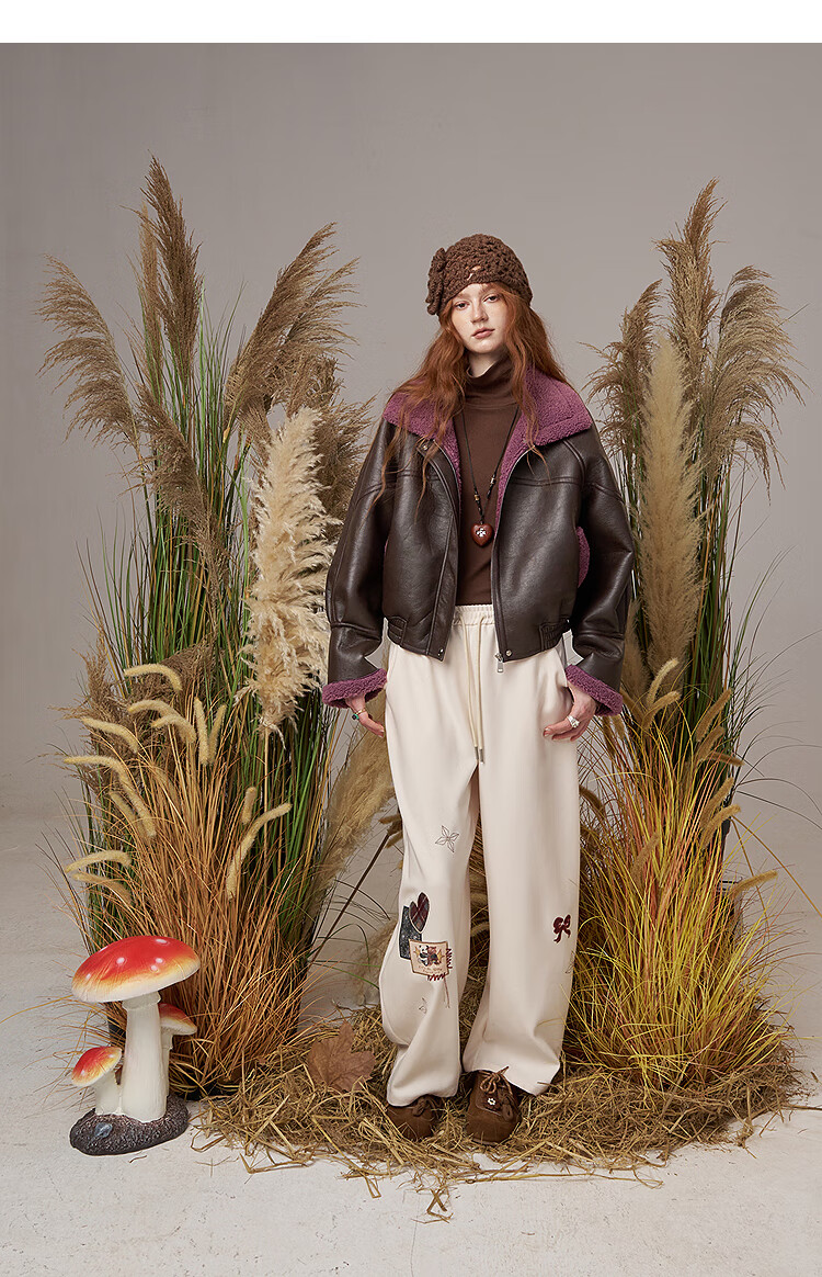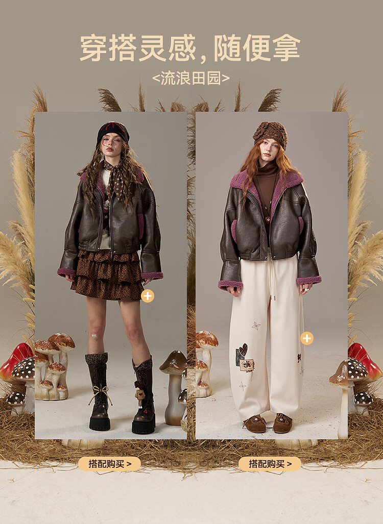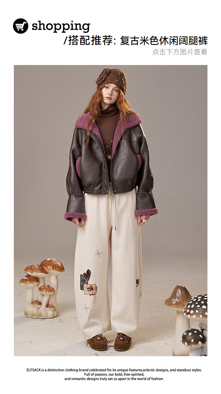 Fairy's Pocket Retro Jacket Plush Cotton Leather Jacket Women's 2025 Winter New Contrast Color Fur One-piece Jacket Retro Brown L