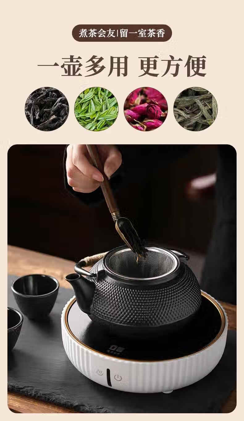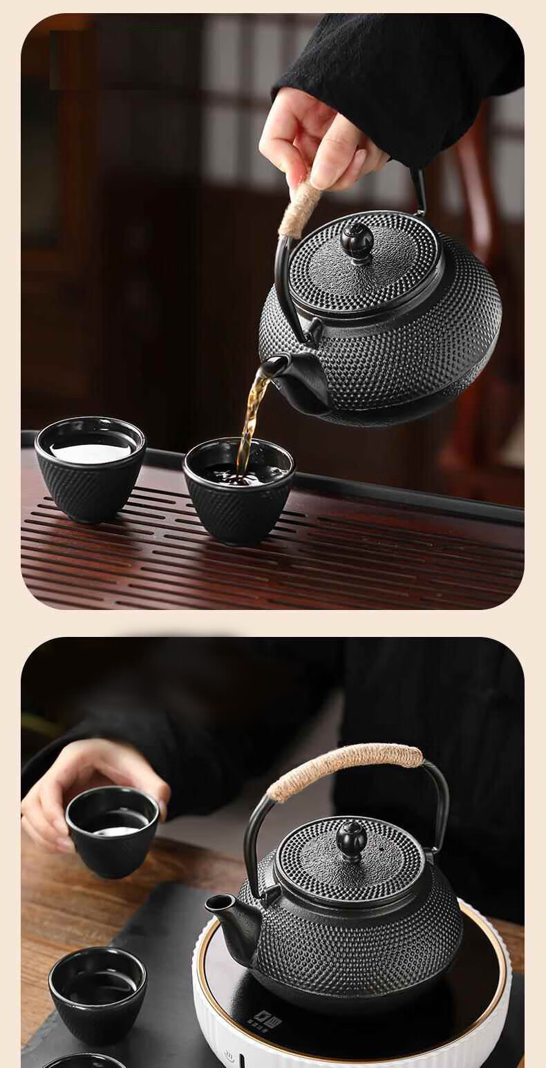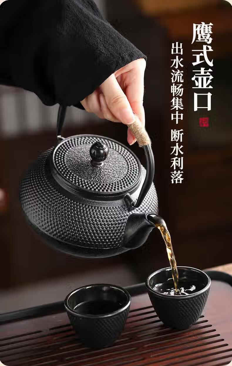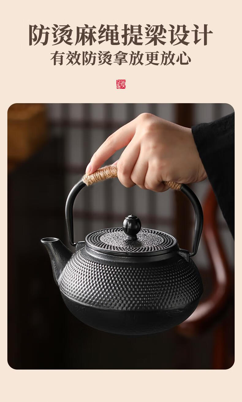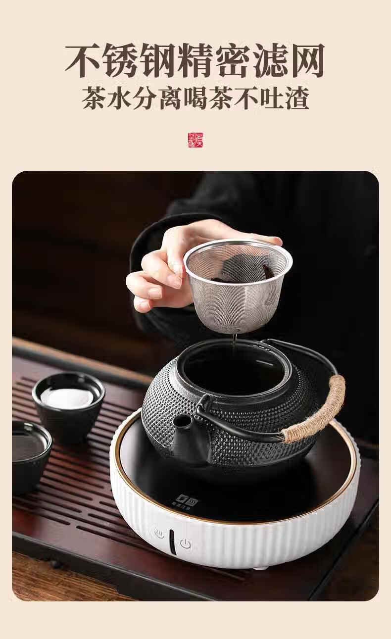 Zhenxiqi cast iron kettle filter teapot stove-cooked teapot large-capacity household tea maker kettle suitable for outdoor open flames portable iron kettle + stainless steel filter 900ml