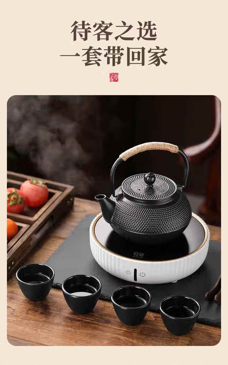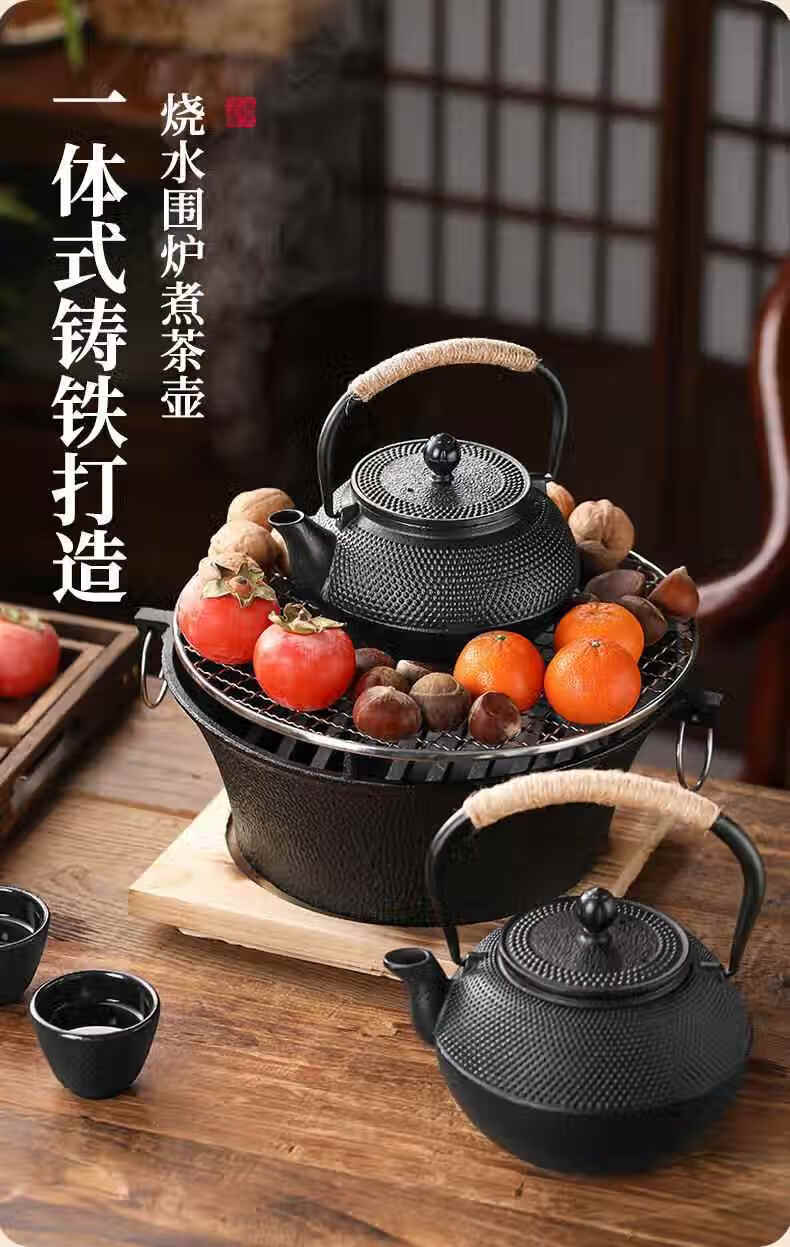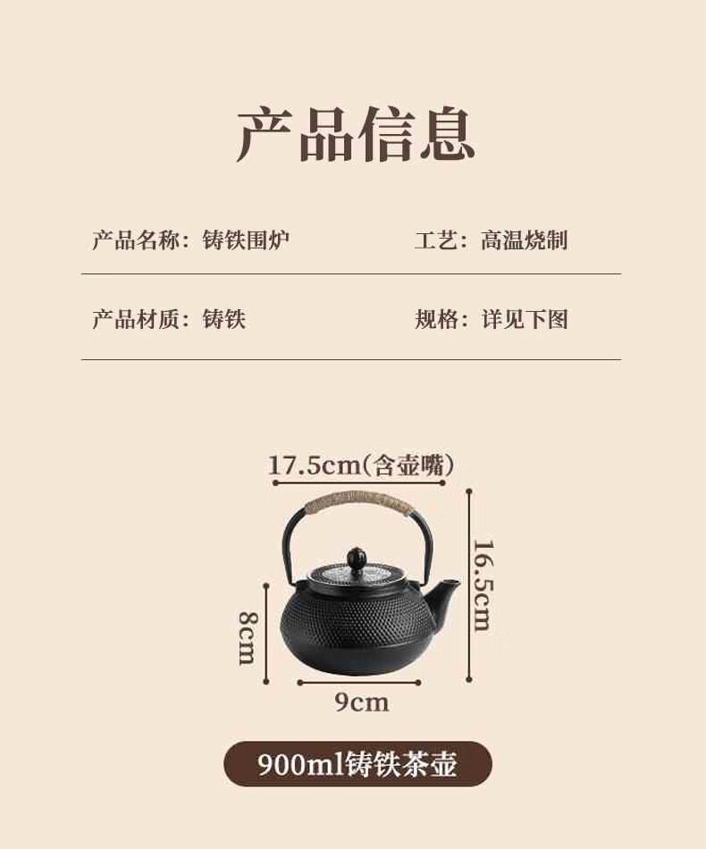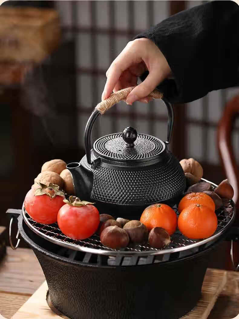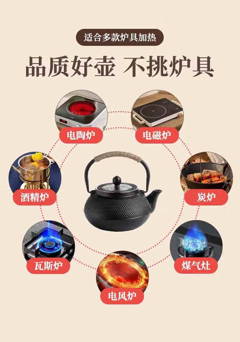Zhenxiqi cast iron kettle filter teapot stove-cooked teapot large-capacity household tea maker kettle suitable for outdoor open flames portable iron kettle + stainless steel filter 900ml