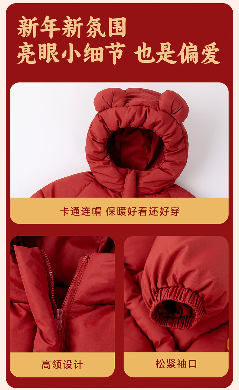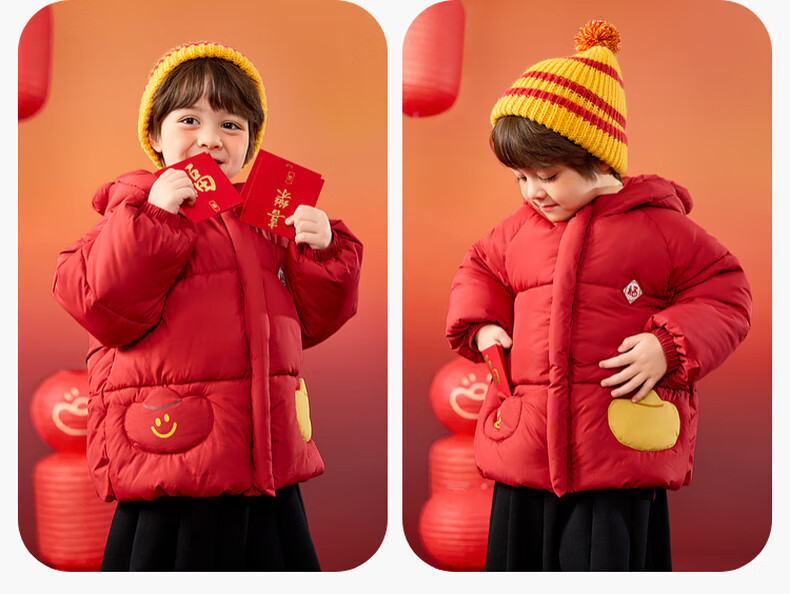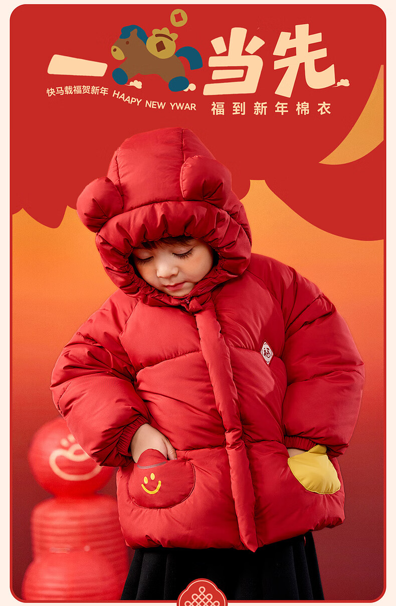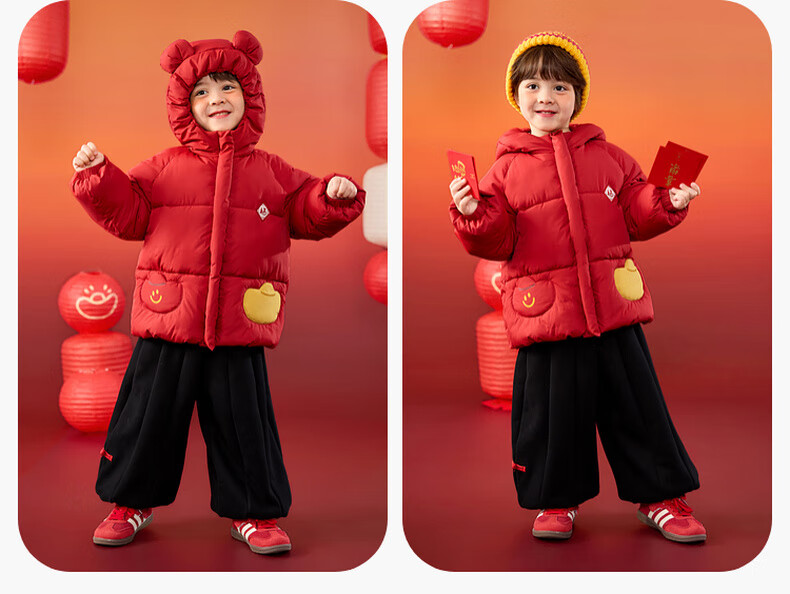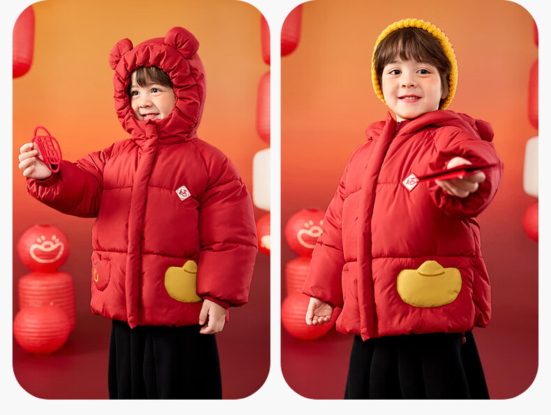 Dudujia children's cotton-padded clothes New Year's greetings winter clothes boys' cotton-padded clothes New Year's winter girls' cotton-padded jackets New Year's baby children's clothing national trend red 80