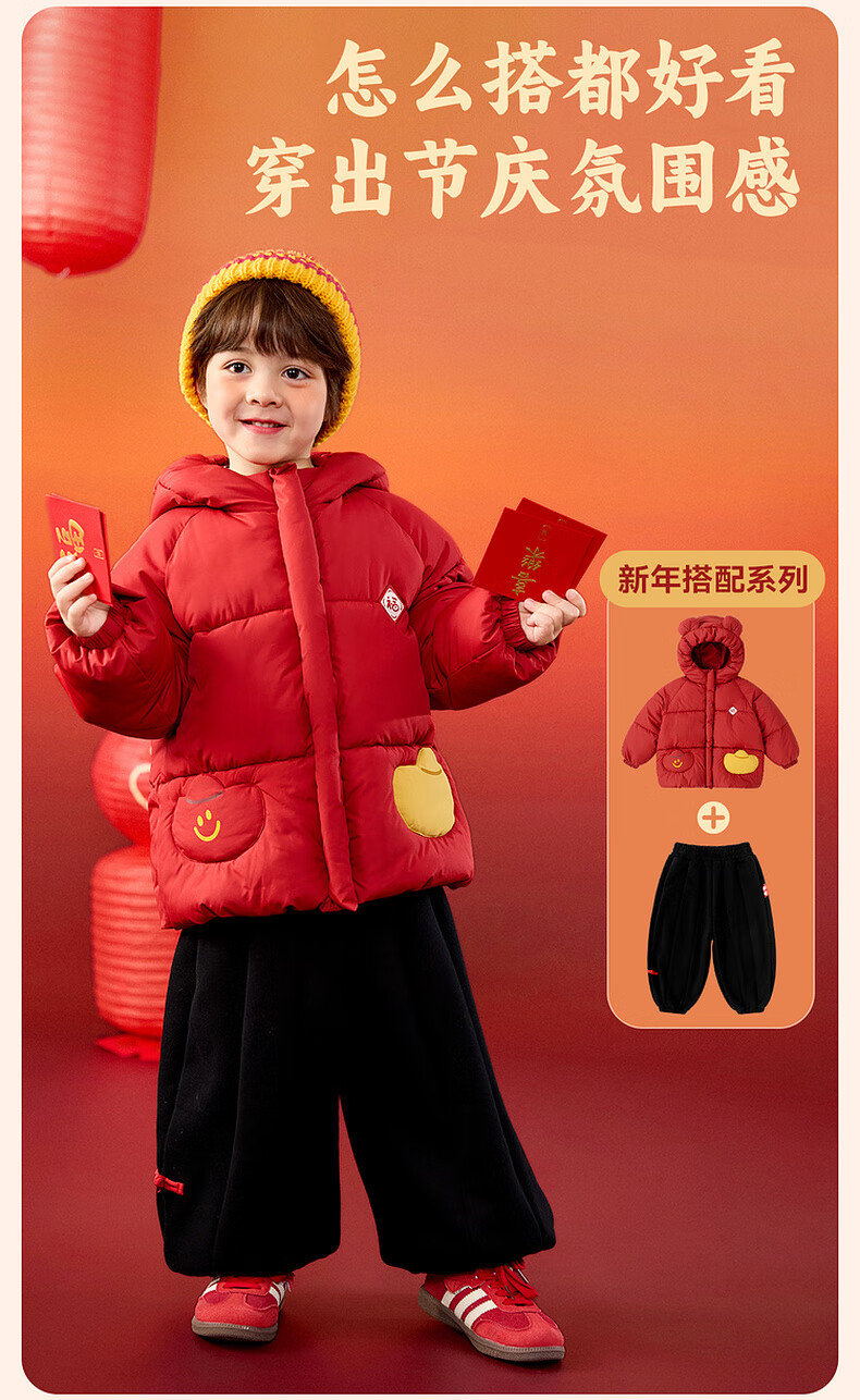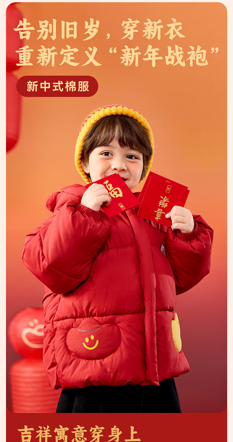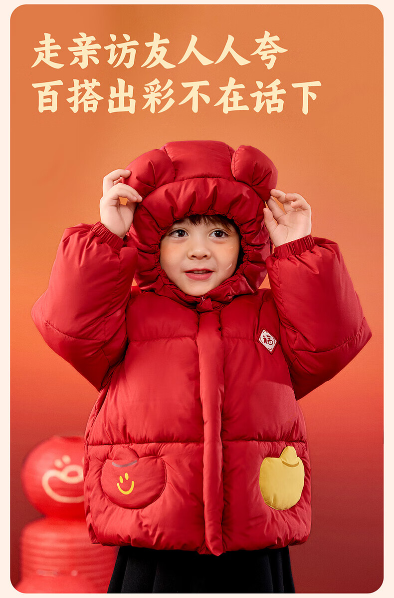 Dudujia children's cotton-padded clothes New Year's greetings winter clothes boys' cotton-padded clothes New Year's winter girls' cotton-padded jackets New Year's baby children's clothing national trend red 80
