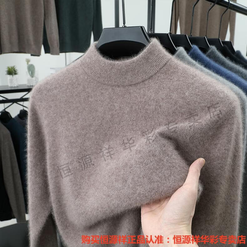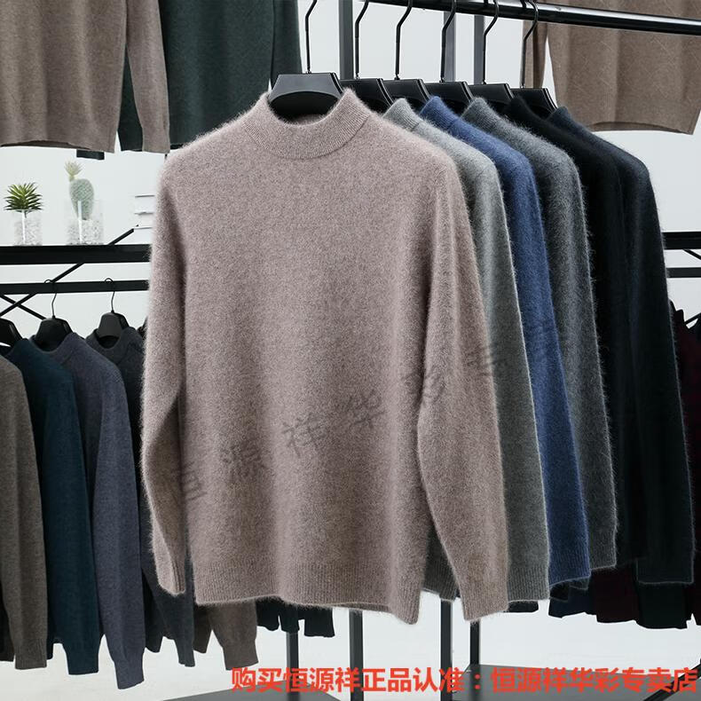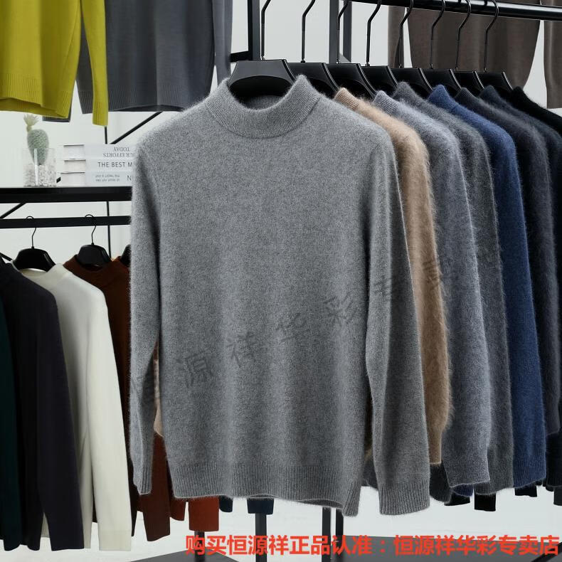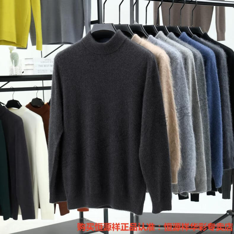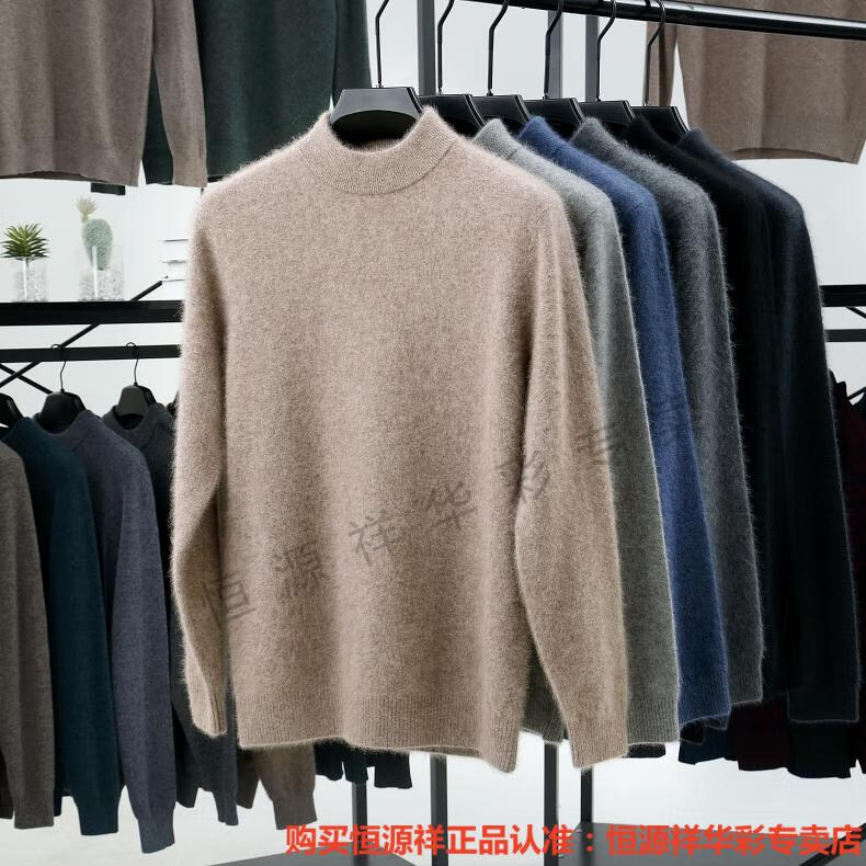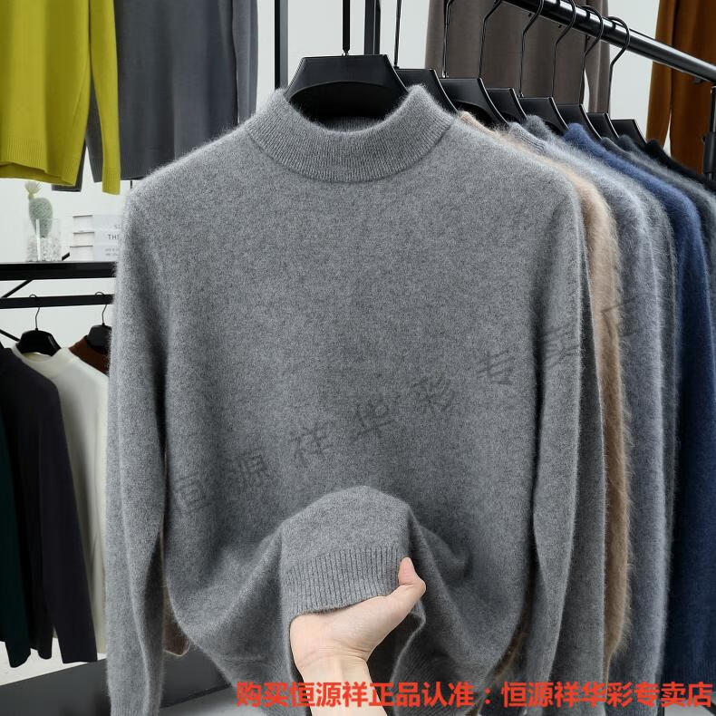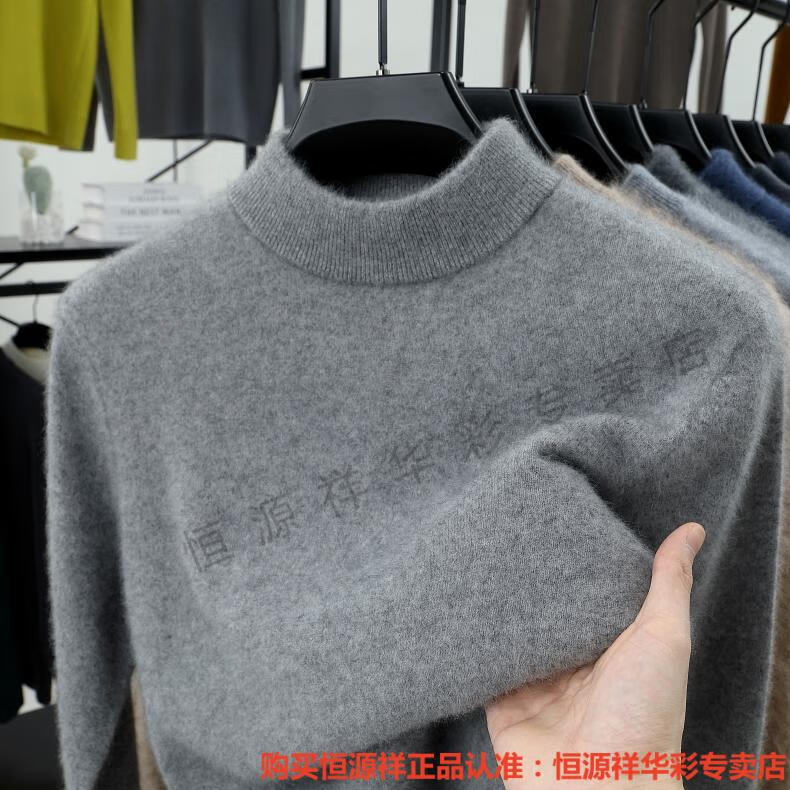 Hengyuanxiang Ordo City Woolen Sweater Men's 100 Pure Wool 2025 New Winter Thickened Sweater Men's Knitted Bottom Light Gray - Top Ten Men's Woolen Sweater Sales XL 175 Recommended 135-150Jin Jin is equal to 0.5 kg