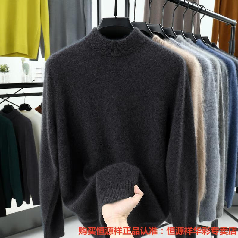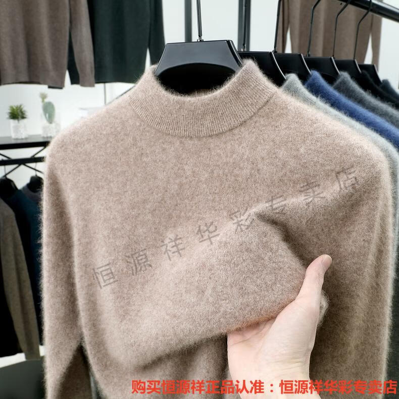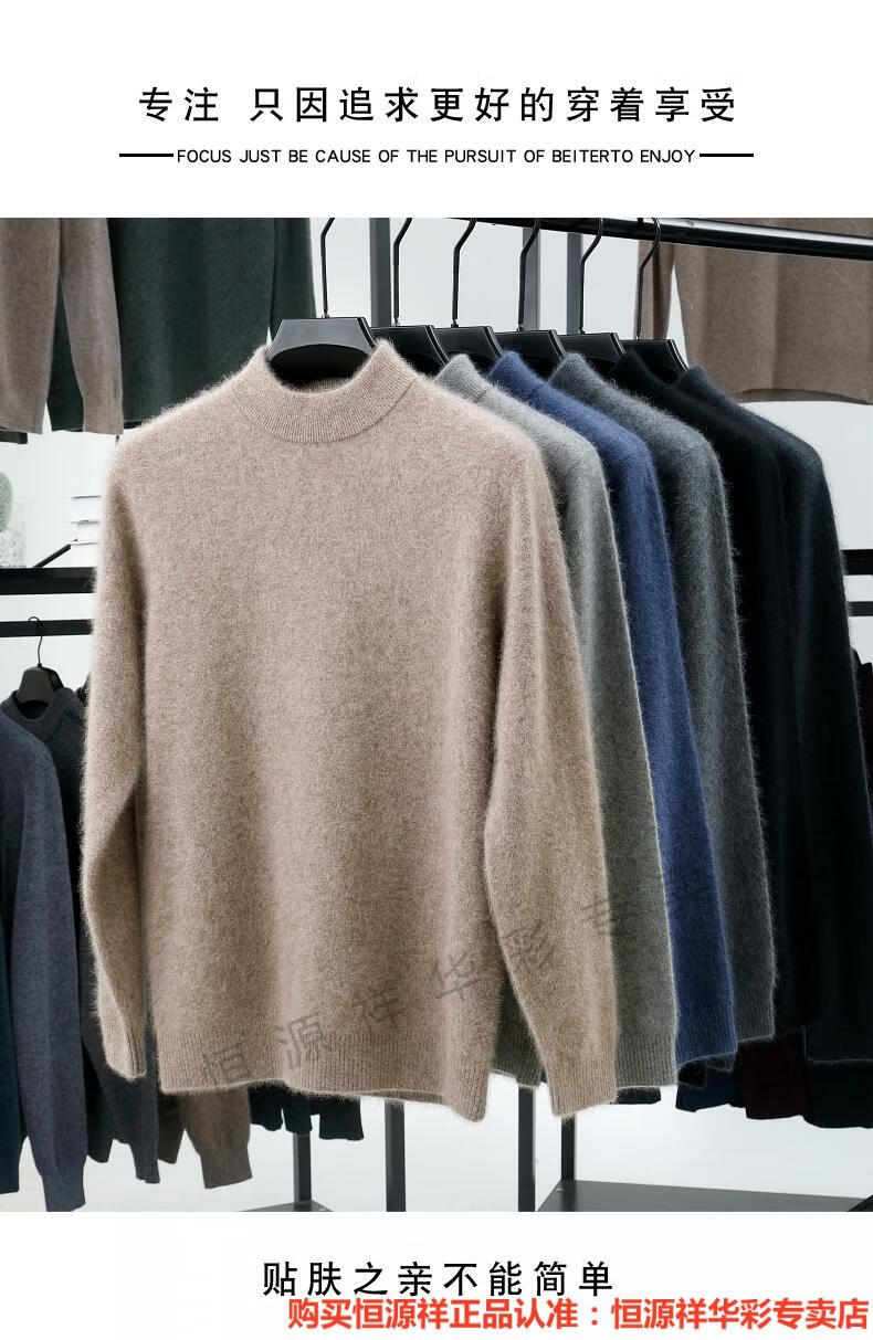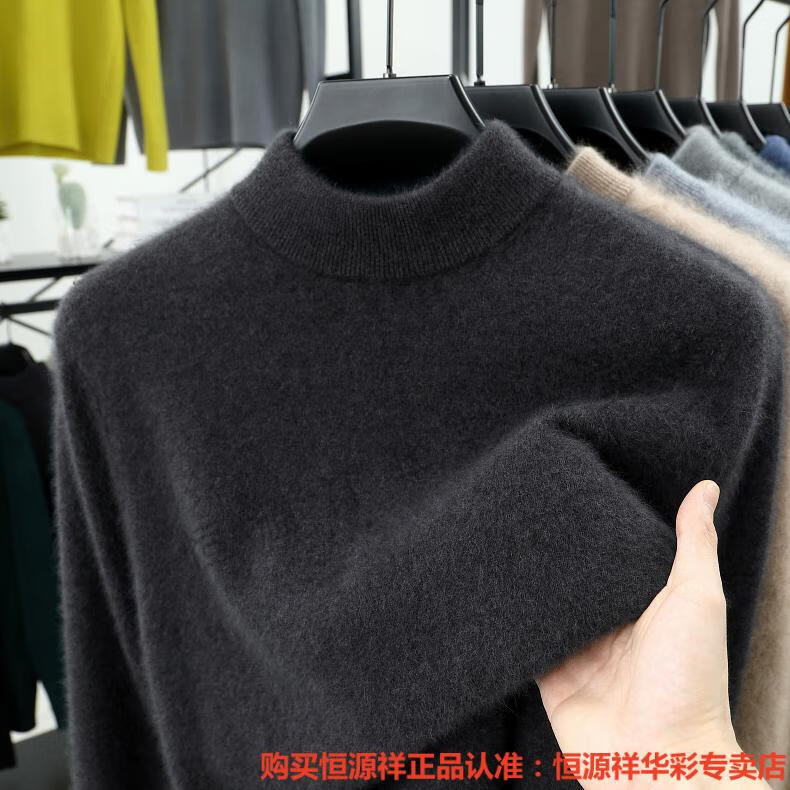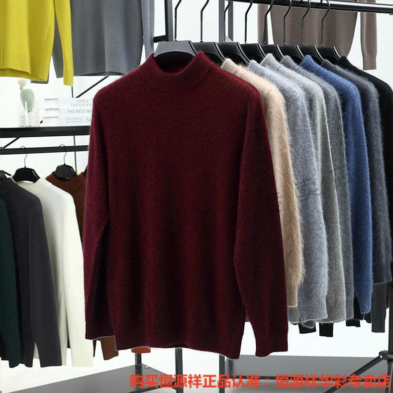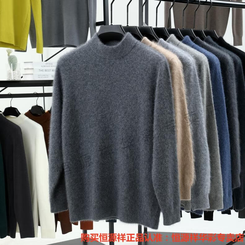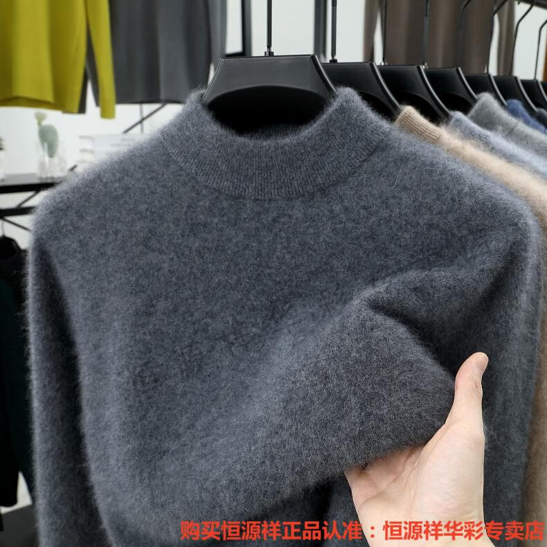 Hengyuanxiang Ordo City Woolen Sweater Men's 100 Pure Wool 2025 New Winter Thickened Sweater Men's Knitted Bottom Light Gray - Top Ten Men's Woolen Sweater Sales XL 175 Recommended 135-150Jin Jin is equal to 0.5 kg