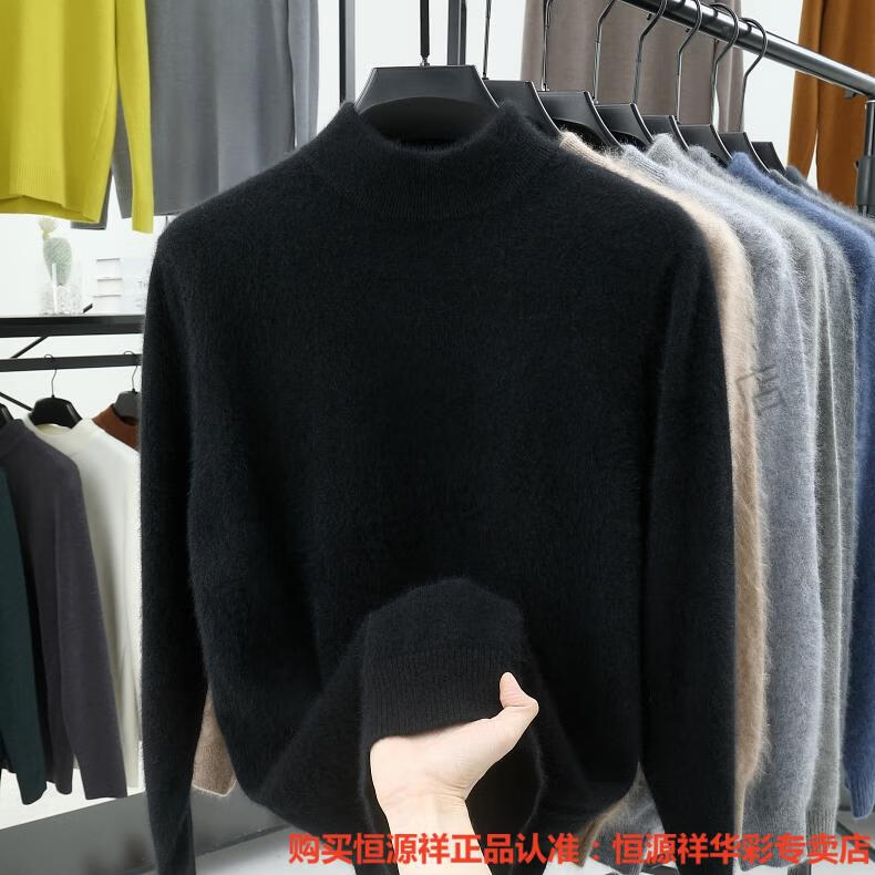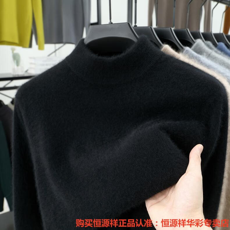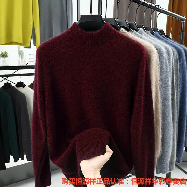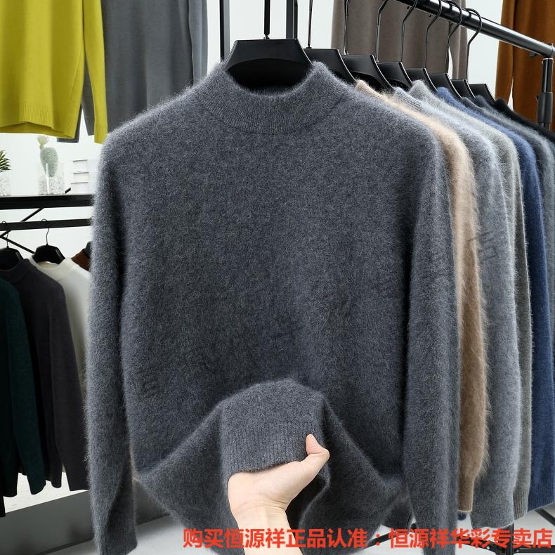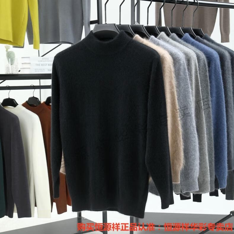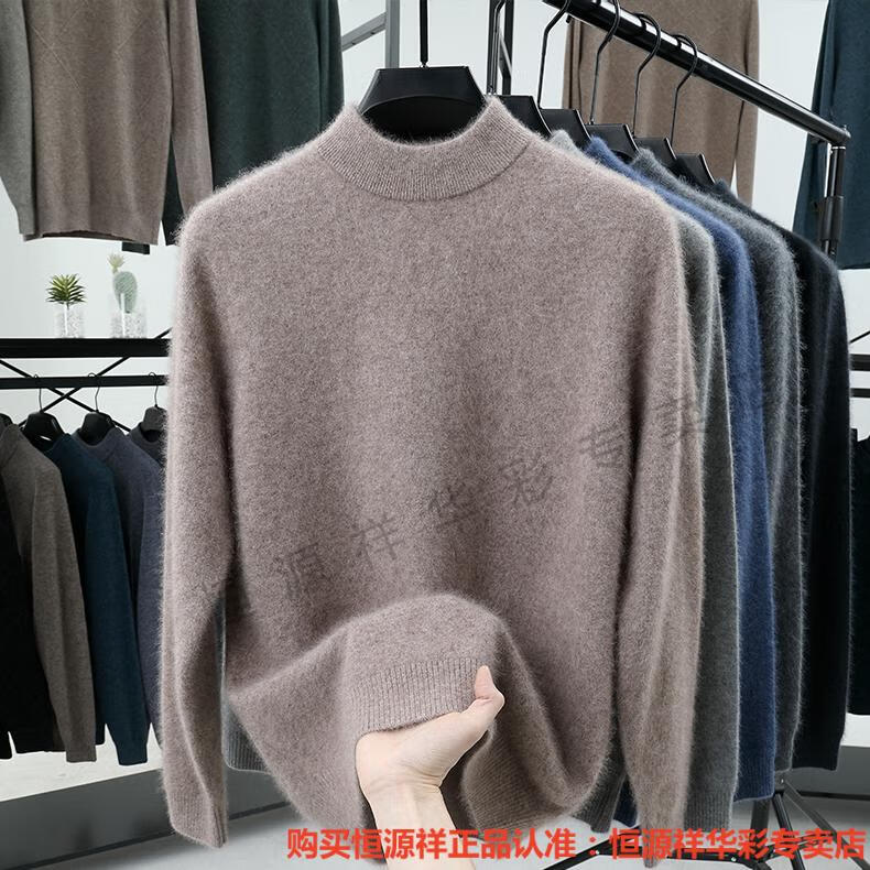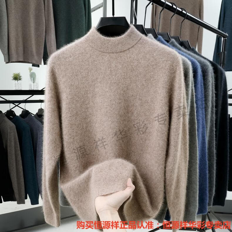 Hengyuanxiang Ordo City Woolen Sweater Men's 100 Pure Wool 2025 New Winter Thickened Sweater Men's Knitted Bottom Light Gray - Top Ten Men's Woolen Sweater Sales XL 175 Recommended 135-150Jin Jin is equal to 0.5 kg