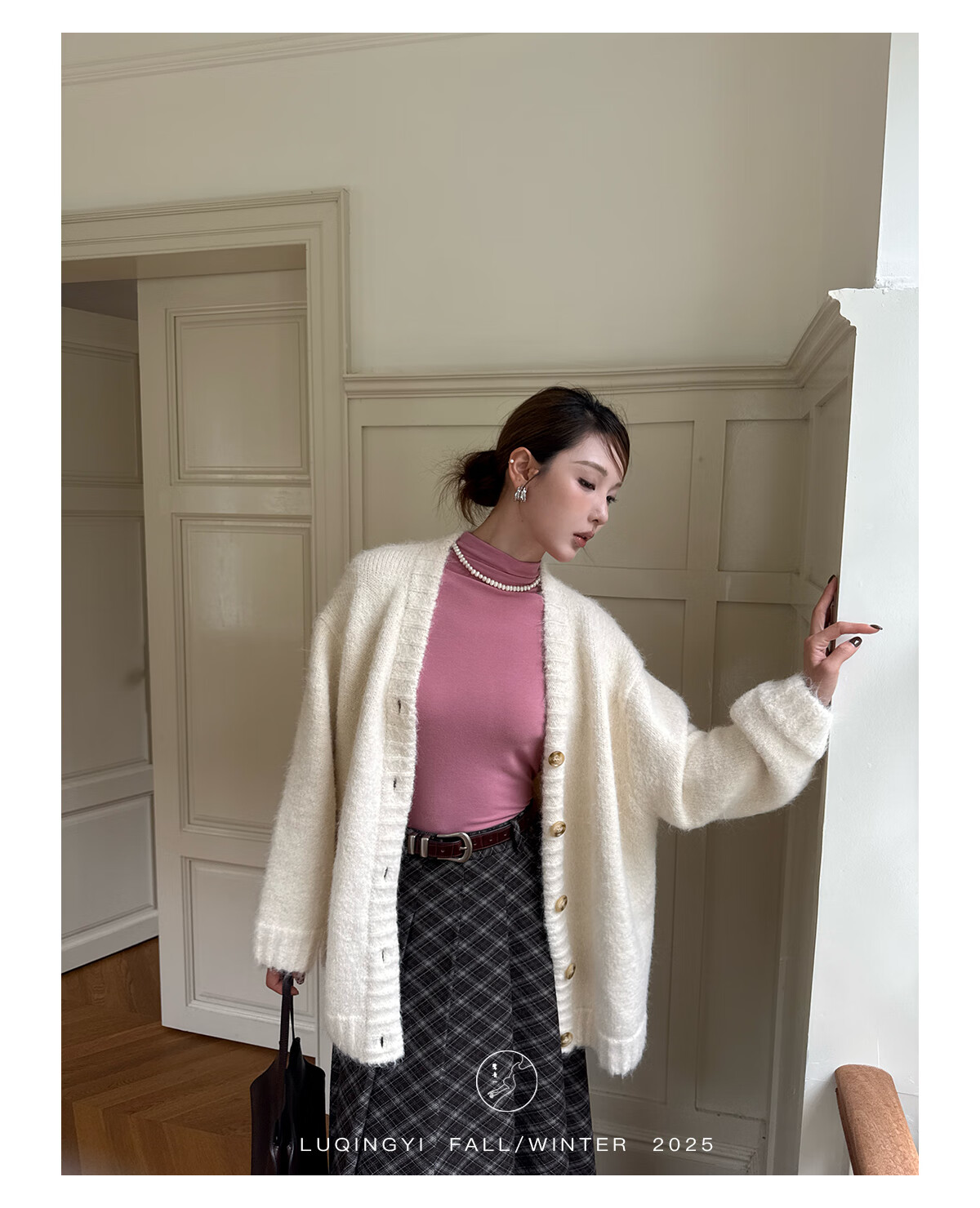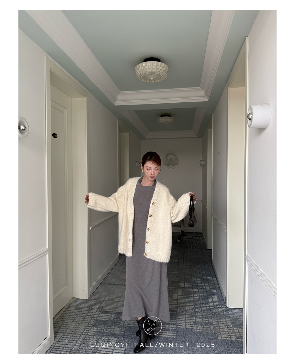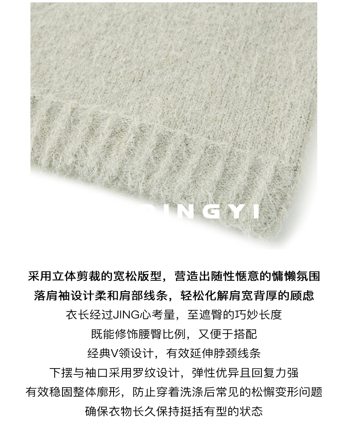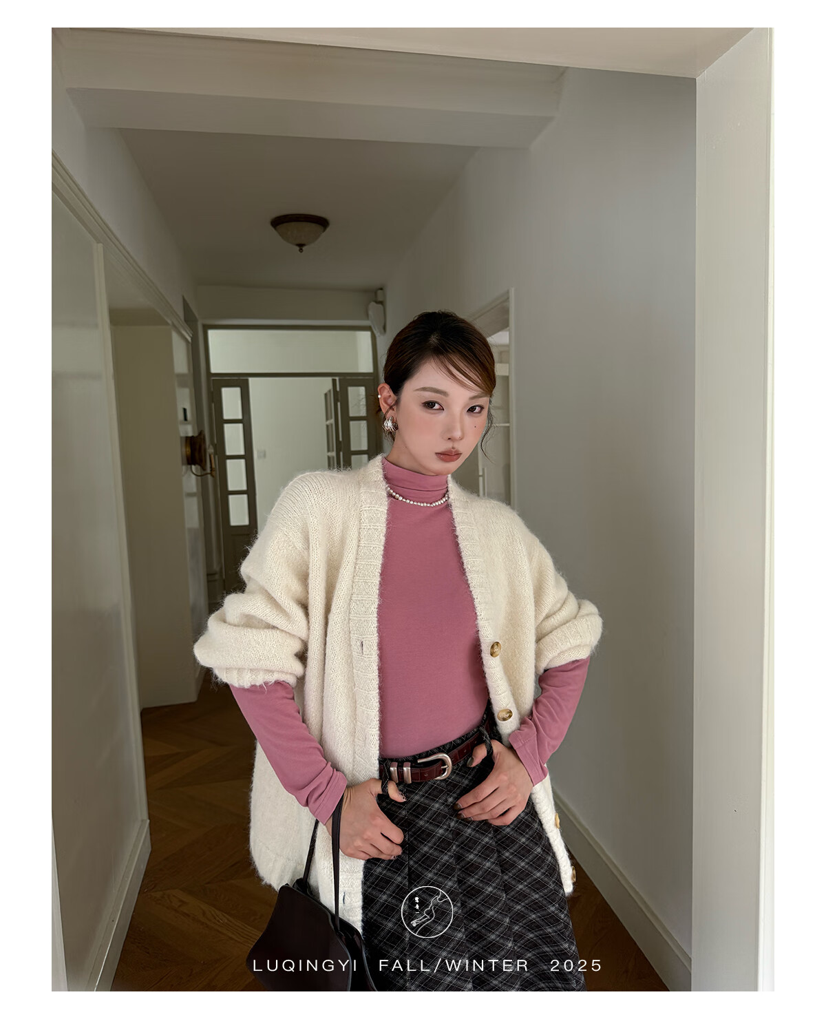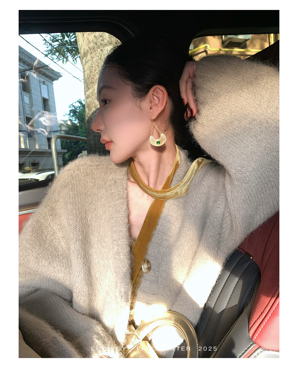 Lu Qingyi Original Chenwai Wool Knitted Sweater Women's Autumn Lazy Wind Brushed Warm Loose V-neck Cardigan Bean Green (Second Batch) M Wear for Photos