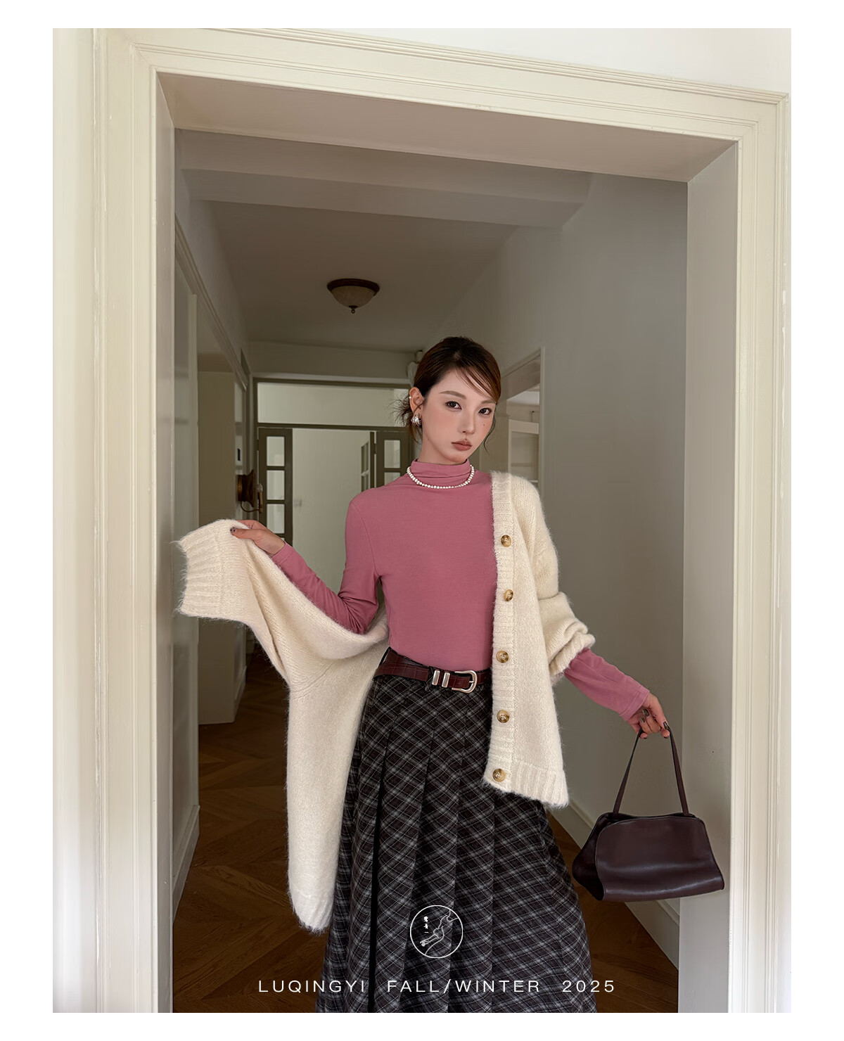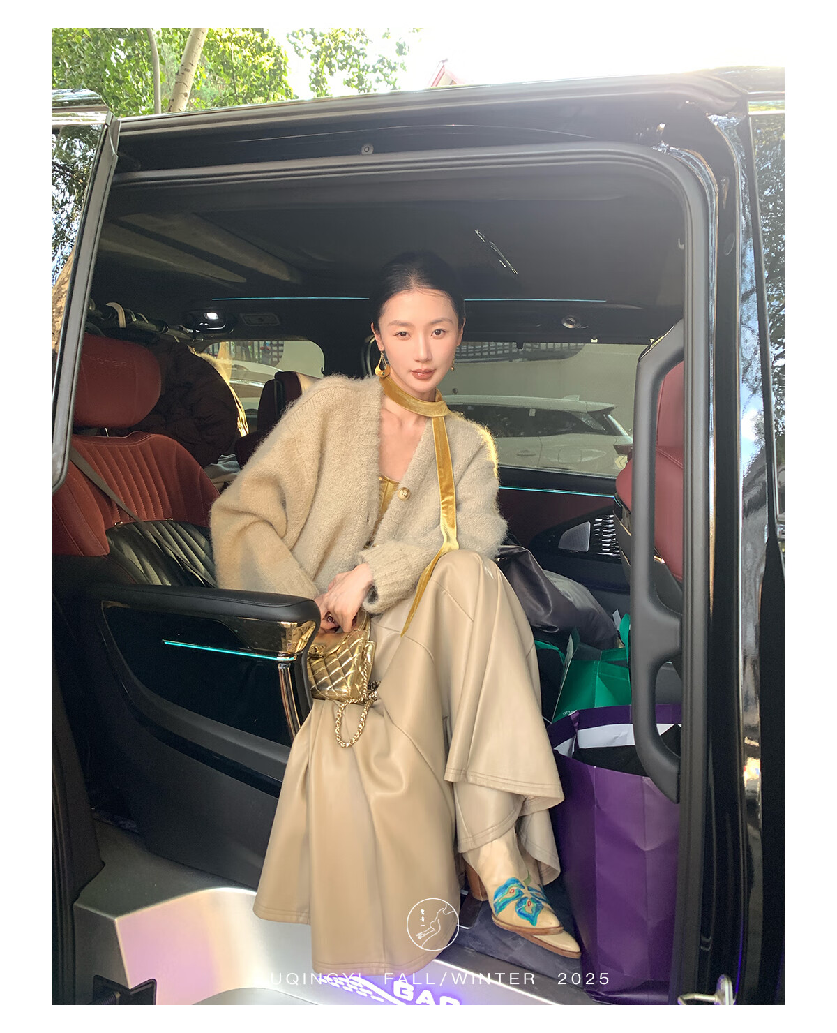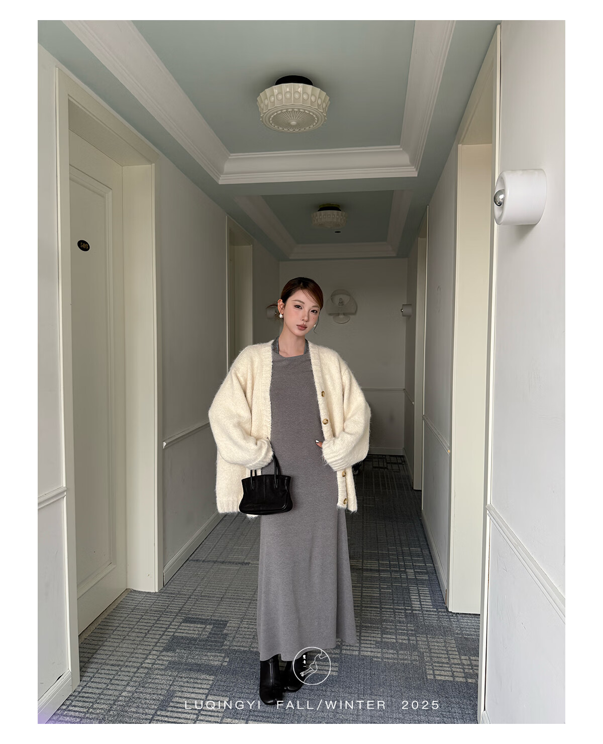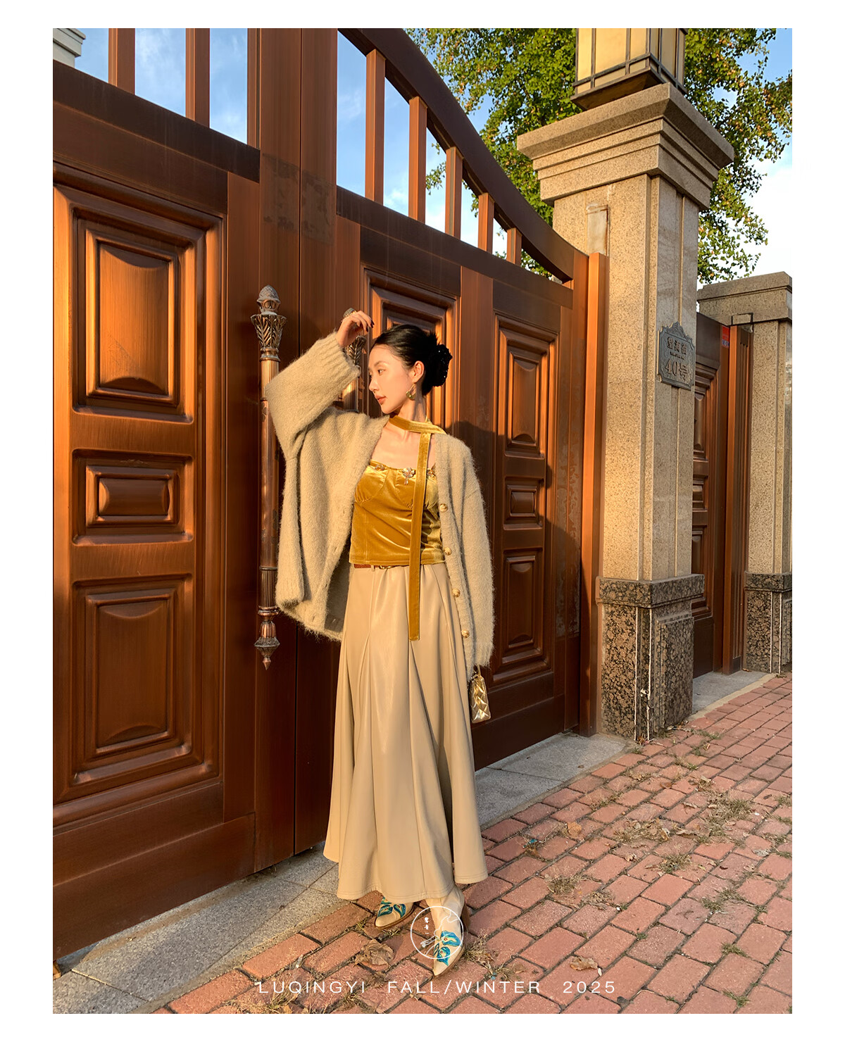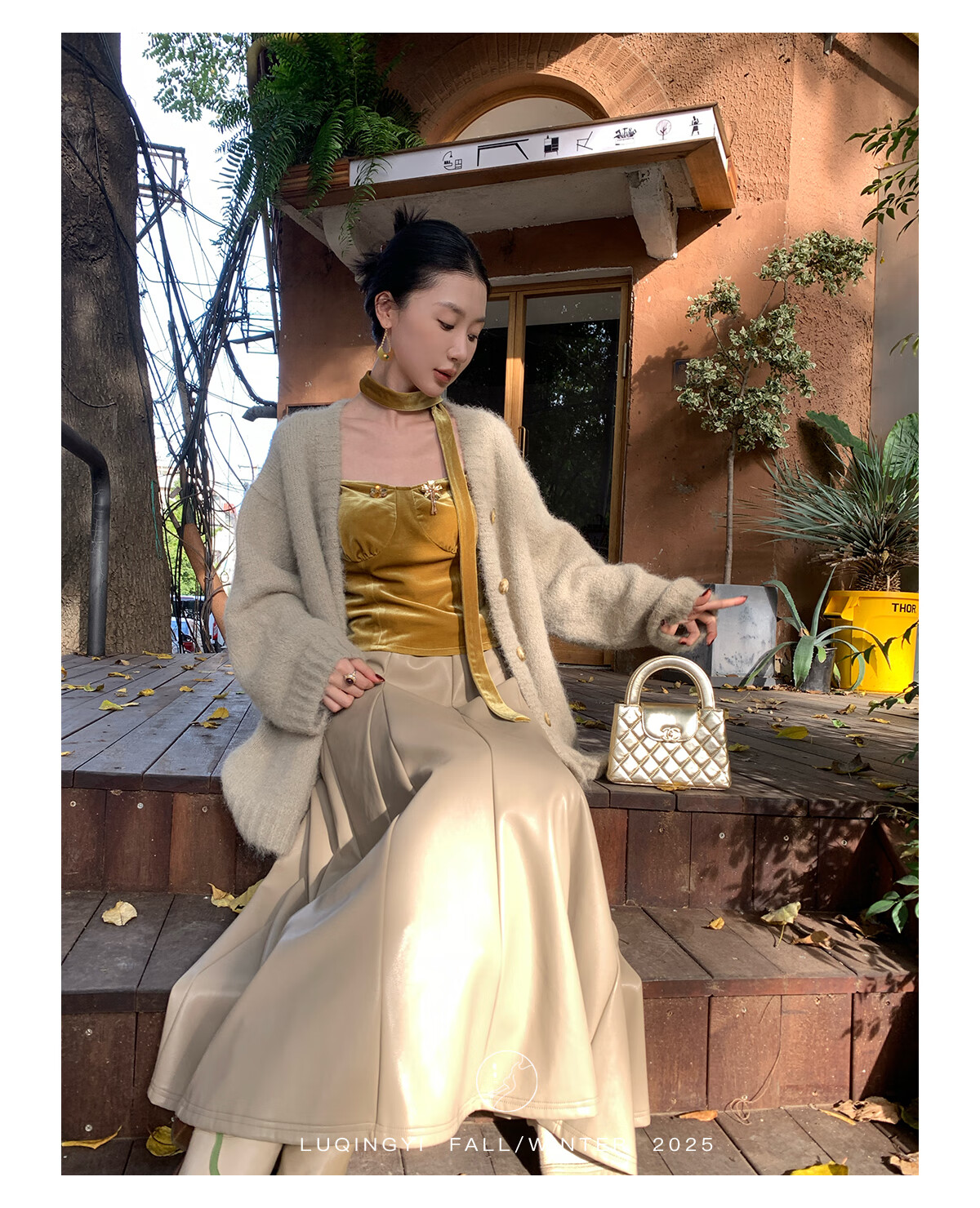 Lu Qingyi Original Chenwai Wool Knitted Sweater Women's Autumn Lazy Wind Brushed Warm Loose V-neck Cardigan Bean Green (Second Batch) M Wear for Photos