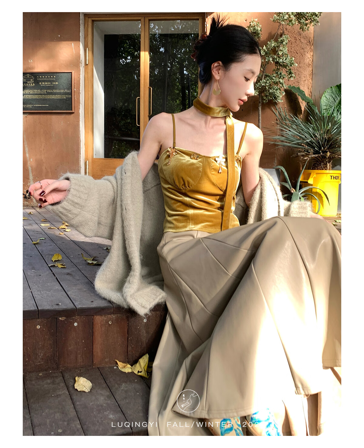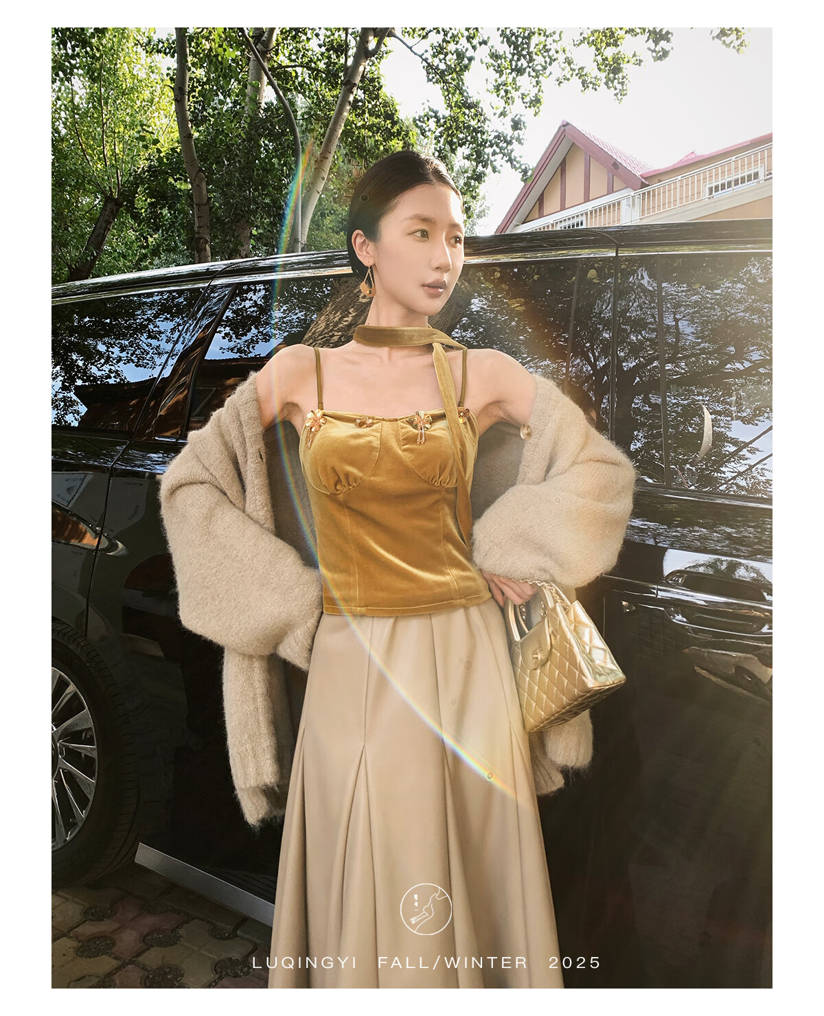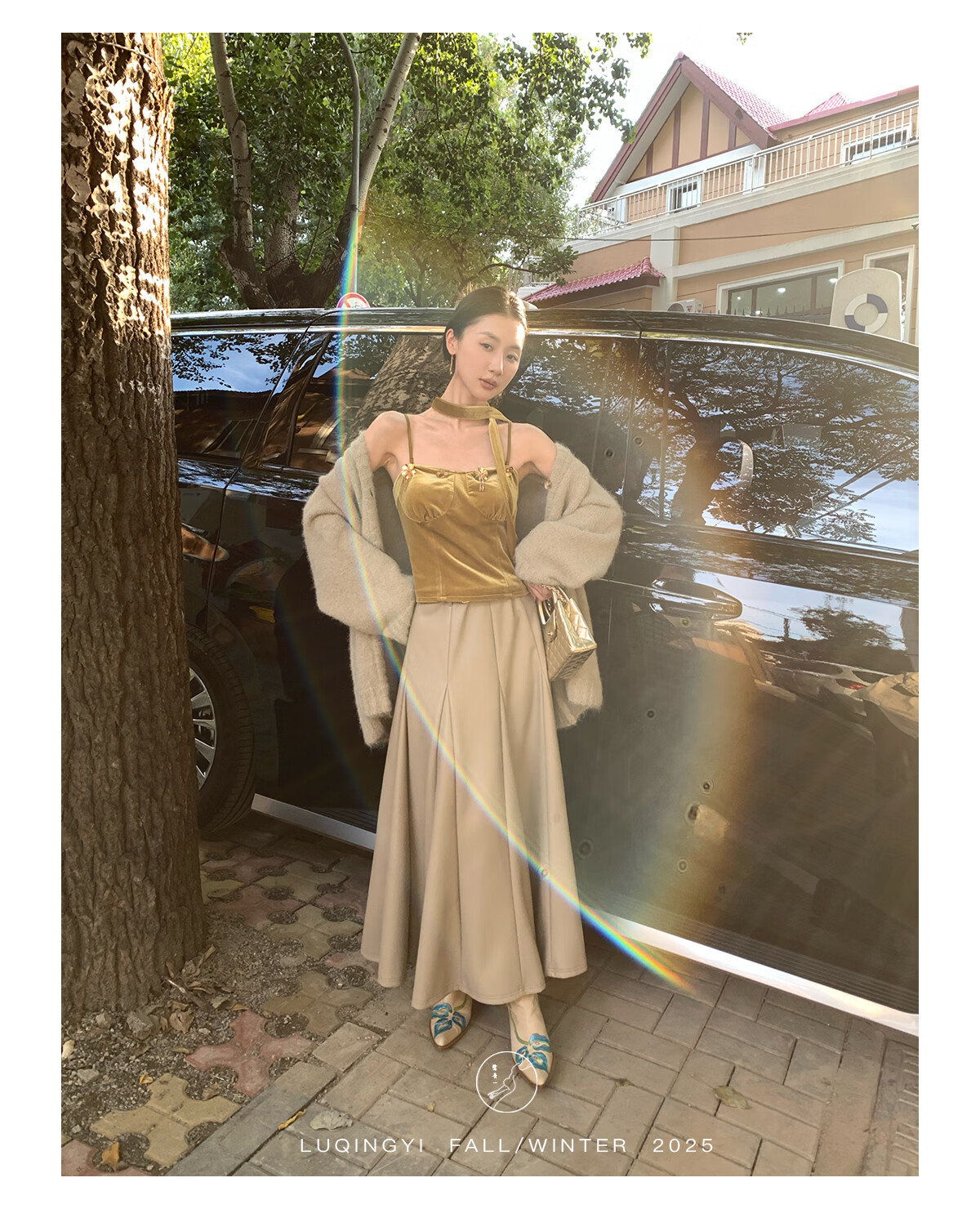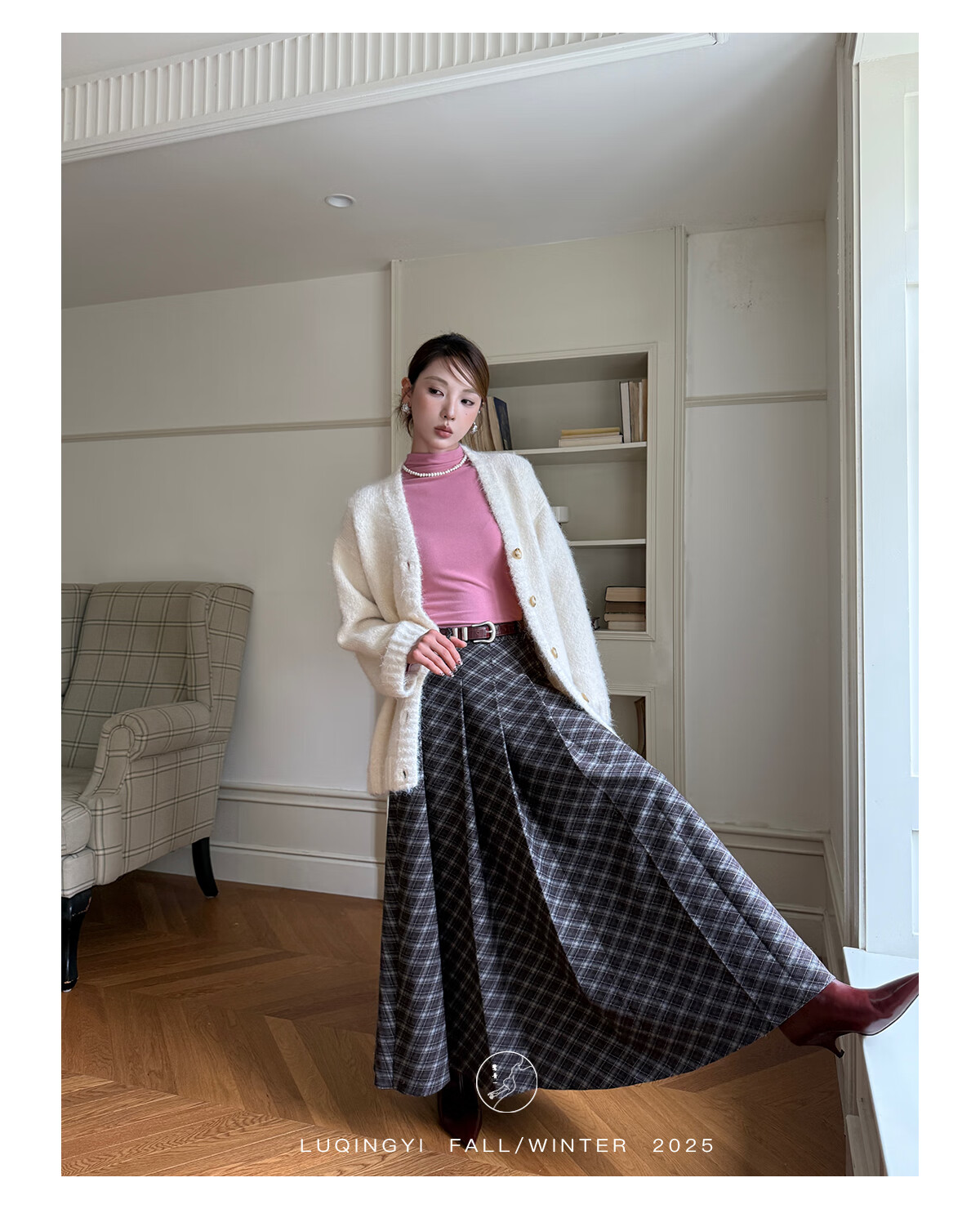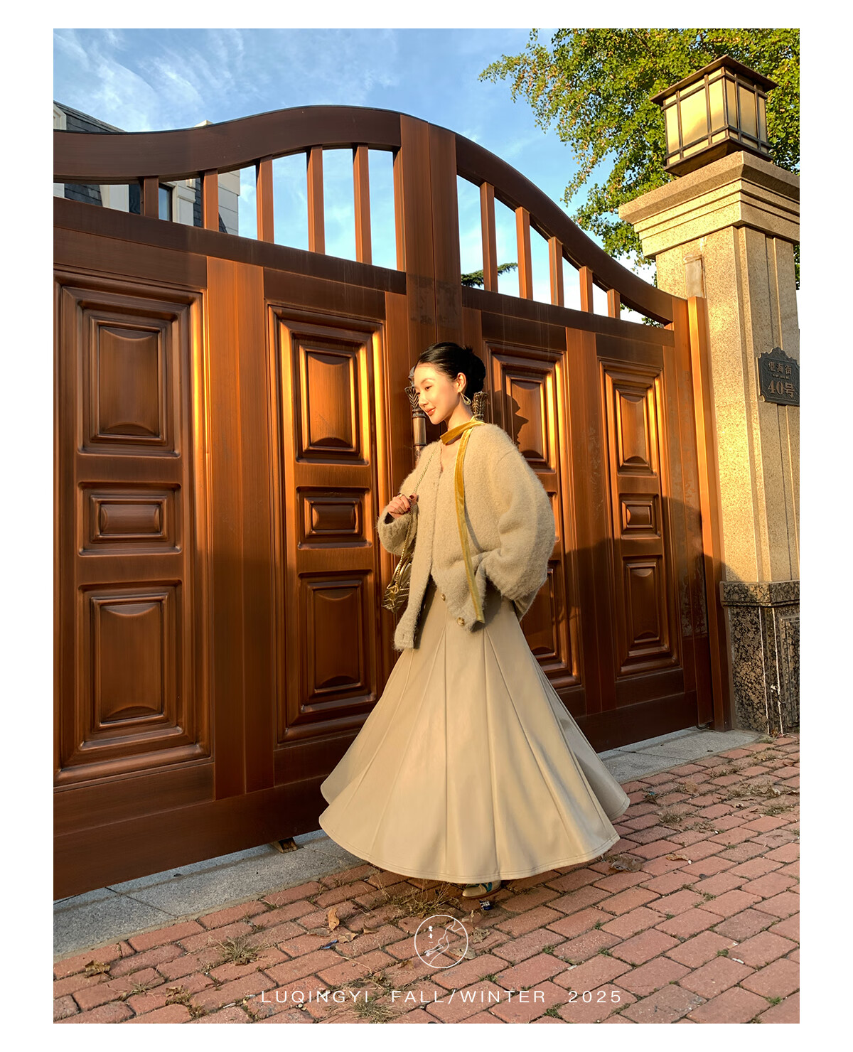 Lu Qingyi Original Chenwai Wool Knitted Sweater Women's Autumn Lazy Wind Brushed Warm Loose V-neck Cardigan Bean Green (Second Batch) M Wear for Photos