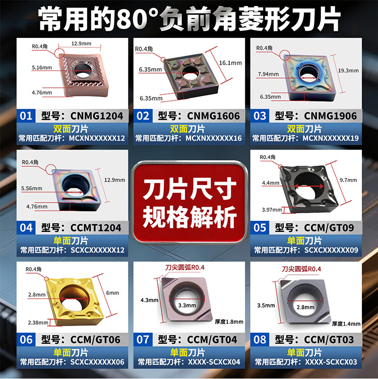 Cabos CNC blade CCMT09T304 outer circle inner hole 80 degree diamond machine clip turning tool grain CCMT09T308 steel parts stainless steel aluminum parts quenching and boring ceramic alloy head fine roughing CCMT09T304 7018