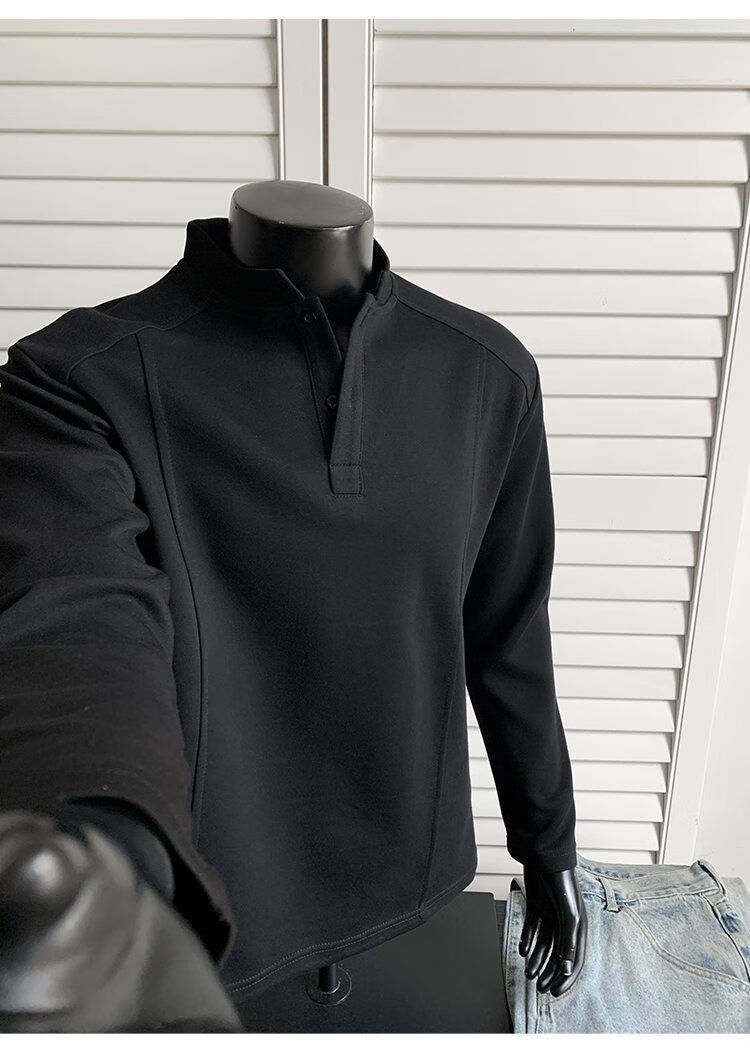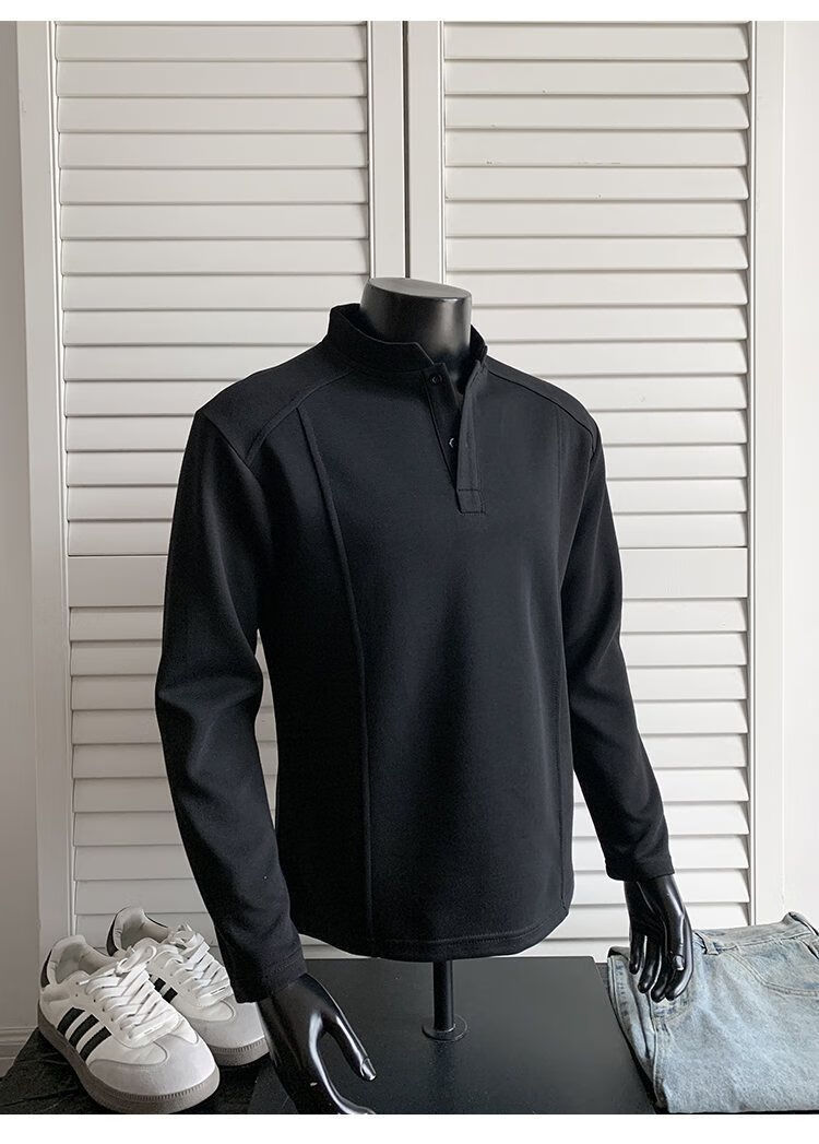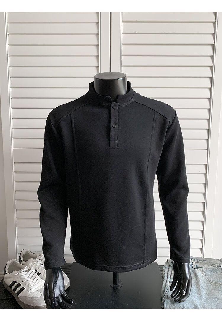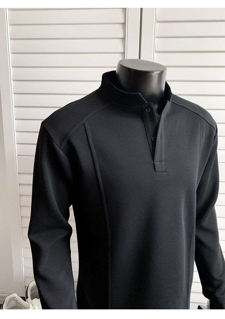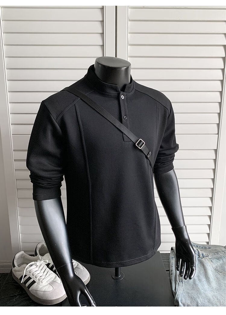 XIXNPOLO shirt Henry collar long-sleeved t-shirt for men in autumn deconstructed splicing design right shoulder bottoming shirt spring and autumn sweatshirt CX81+ black M recommended 80-105Jin Jin equals 0.5 kg