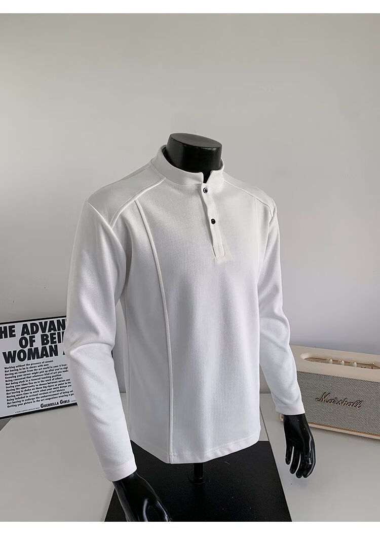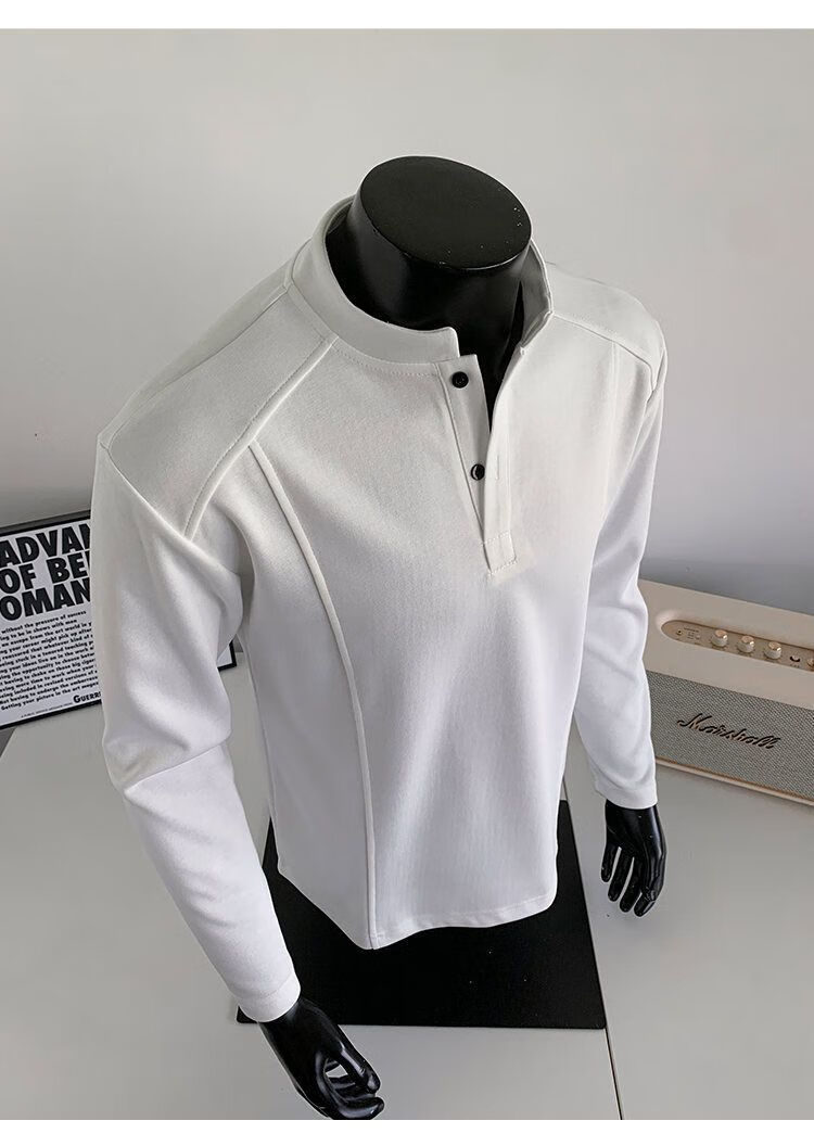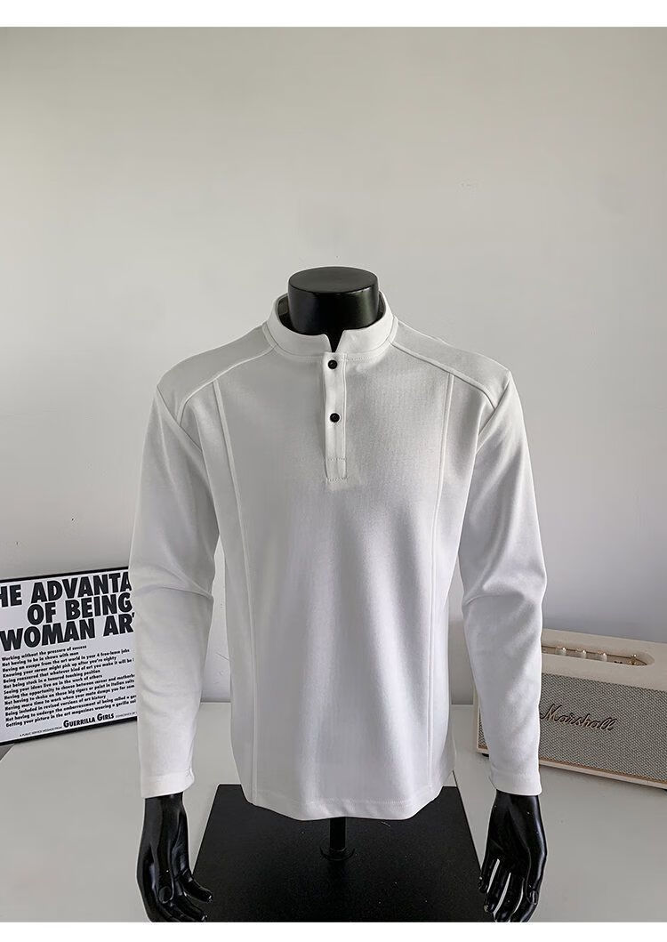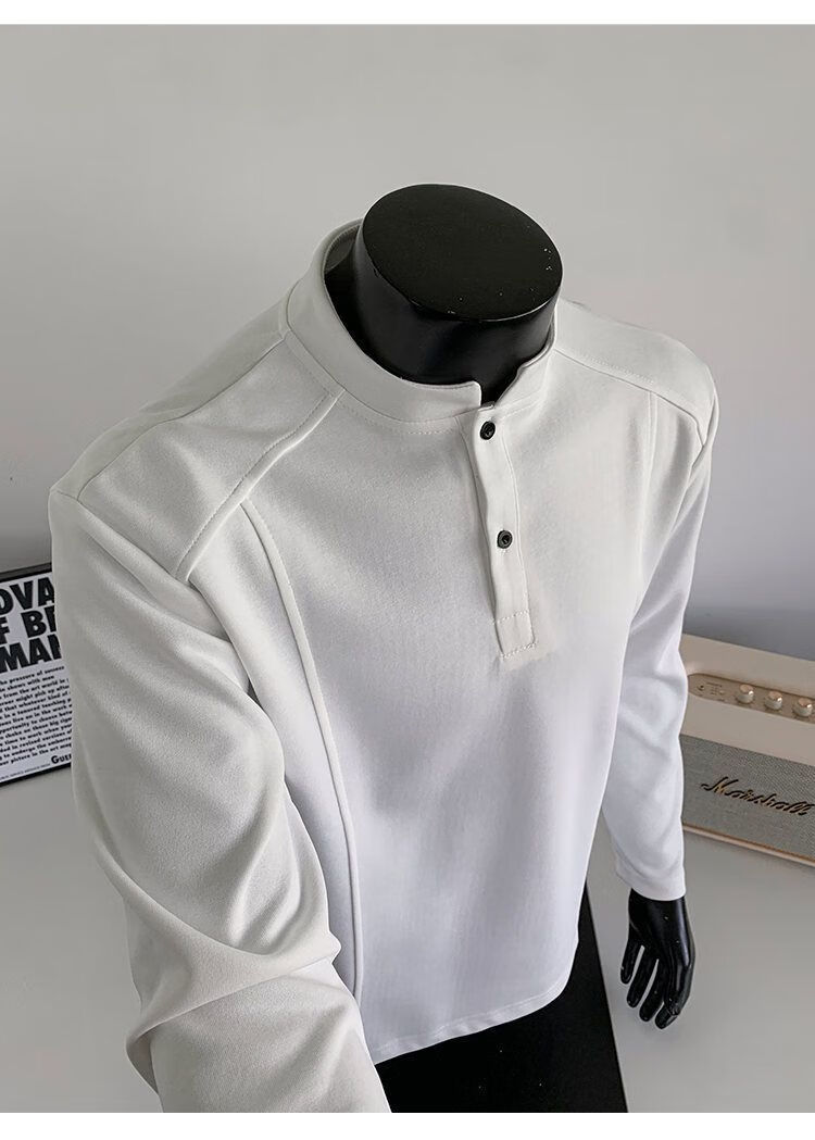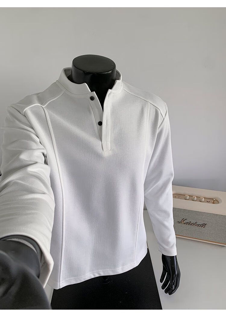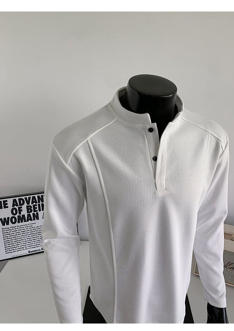 XIXNPOLO shirt Henry collar long-sleeved t-shirt for men in autumn deconstructed splicing design right shoulder bottoming shirt spring and autumn sweatshirt CX81+ black M recommended 80-105Jin Jin equals 0.5 kg
