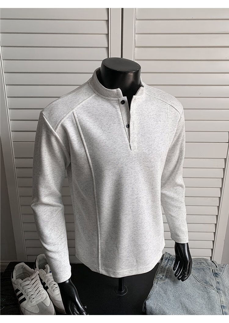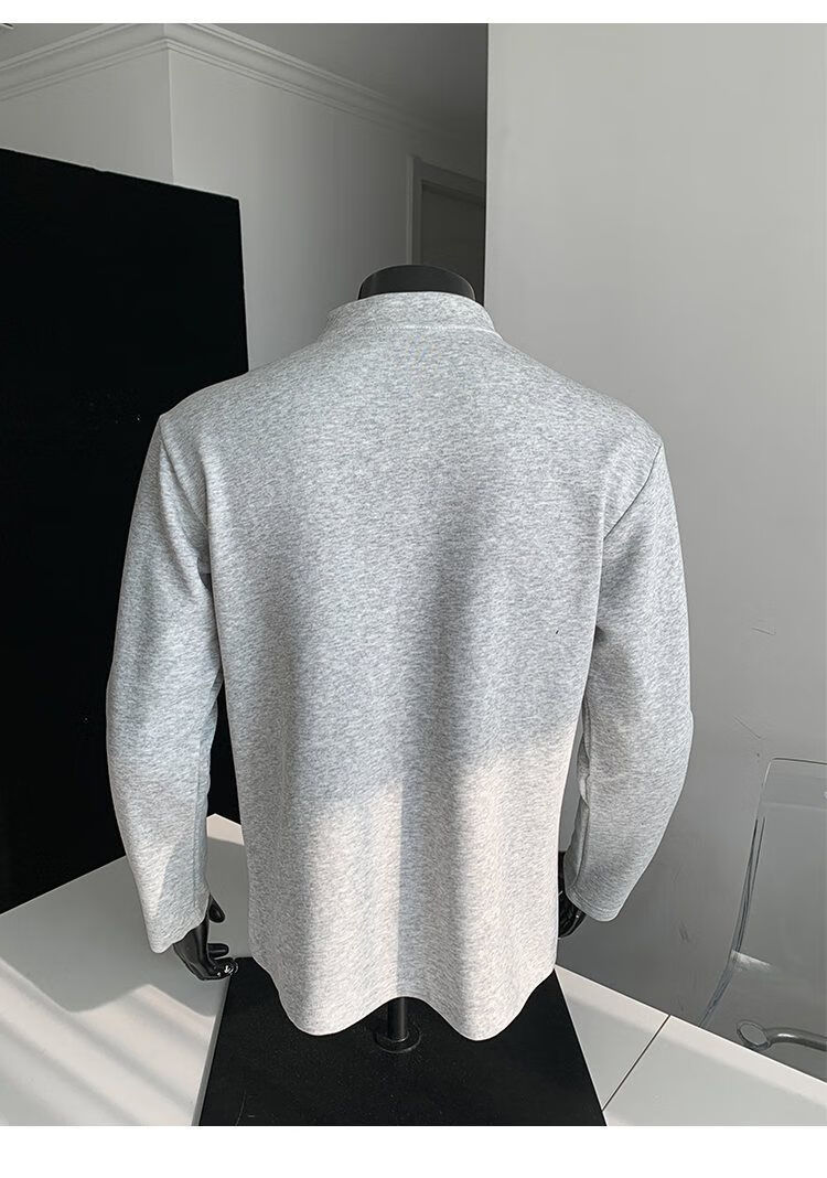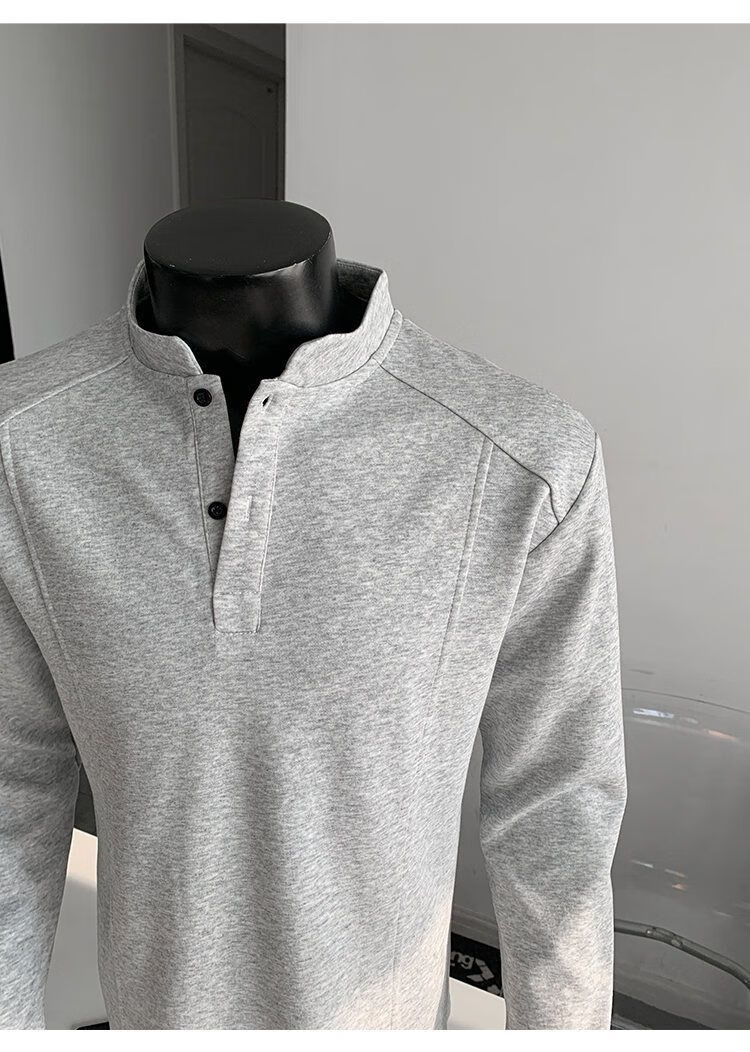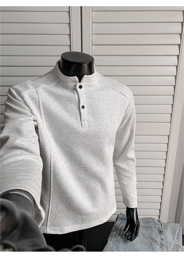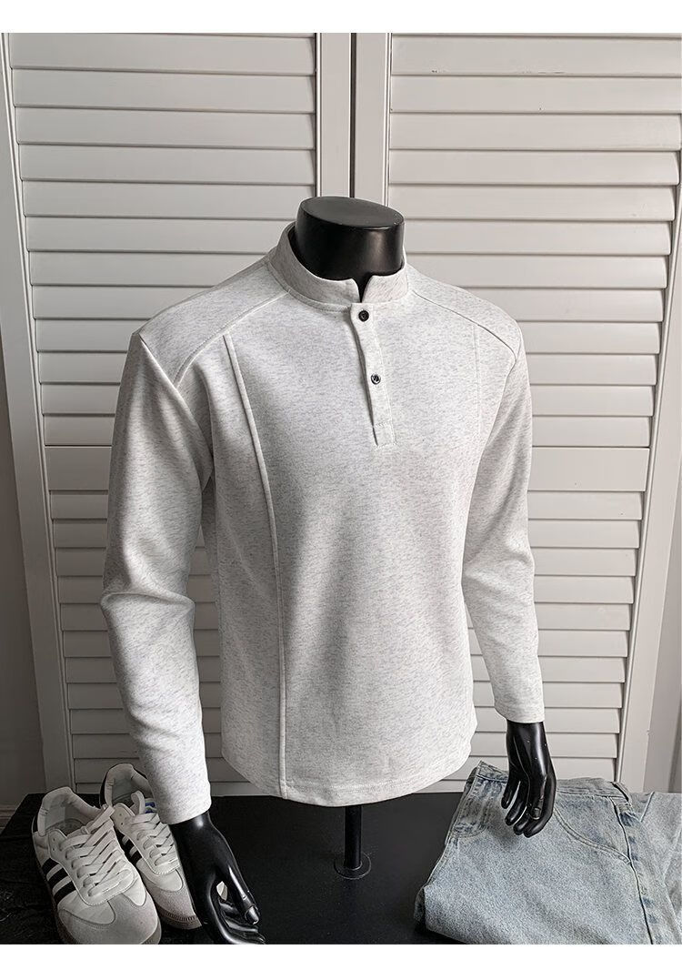 XIXNPOLO shirt Henry collar long-sleeved t-shirt for men in autumn deconstructed splicing design right shoulder bottoming shirt spring and autumn sweatshirt CX81+ black M recommended 80-105Jin Jin equals 0.5 kg