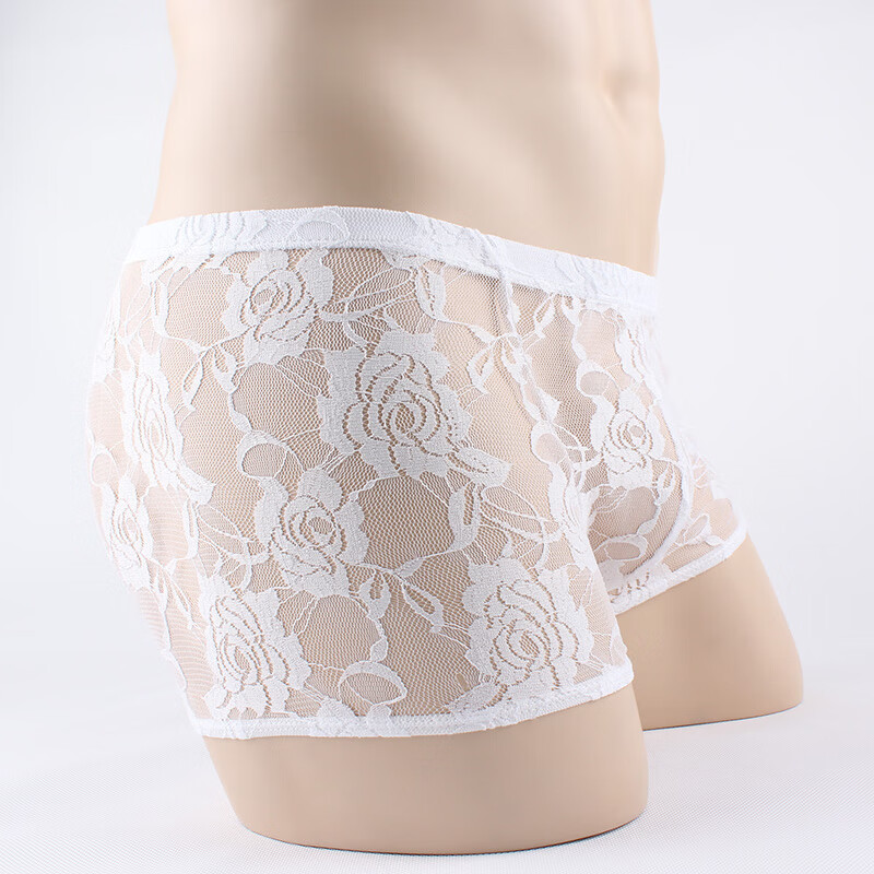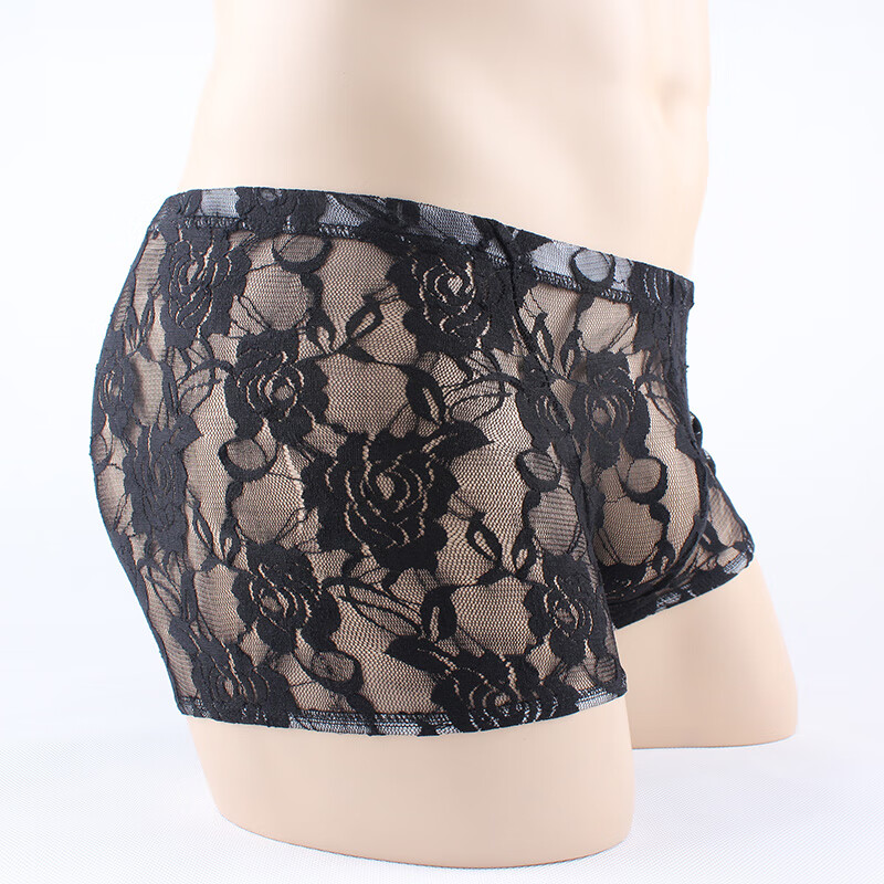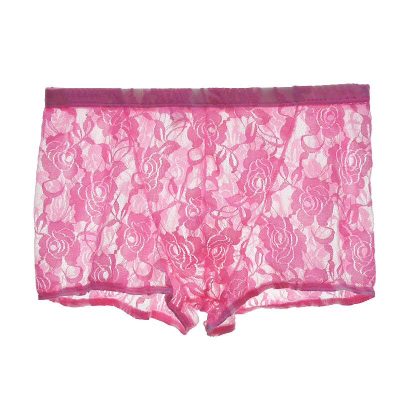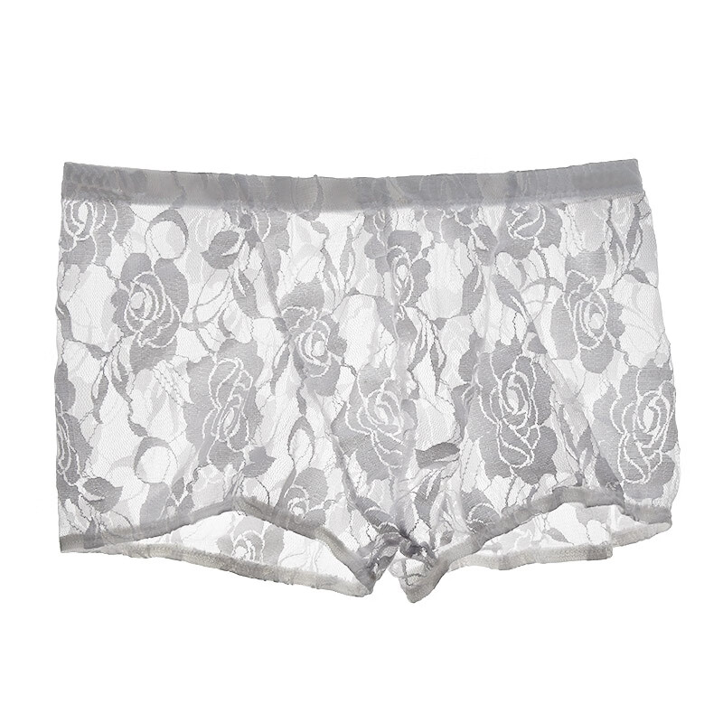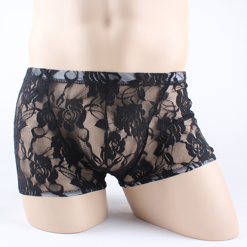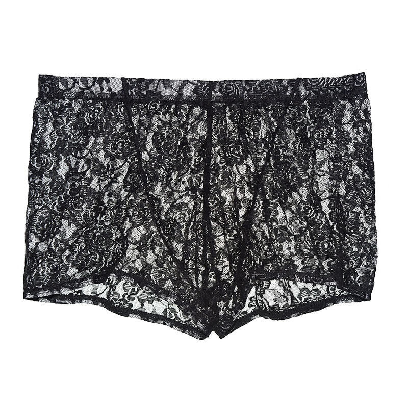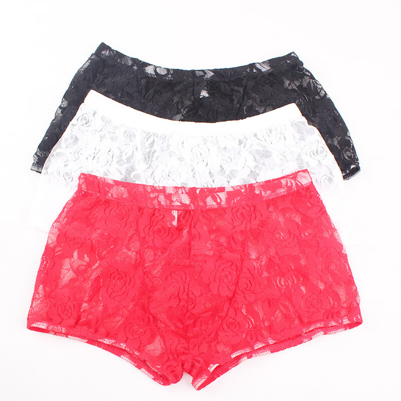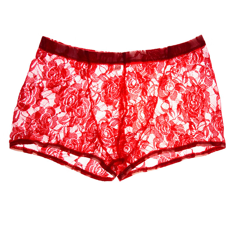 Men's Sexy Underwear Thin Transparent Lace Sexy Underwear See-through Boxer Briefs Men's Shorts One Size Red