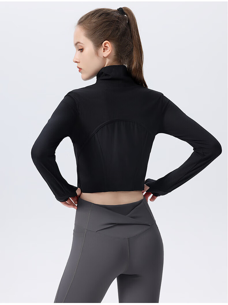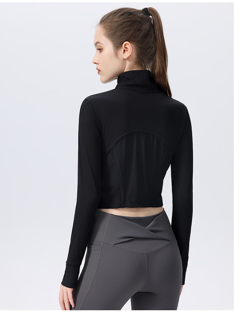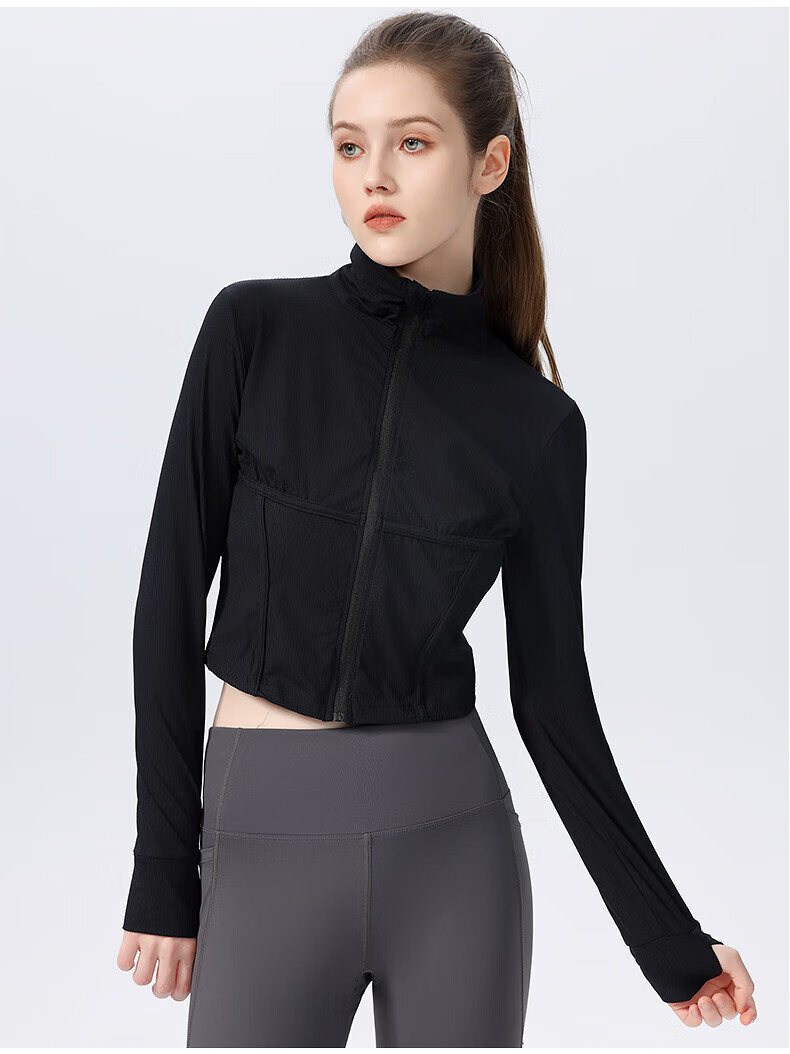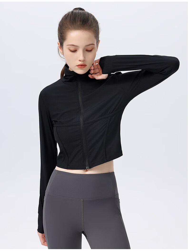 Gu Jianmu Yoga Wear Women's Tight Long Sleeve Running Fitness Jacket Training Cycling Wear Slim Sports Top Versatile Black S