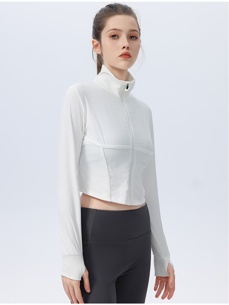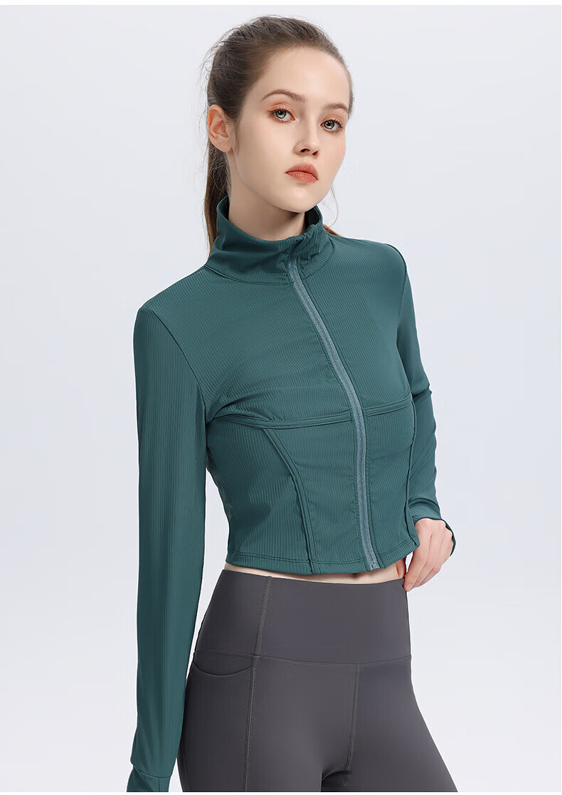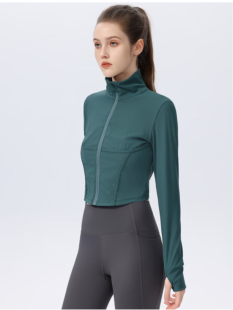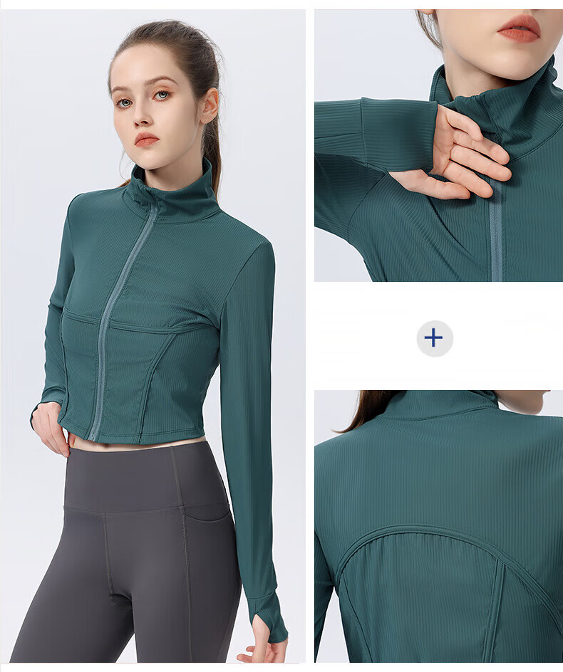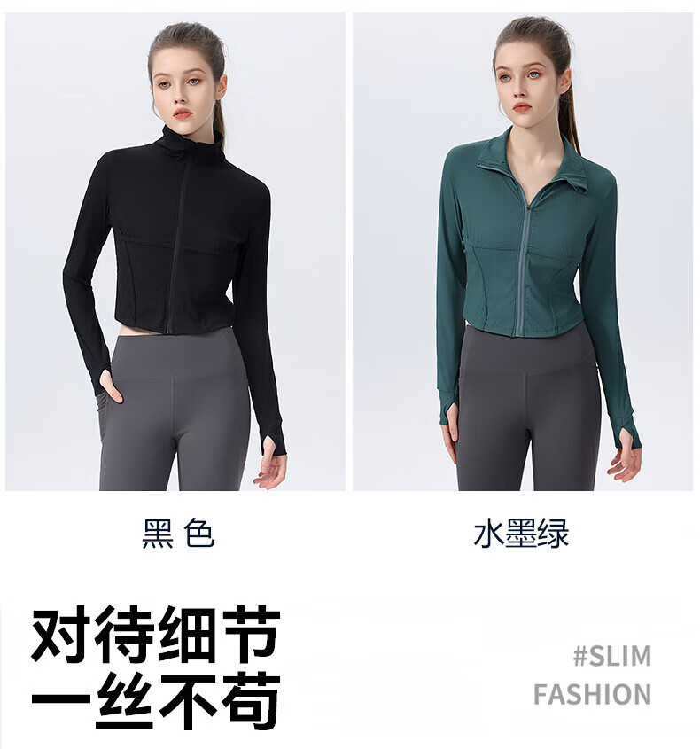 Gu Jianmu Yoga Wear Women's Tight Long Sleeve Running Fitness Jacket Training Cycling Wear Slim Sports Top Versatile Black S