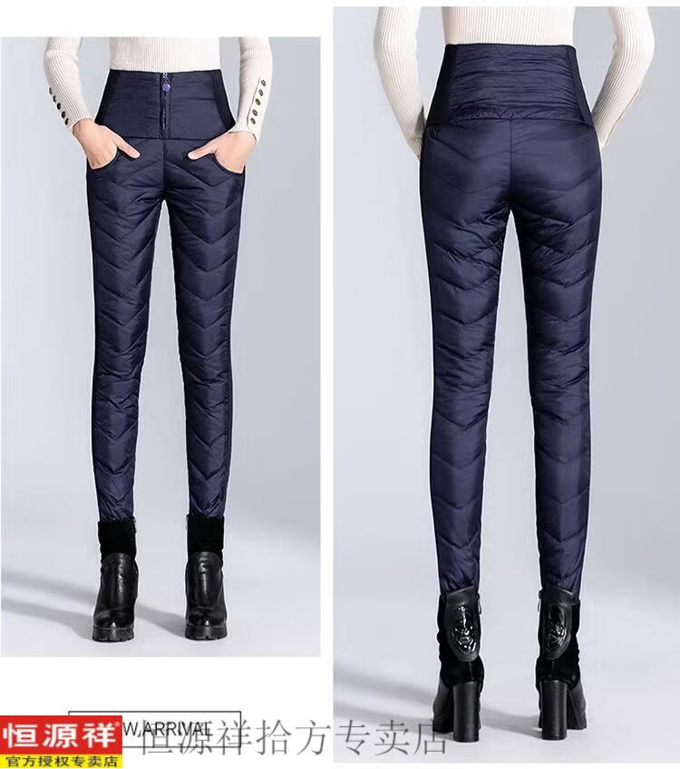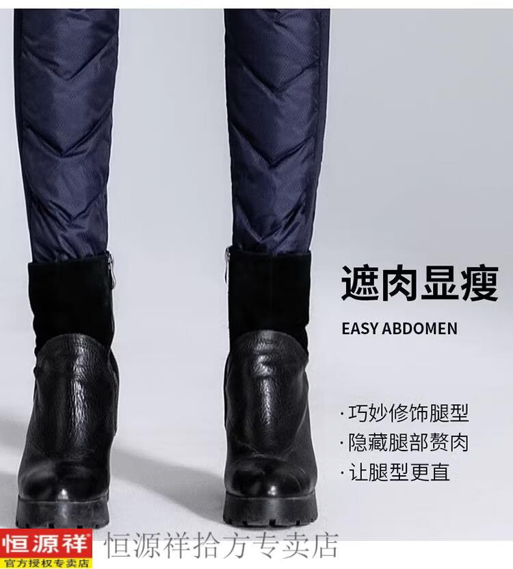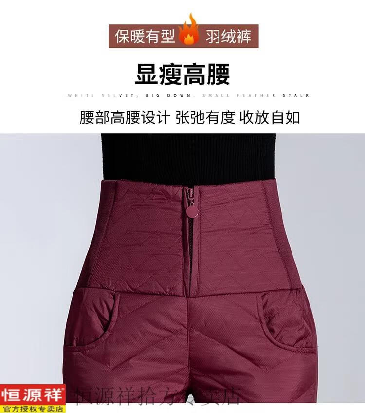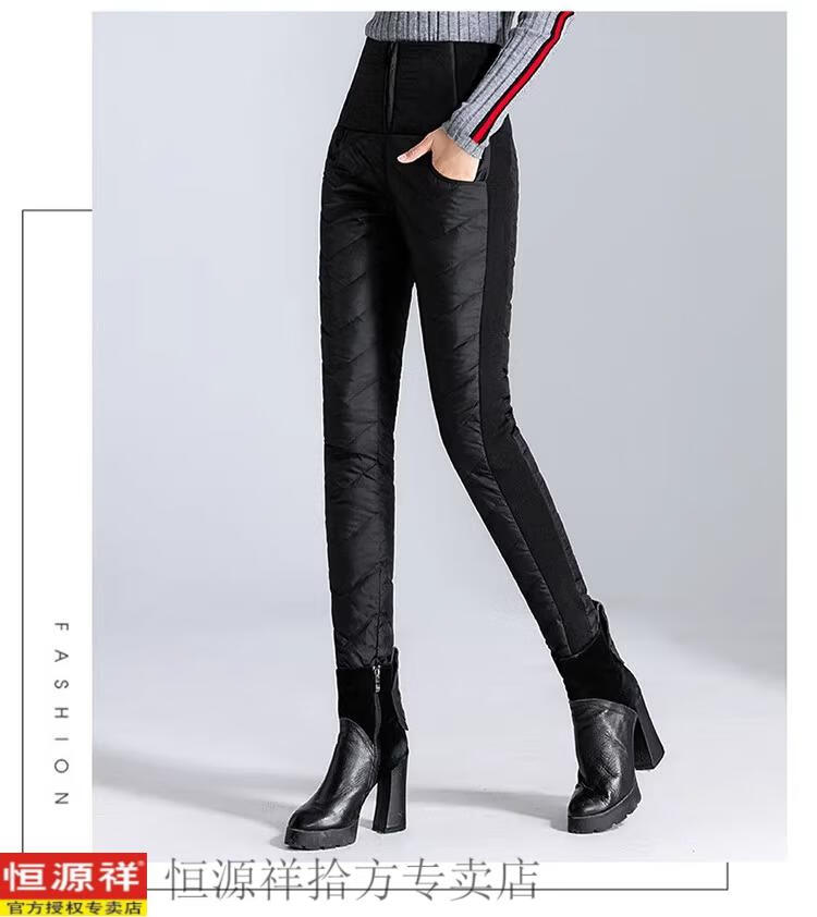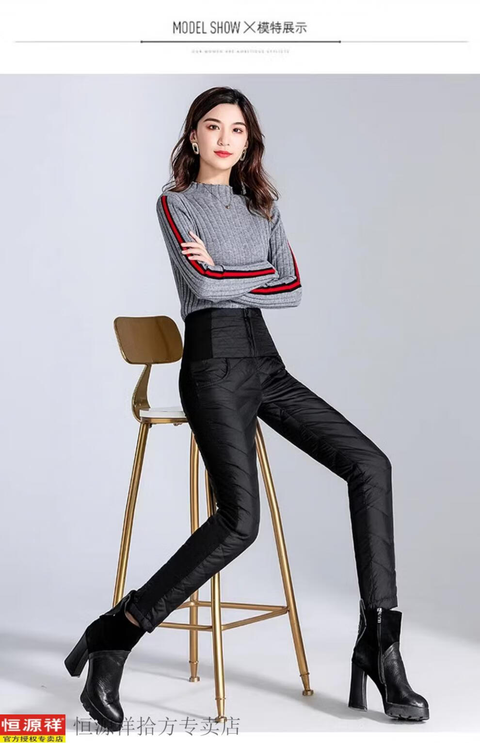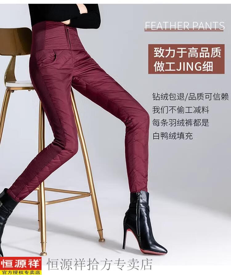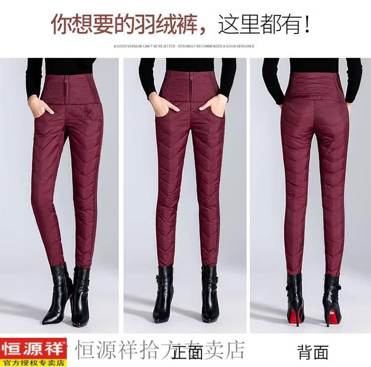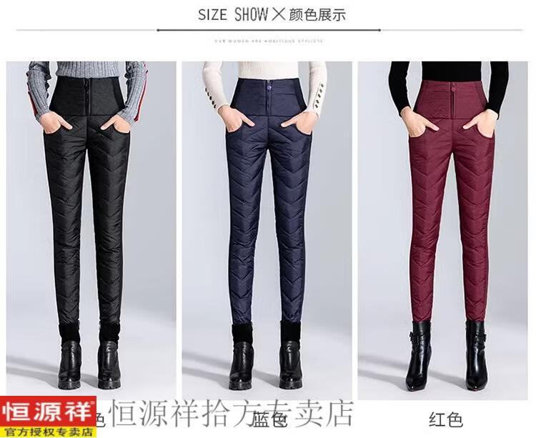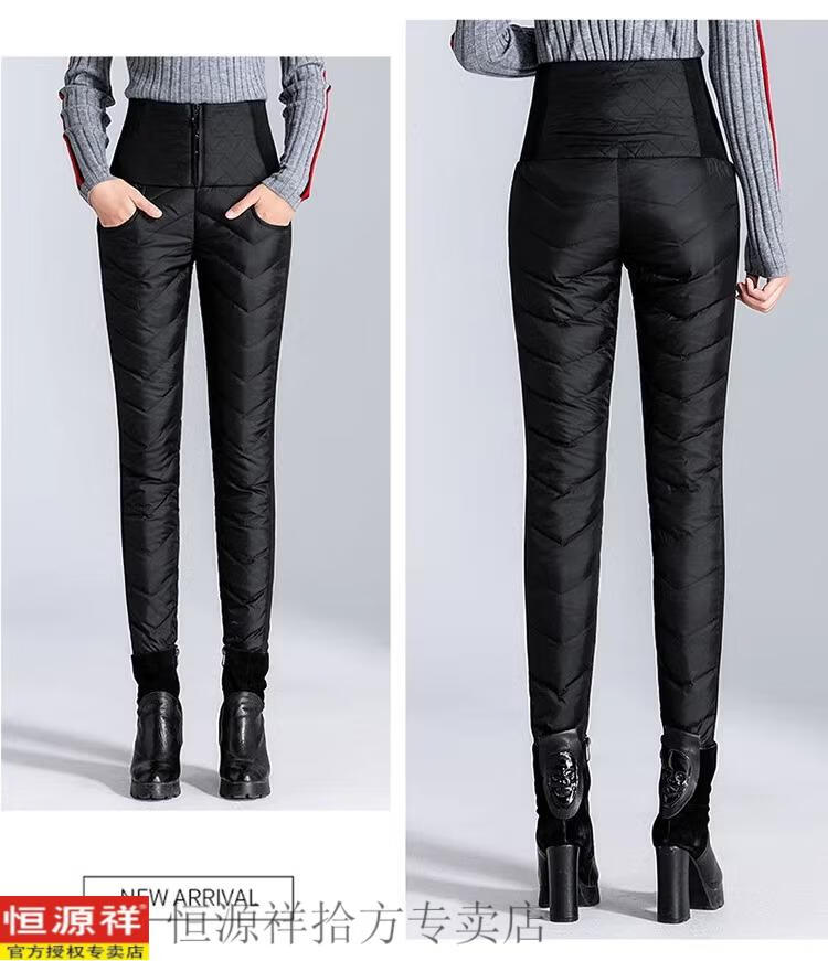 Hengyuanxiang down pants for women's outer wear new winter white duck down slim fit middle-aged and elderly mothers thickened warm cotton pants black M 95Jin Jin equal to 0.5 kg or less