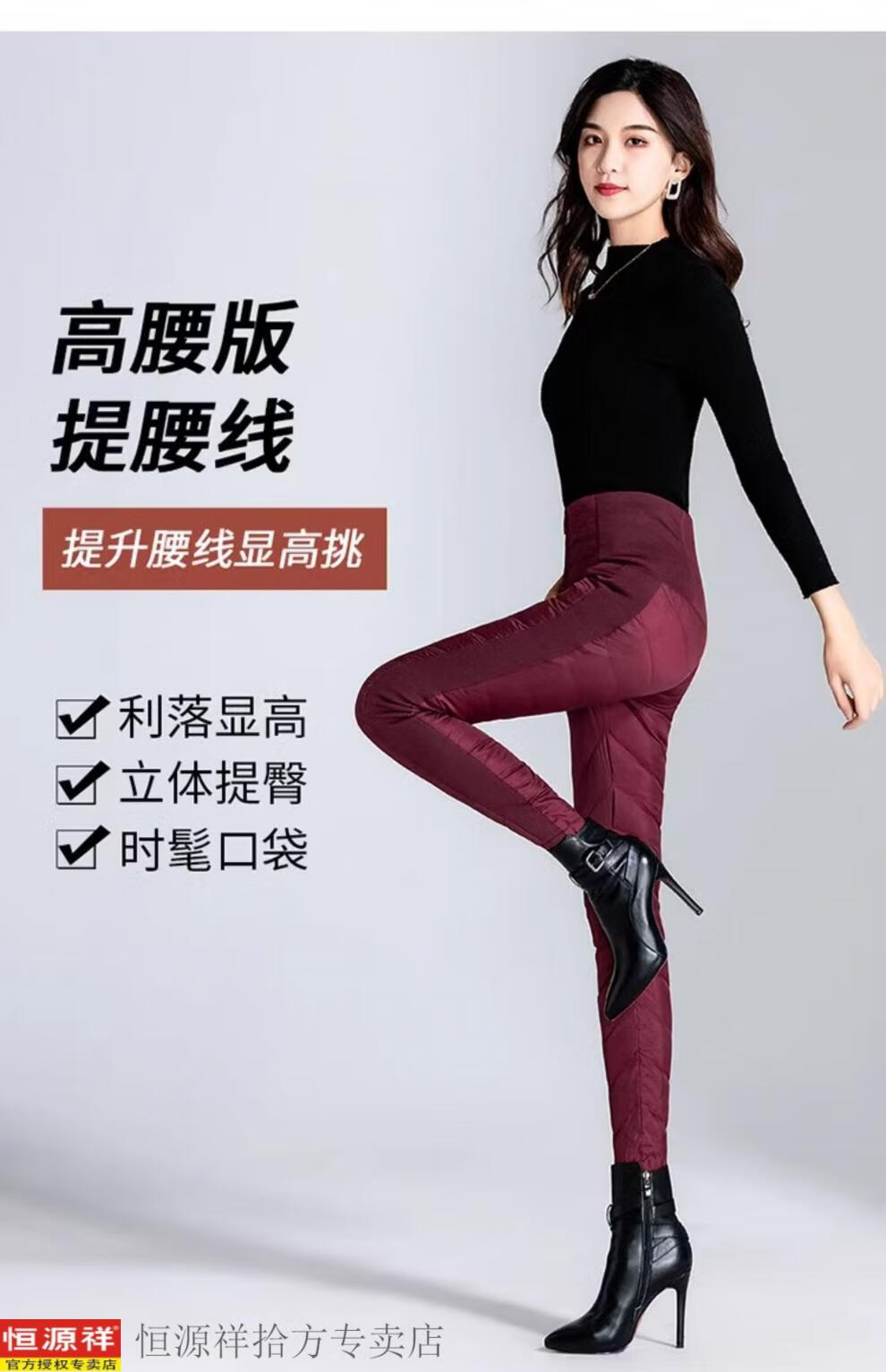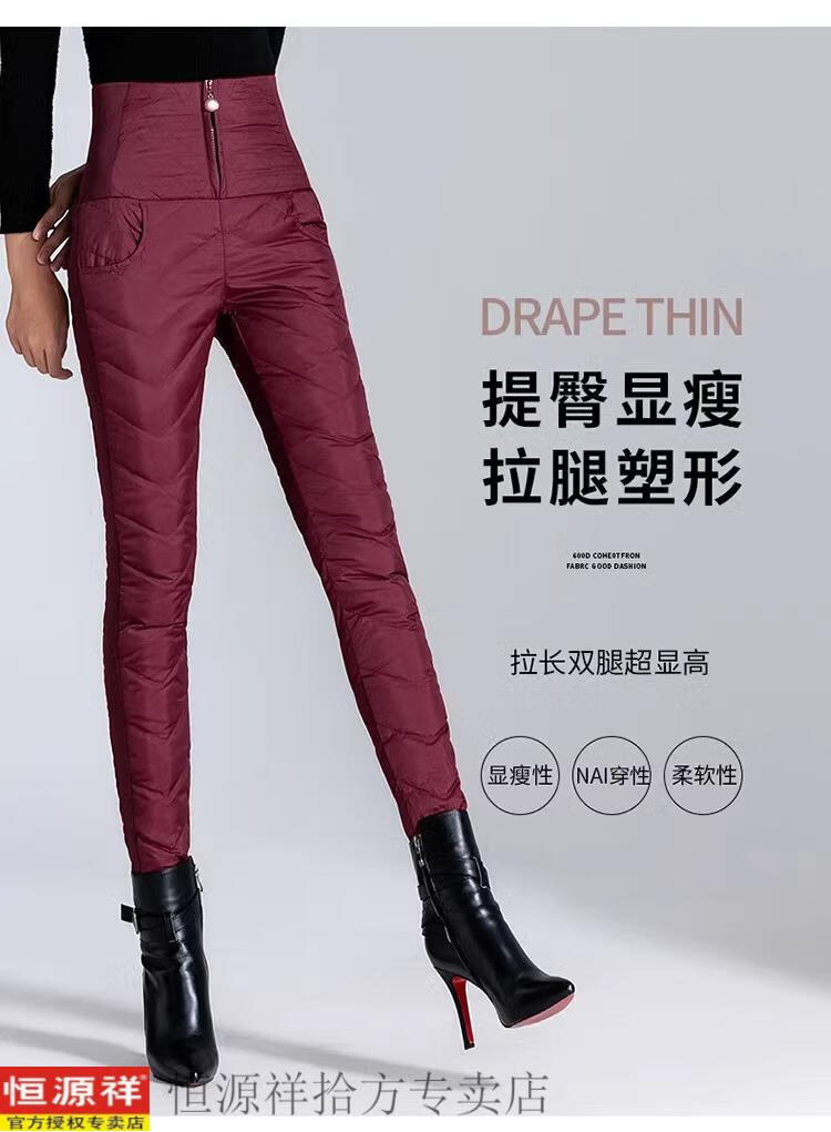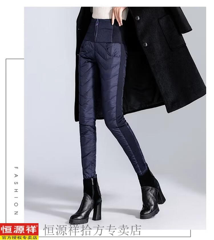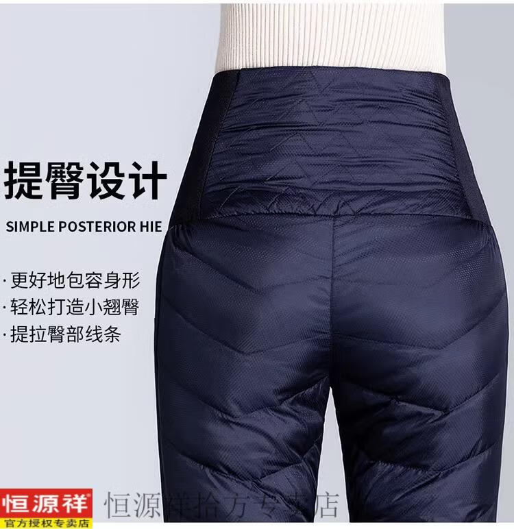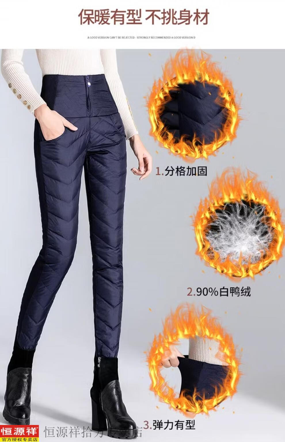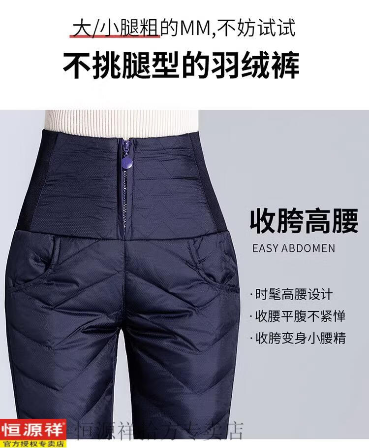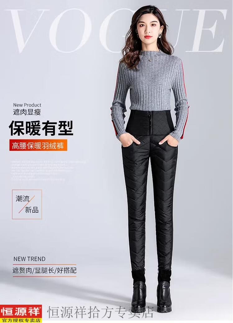 Hengyuanxiang down pants for women's outer wear new winter white duck down slim fit middle-aged and elderly mothers thickened warm cotton pants black M 95Jin Jin equal to 0.5 kg or less