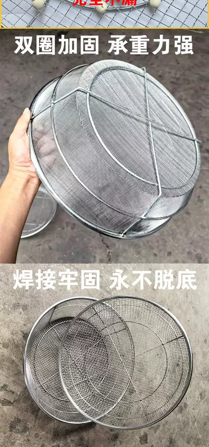 Fantasy round sieve mesh household thickened wire filter tool agricultural mesh sieve rice sesame drying peanuts diameter 45 cm hole spacing 2 mm height 12 cm