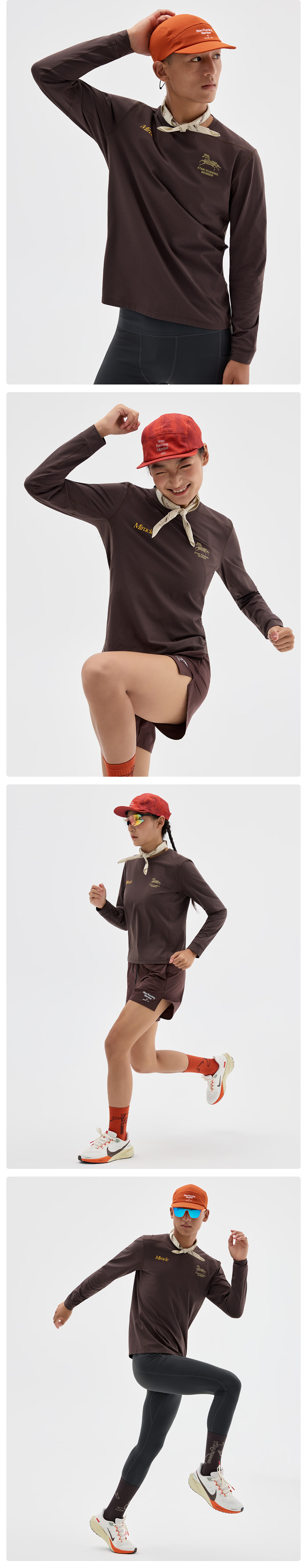 STAW Year of the Horse limited edition Shituo running long-sleeved T-shirt men's sports antibacterial marathon training quick-drying T-shirt for women dark brown L