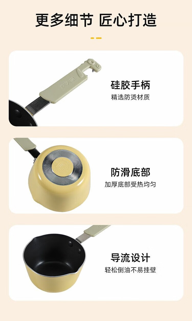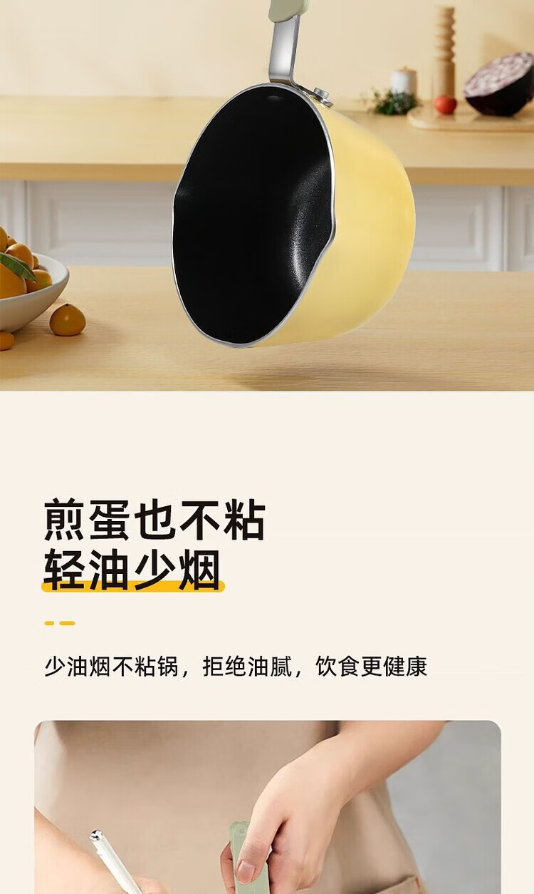 COOKER KING single-person mini lightweight pot for frying fried eggs with hot milk, silicone anti-scalding food pan for gas stoves, cooking sesame oil pouring pot - 12cm*6.8cm 1 inch