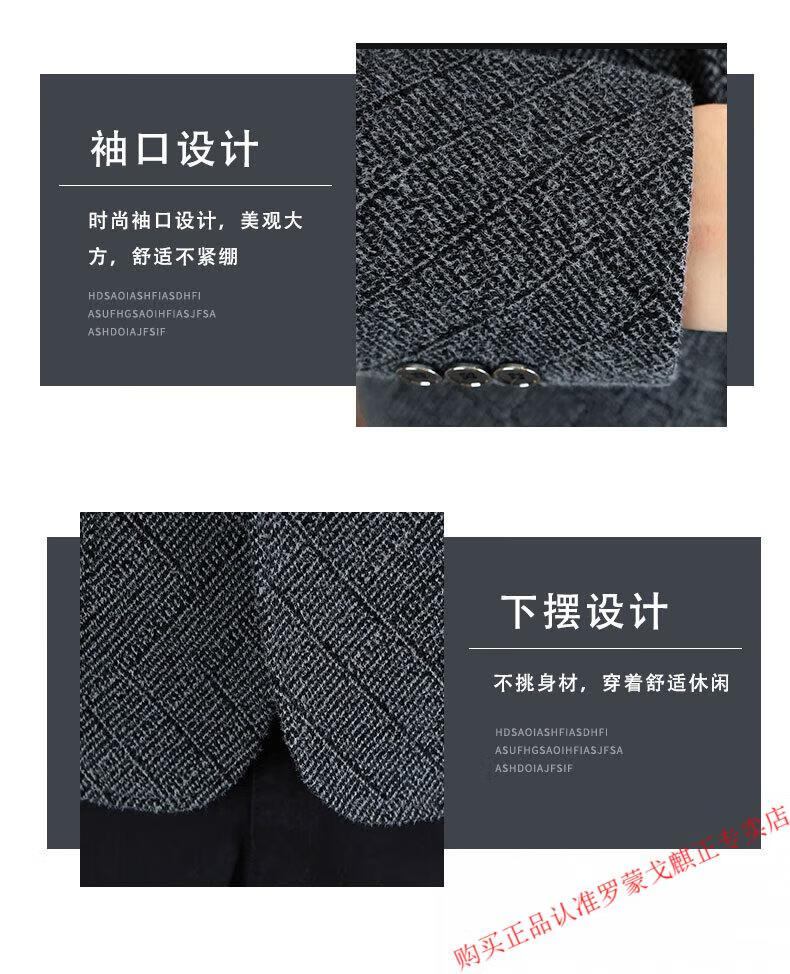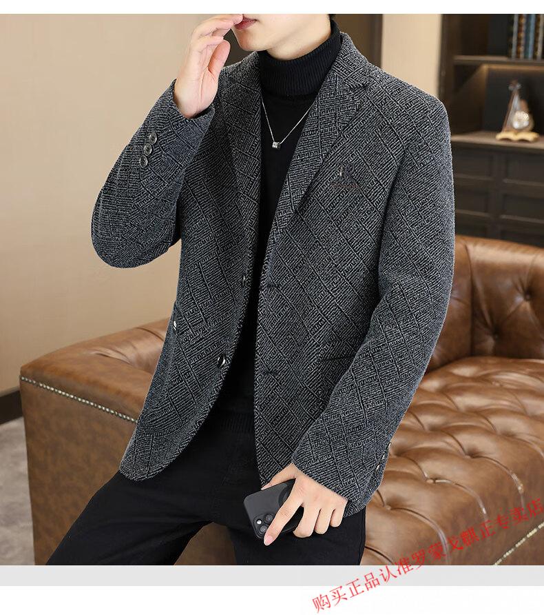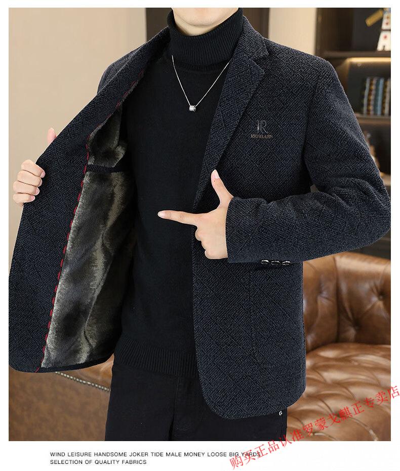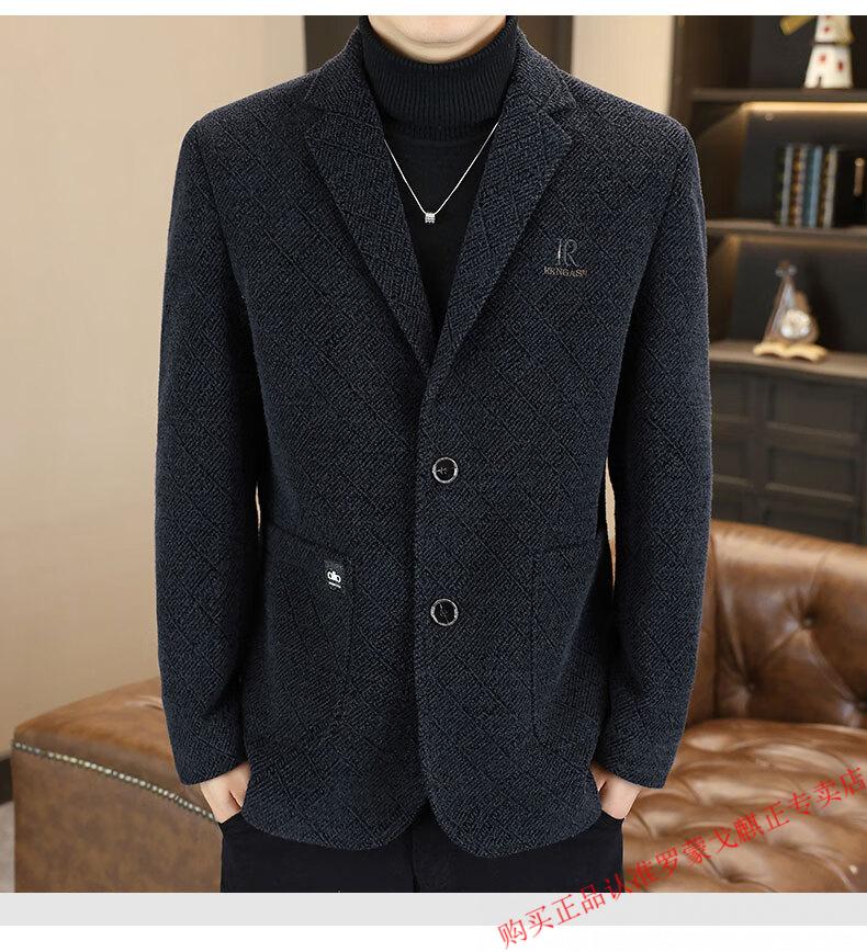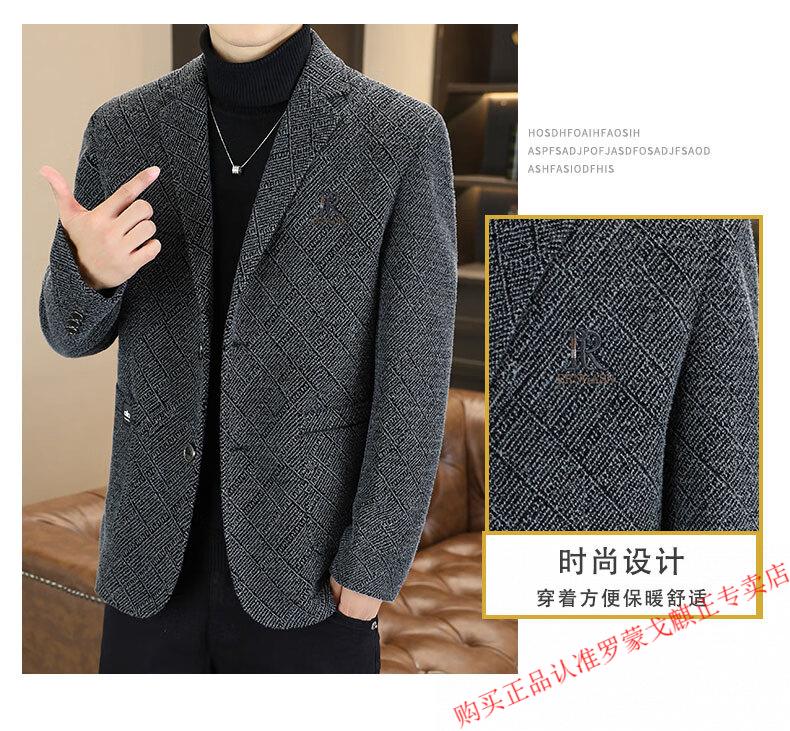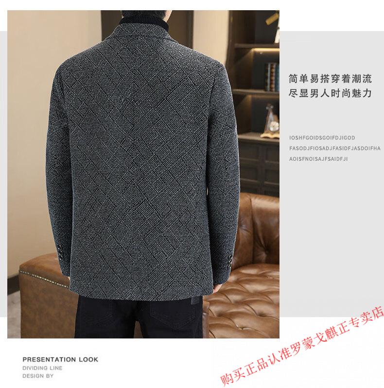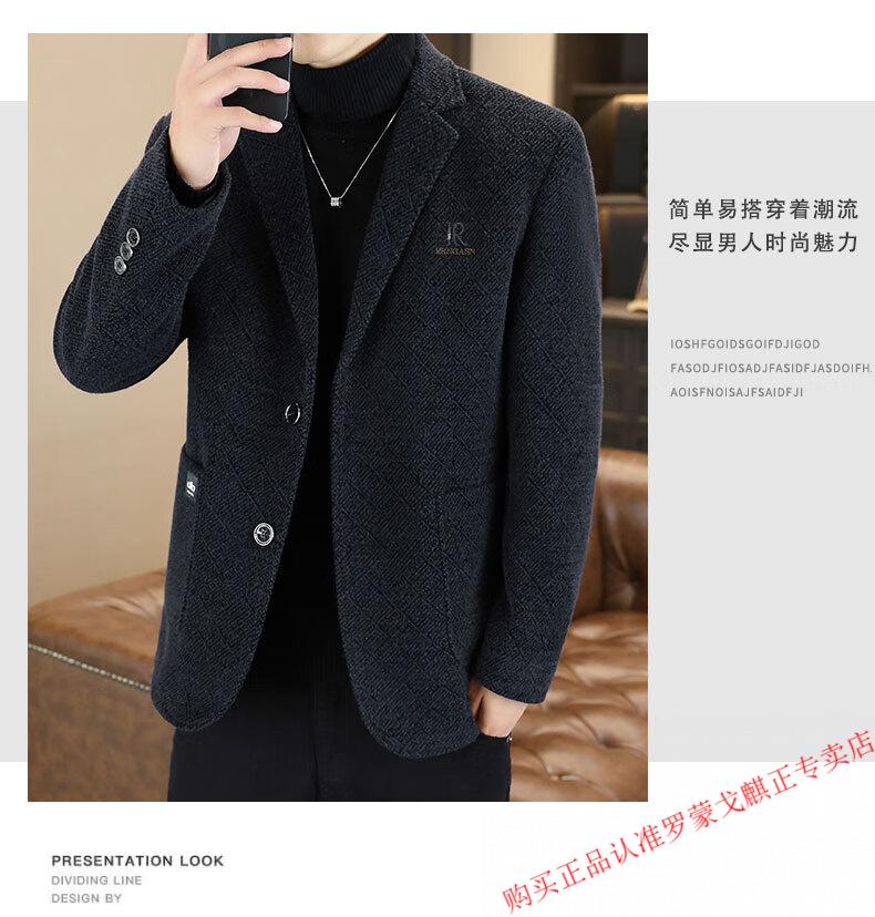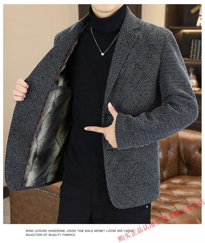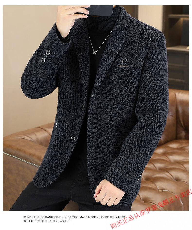 ROMON woolen casual suit men's jacket autumn and winter thickened velvet warm fashion small suit embroidered woolen jacket dark gray XL 120-140Jin Jin equals 0.5 kg