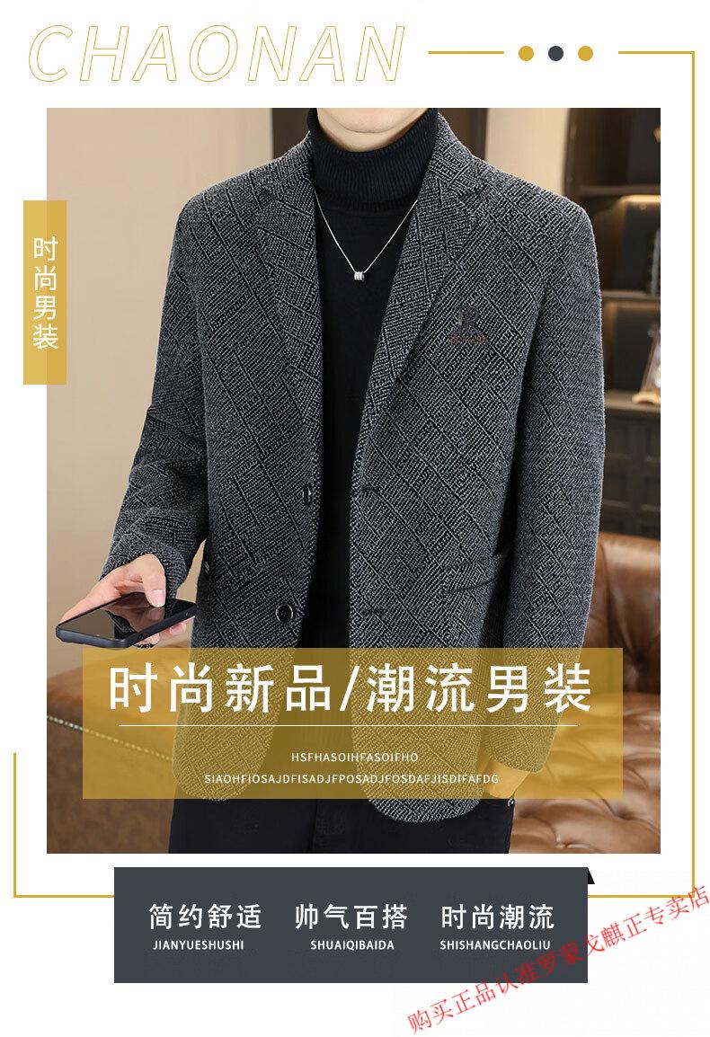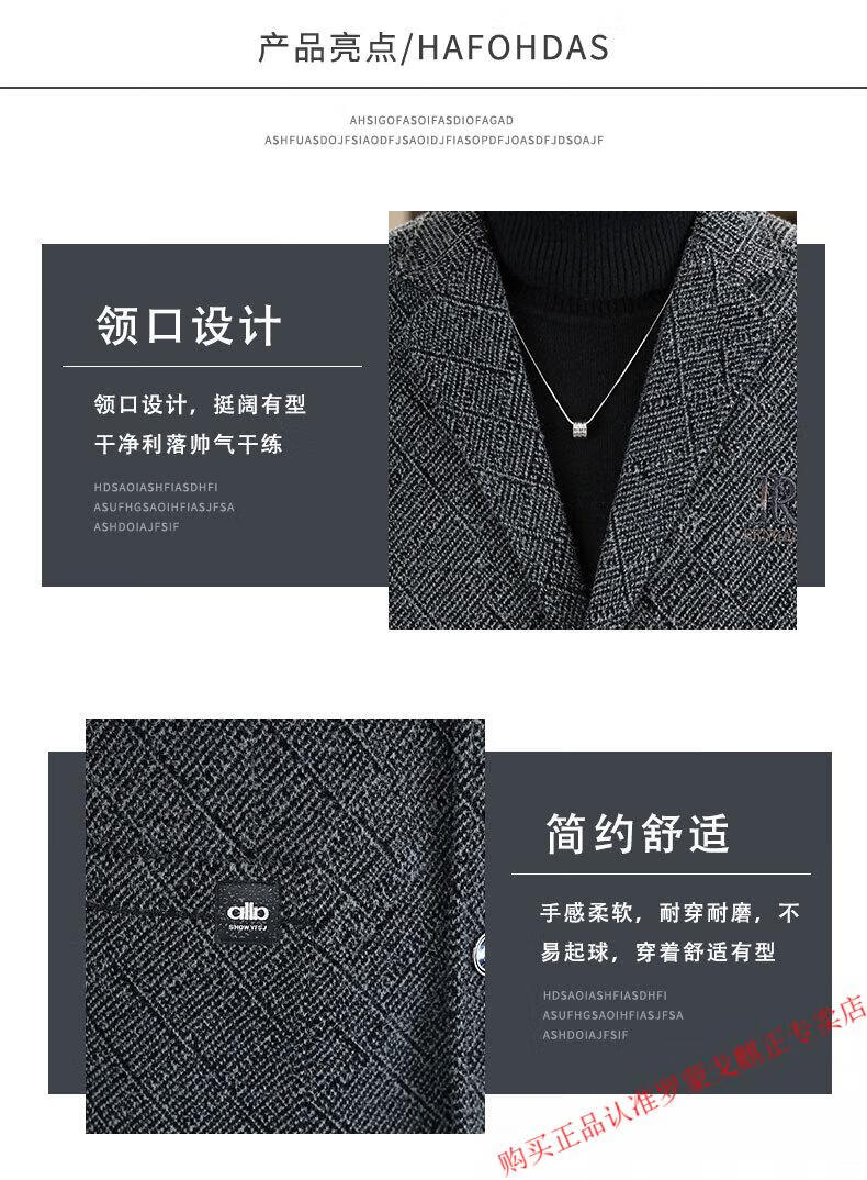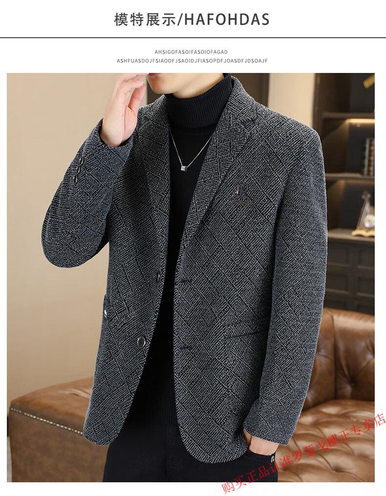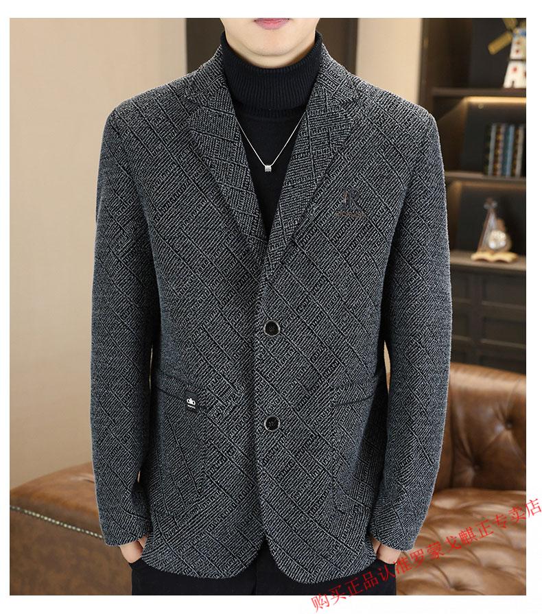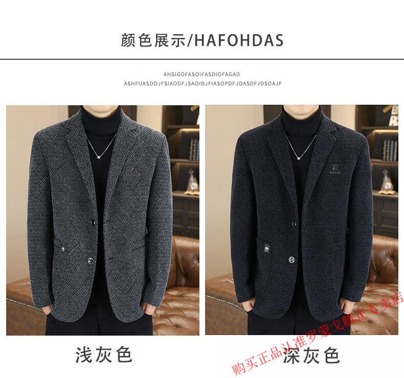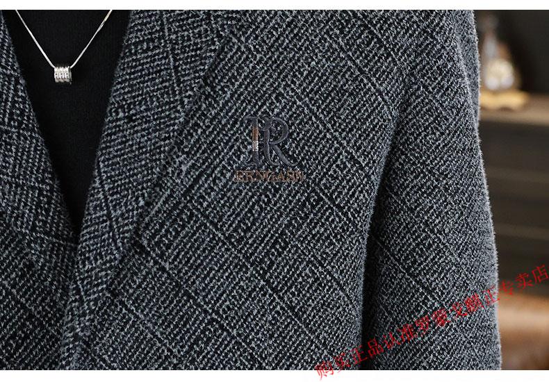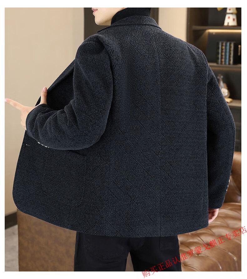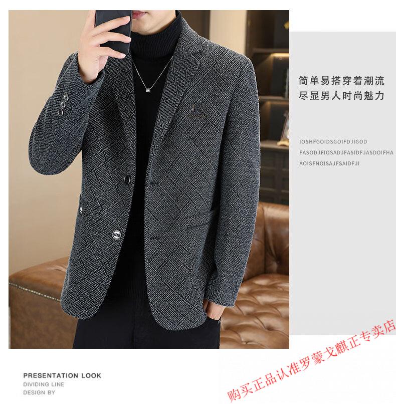 ROMON woolen casual suit men's jacket autumn and winter thickened velvet warm fashion small suit embroidered woolen jacket dark gray XL 120-140Jin Jin equals 0.5 kg