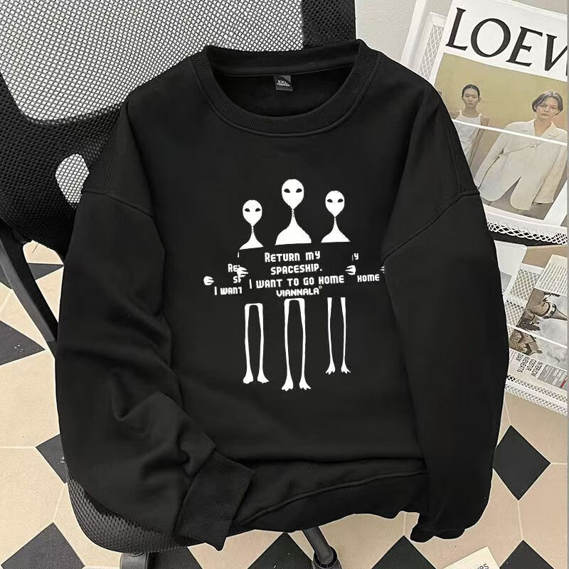 420G heavyweight pure cotton Hong Kong style sweatshirt autumn and winter new fashion brand clothing American casual versatile loose jacket top WT-Little Bear Black Silver Fox Velvet Plus Velvet 2XL 140-160Jin Jin is equal to 0.5 kg