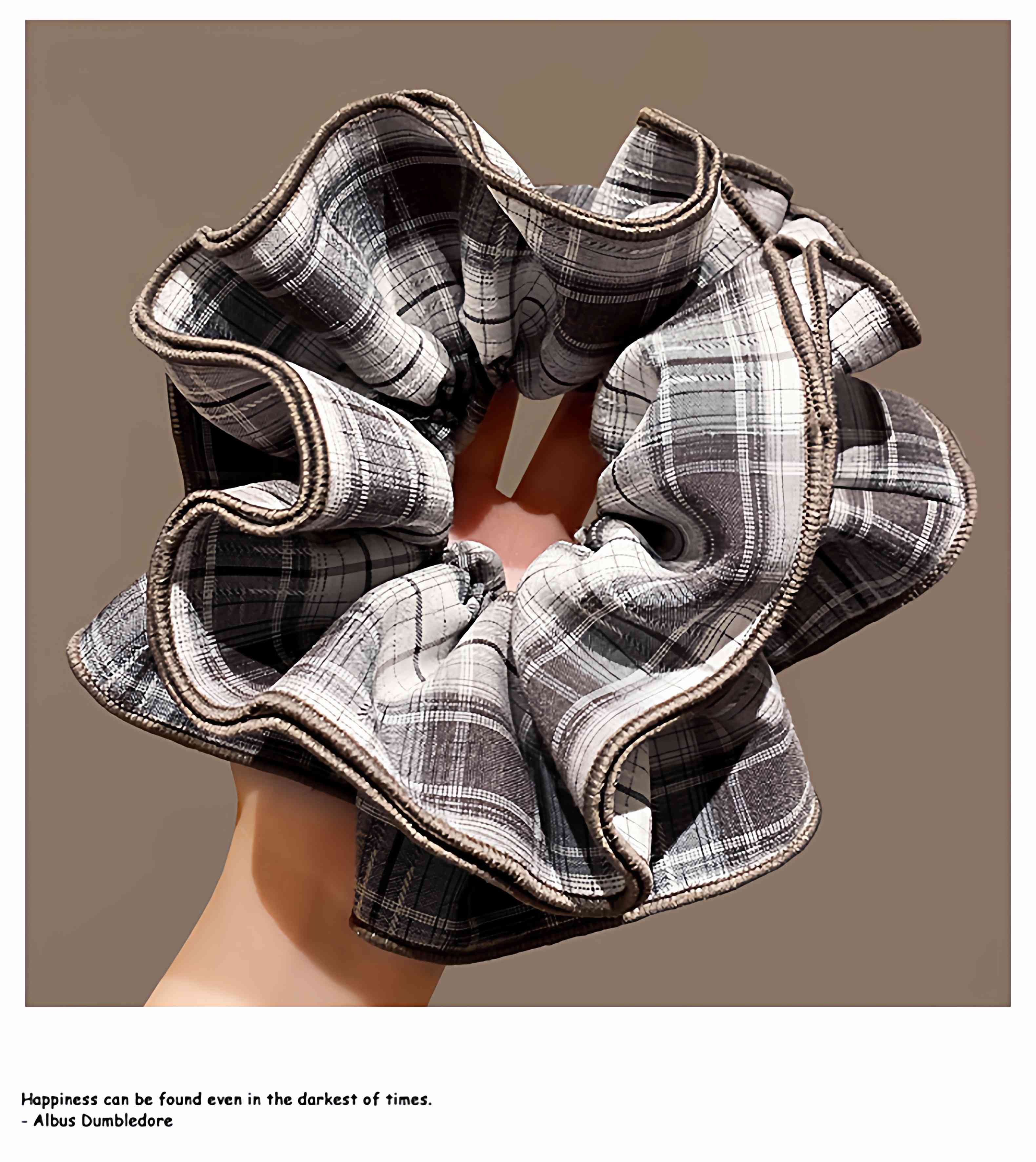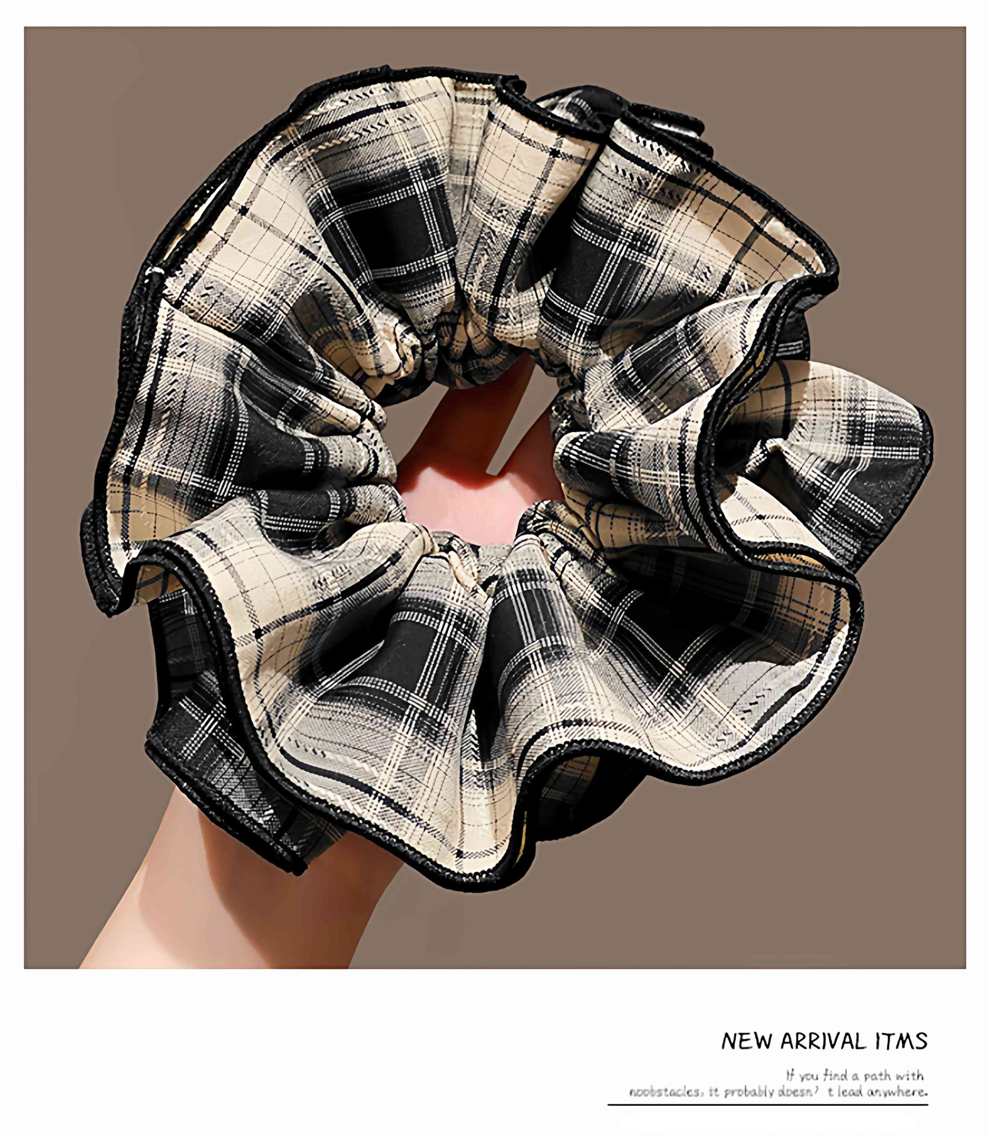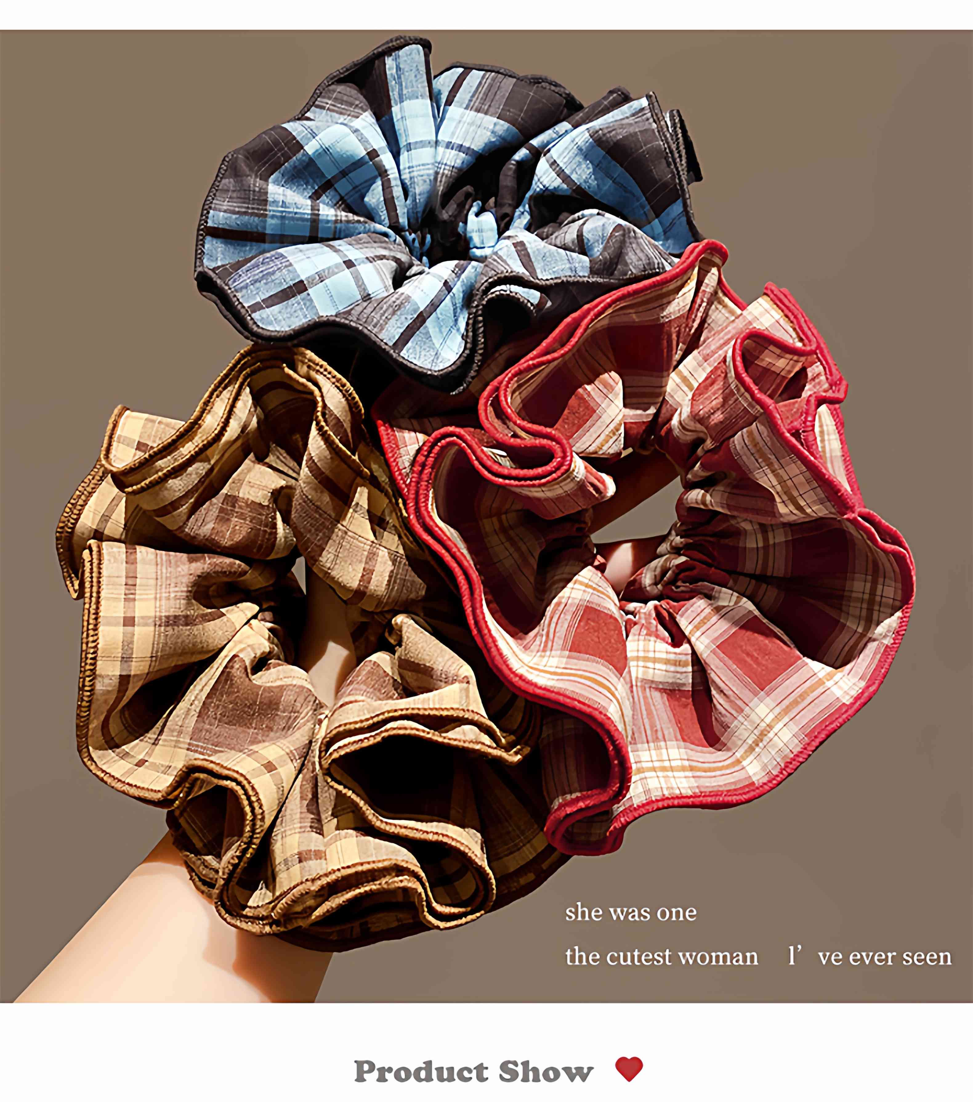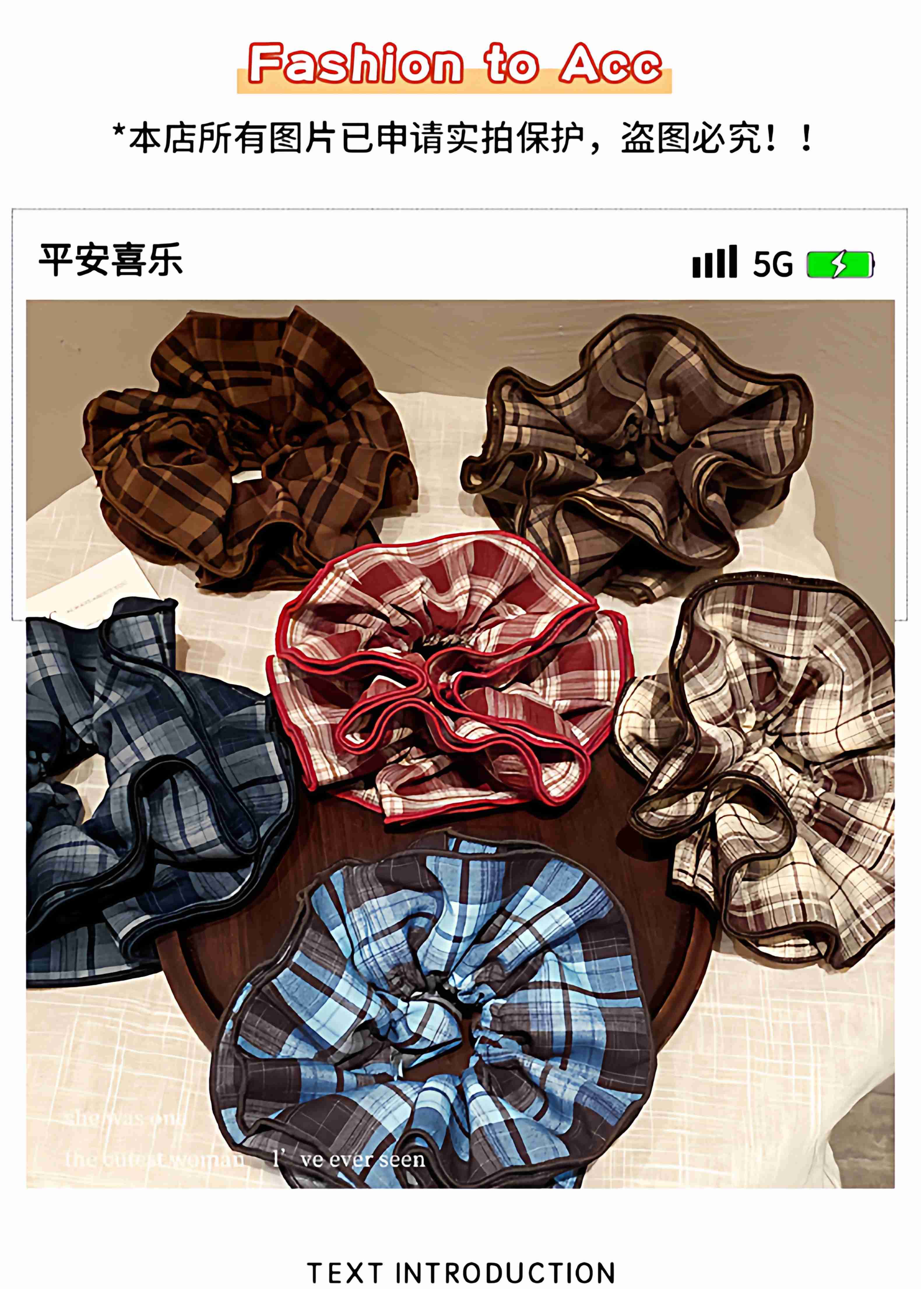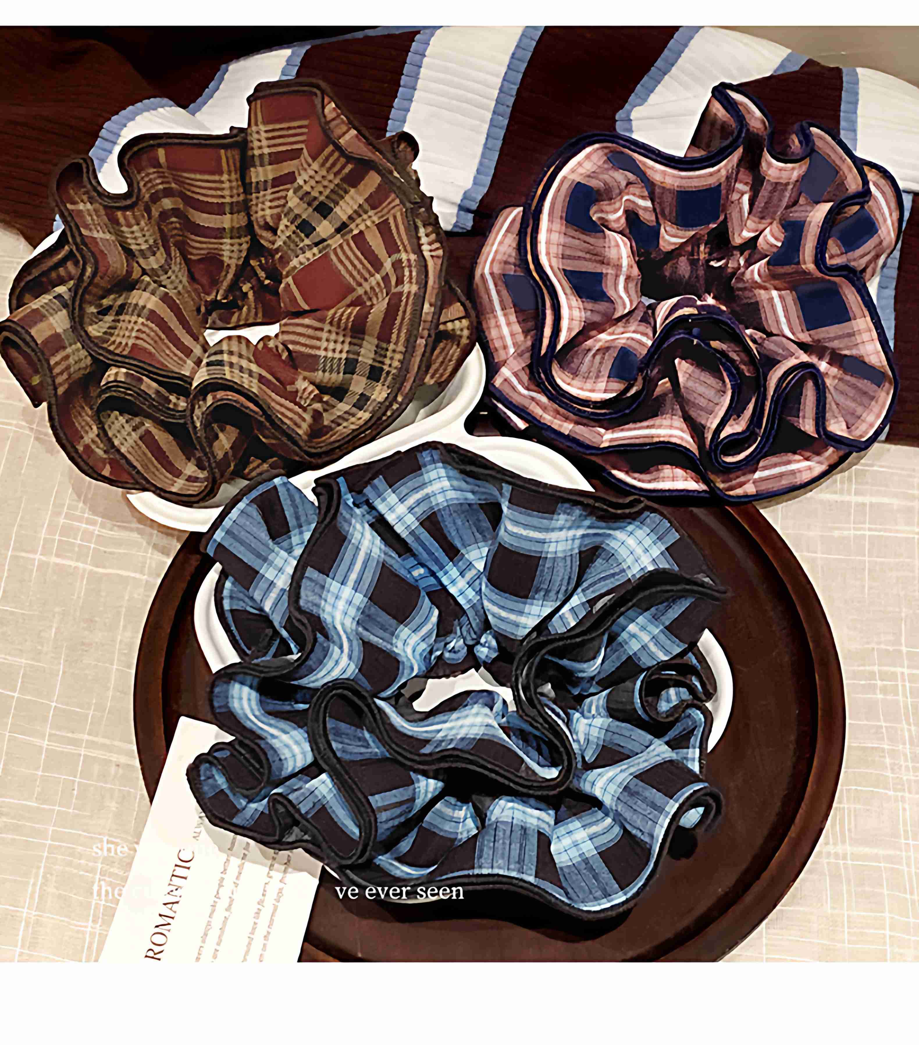 Let me shine Zhao Lusi's same style Korean navy blue plaid four-layer large intestine hair tie hair rope ball hair accessories Ruth's same style plaid headband