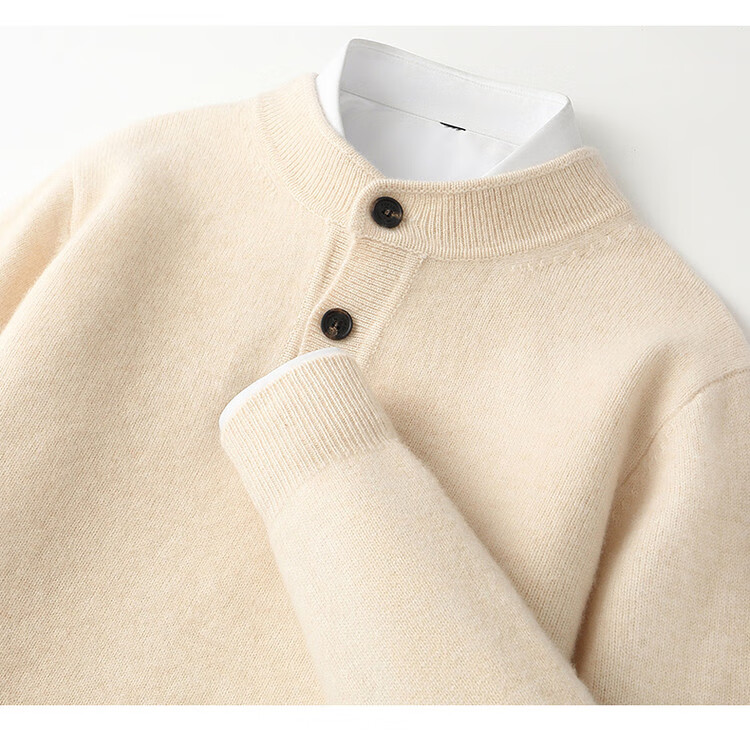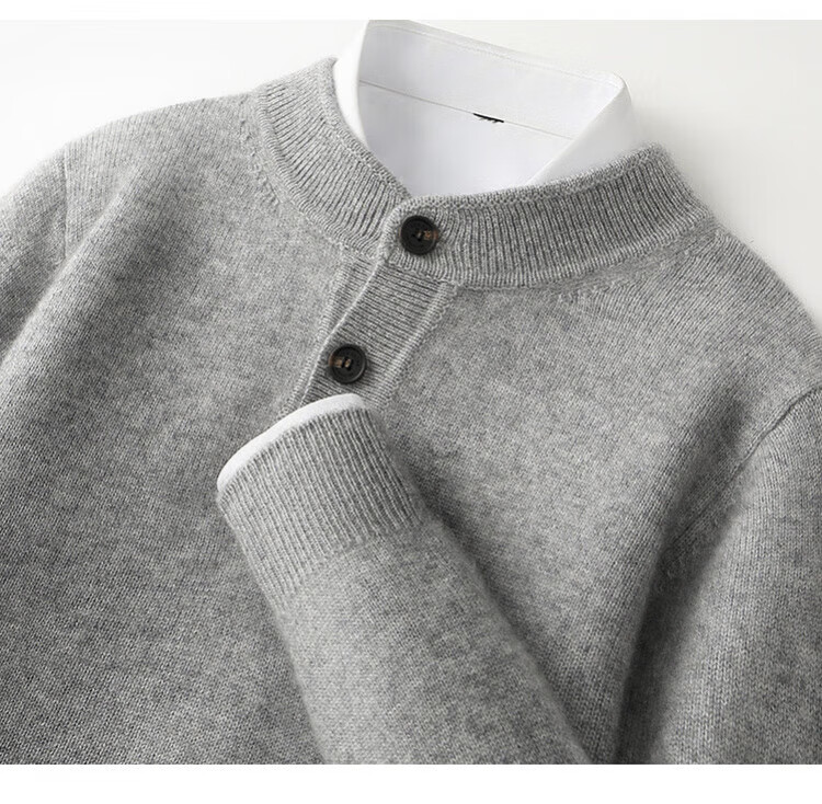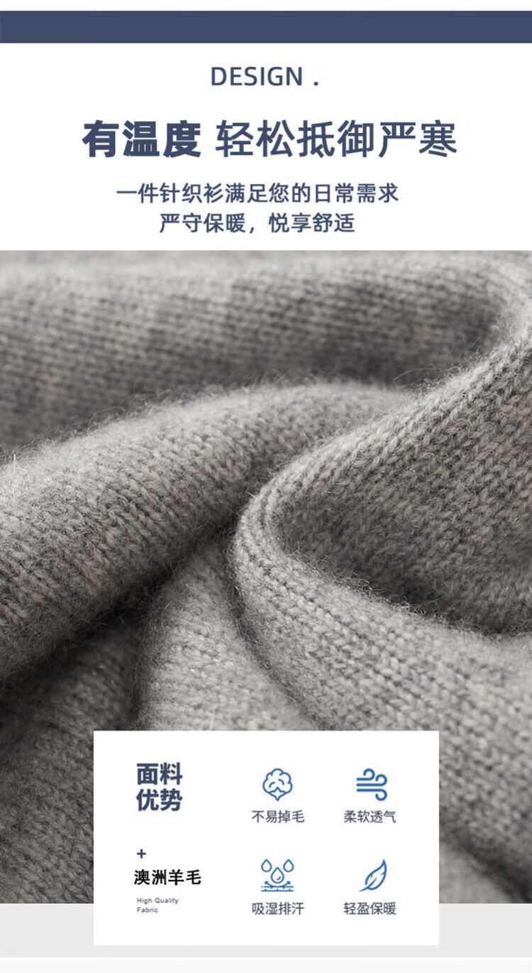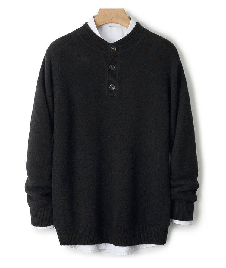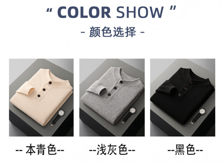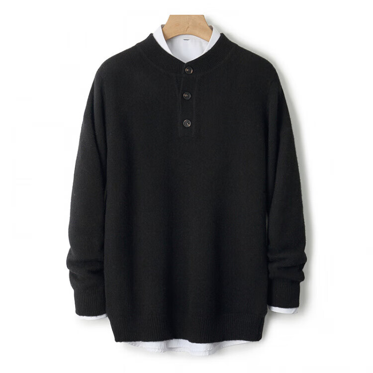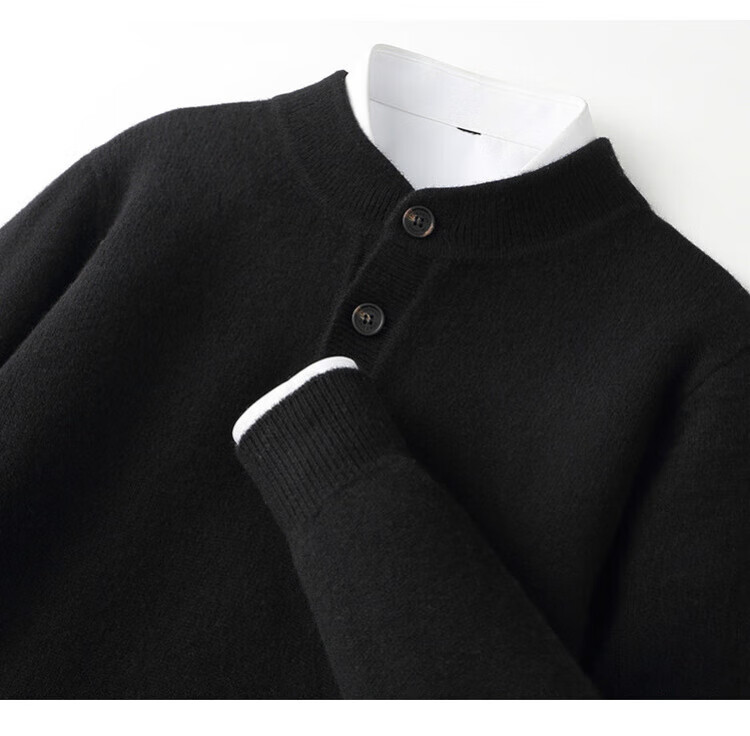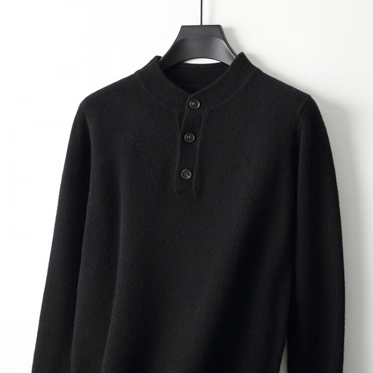EMZ Ordos City Winter Thickened Half-Open Henley Collar Pure Wool Sweater Men's 2025 Autumn and Winter New Knitted Sweater Men Black L