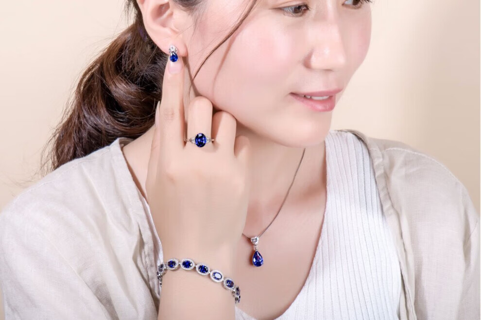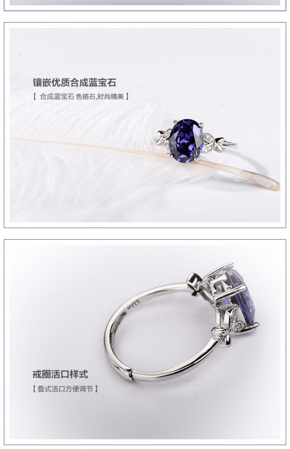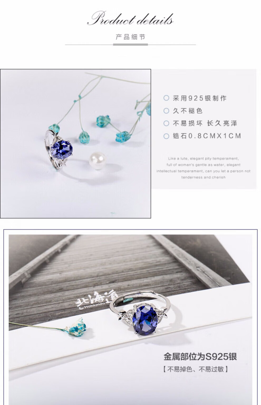 Reza S925 silver sapphire ring women's tanzanite sapphire ring live women's ring gemstone jewelry jewelry ring 92