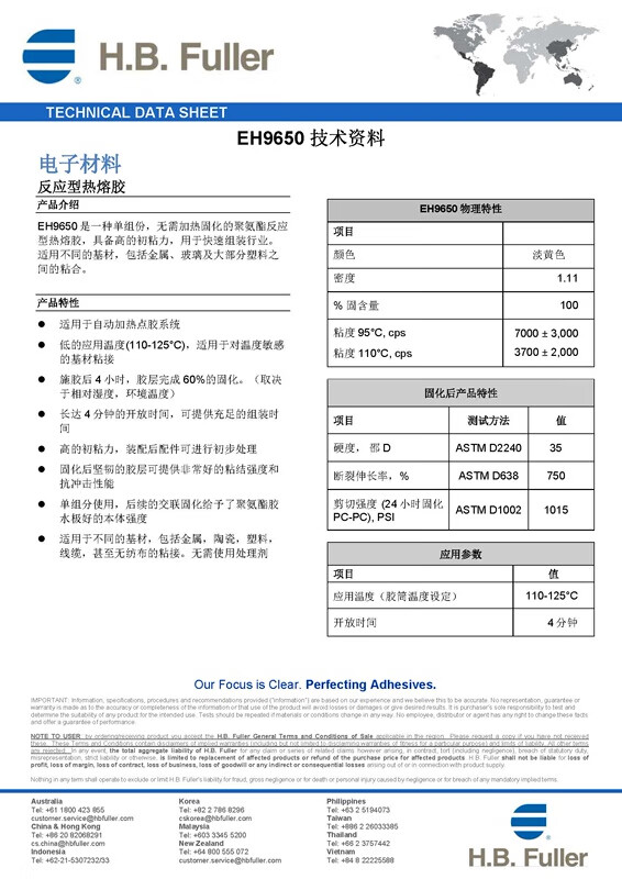 American Fuller EA9652/EA9821B/EH9659/RHT302/EH2000 series hot melt adhesive series hot melt adhesive