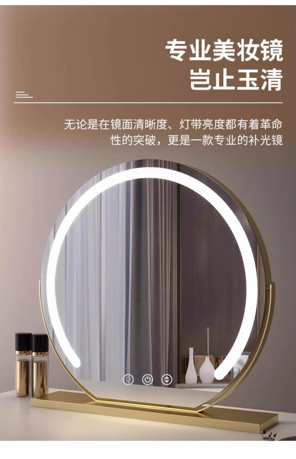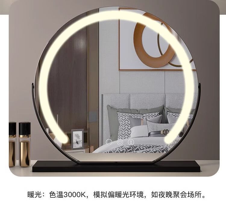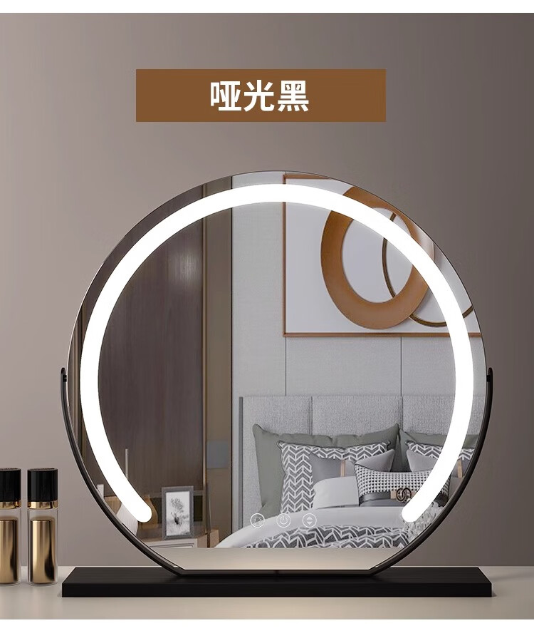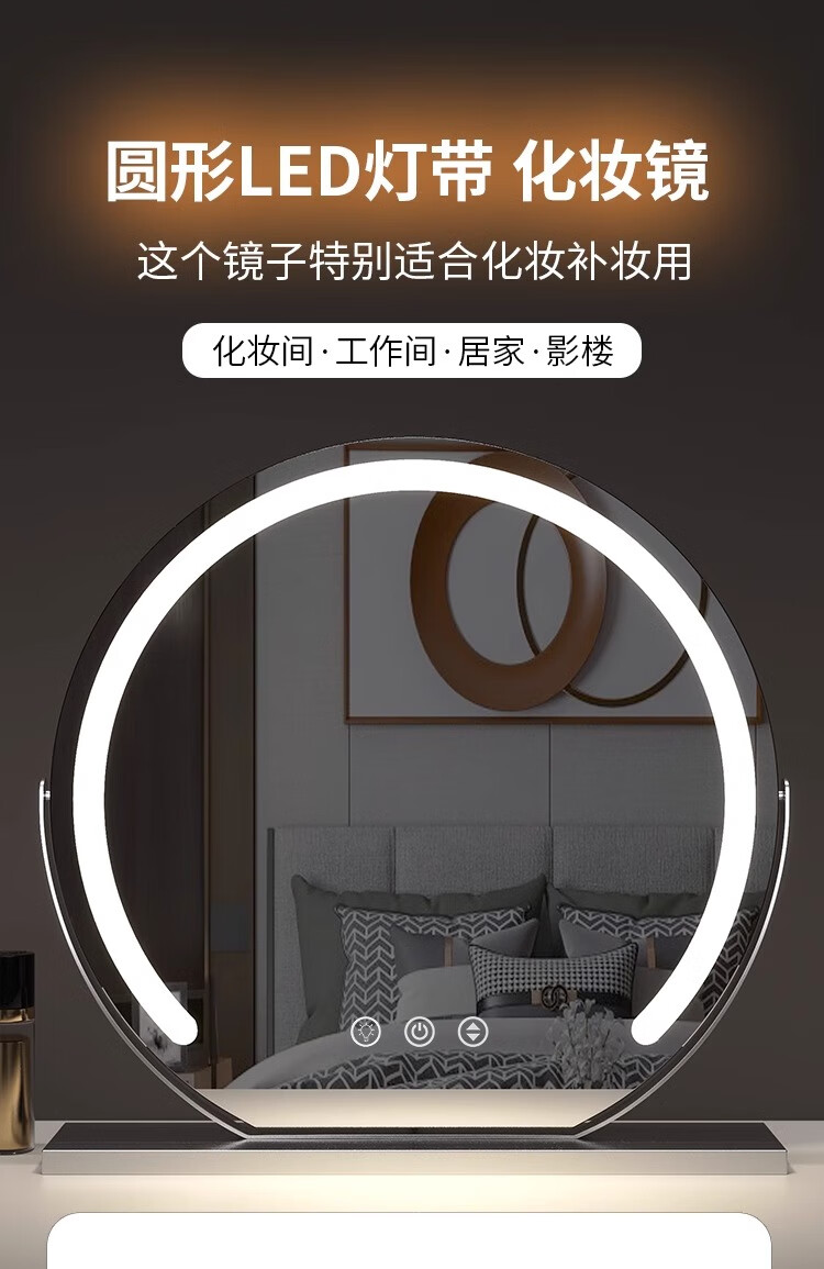 High Definition LED Makeup Mirror with Lights Dressing Mirror Desktop Smart Home Simple Master Bedroom Internet Celebrity Silver 50 Diameter (Charging) Rotating Model