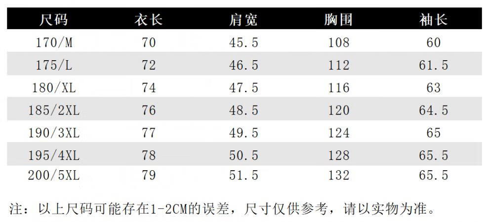 China (cm) 165 / 88-90 170 / 96-98 175 / 108-110 180 / 118-122 185 / 126-130