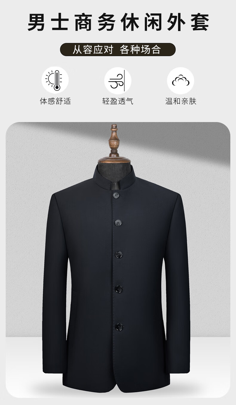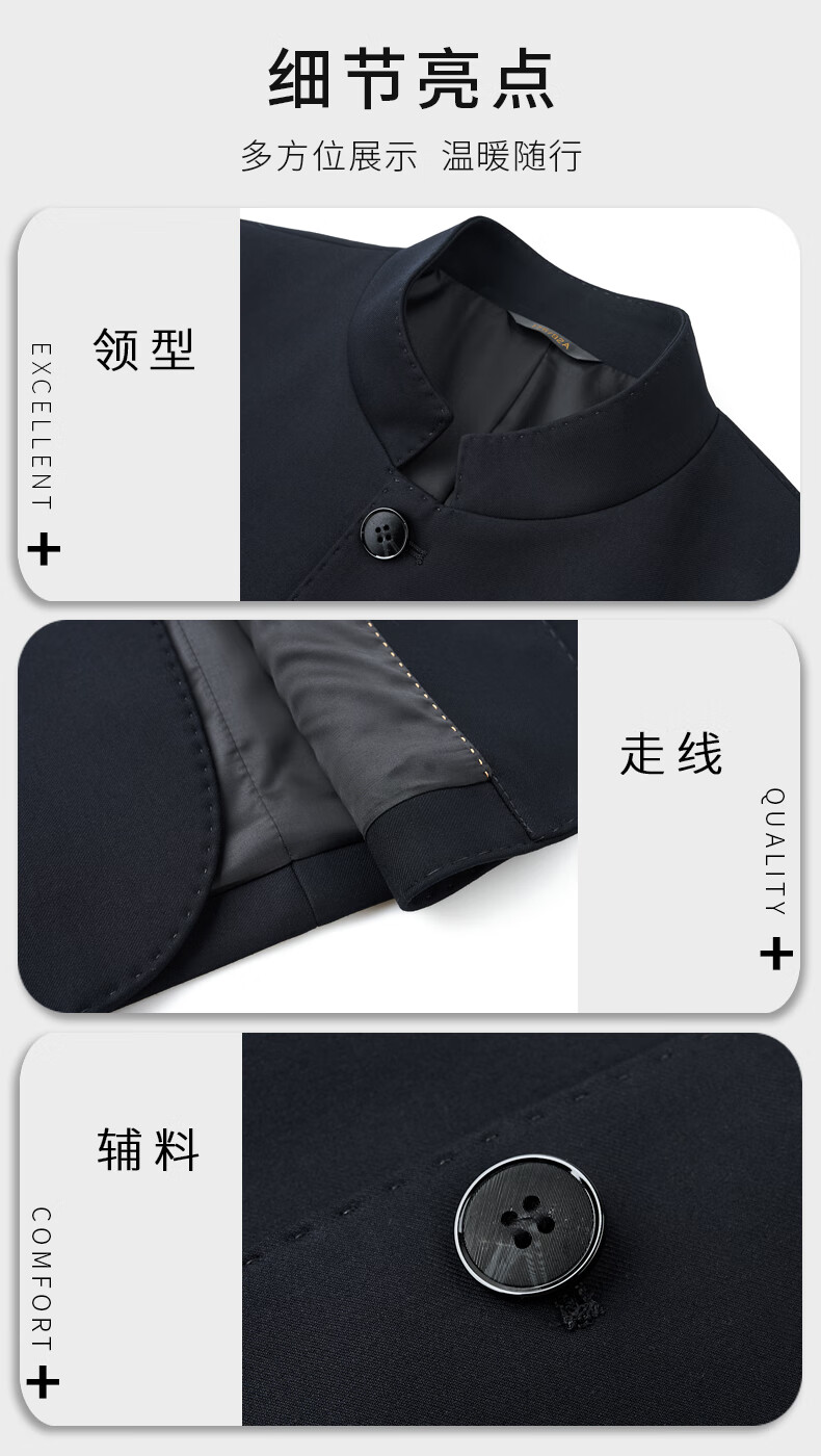 GOLDLION G+ goldlion autumn new Chinese tunic suit men's high-end business stand-up collar suit jacket wedding groom's dress navy blue-suit S 165