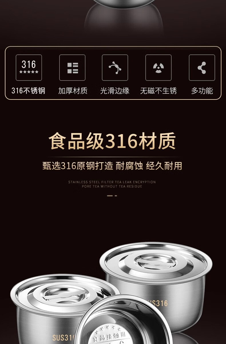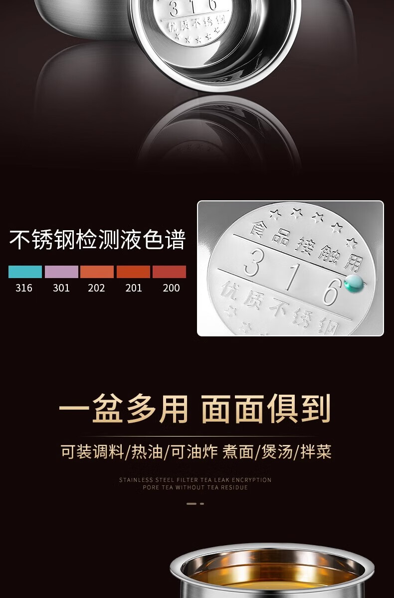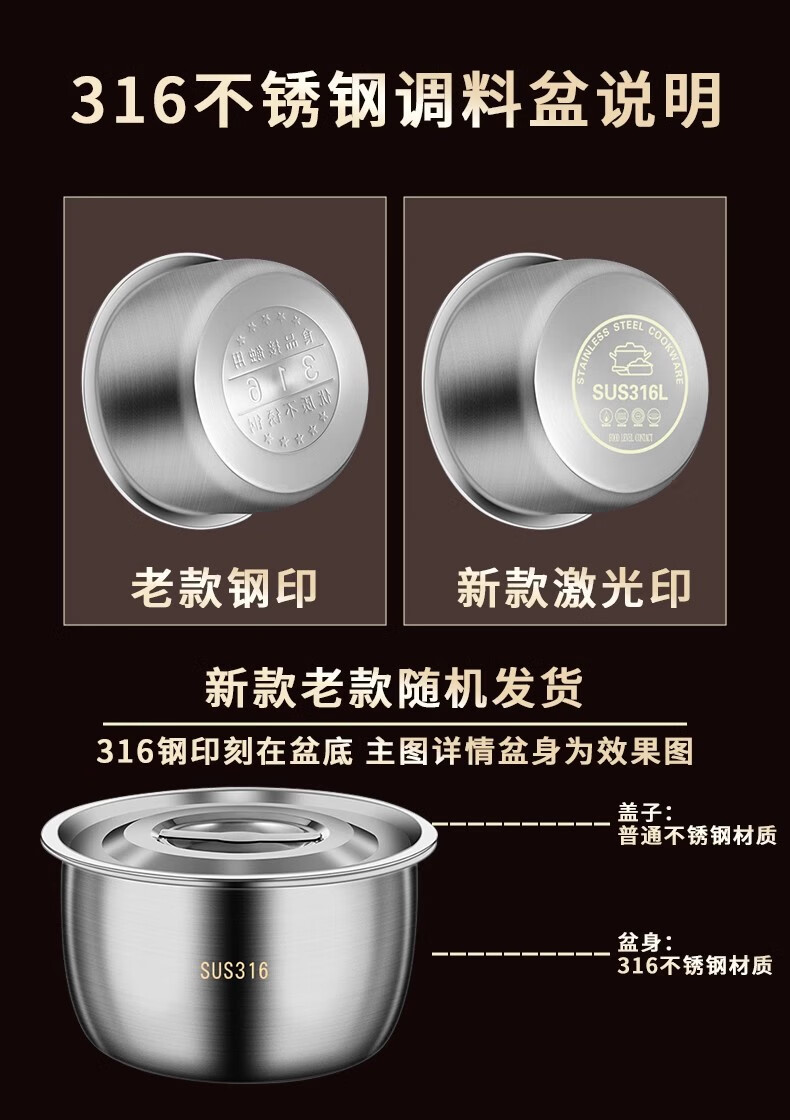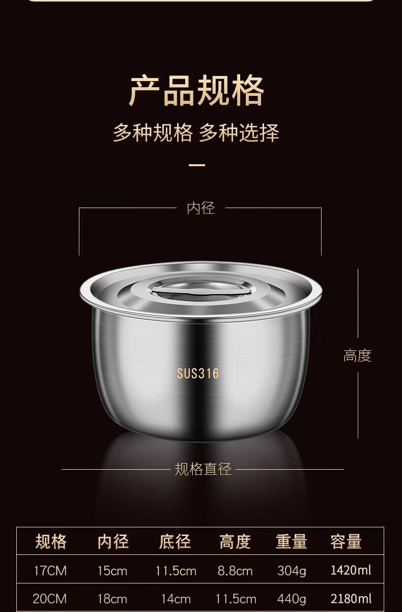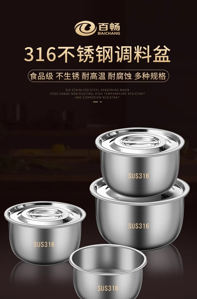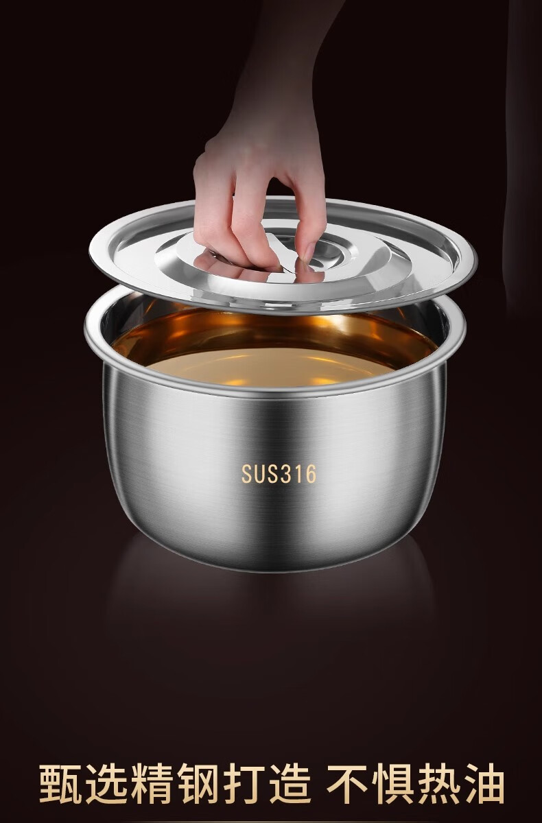 BAICHANG 316 stainless steel lard tank large capacity oil basin with cover oil cylinder household kitchen high temperature resistant oil drum oil storage 17cm-316 antibacterial lard basin