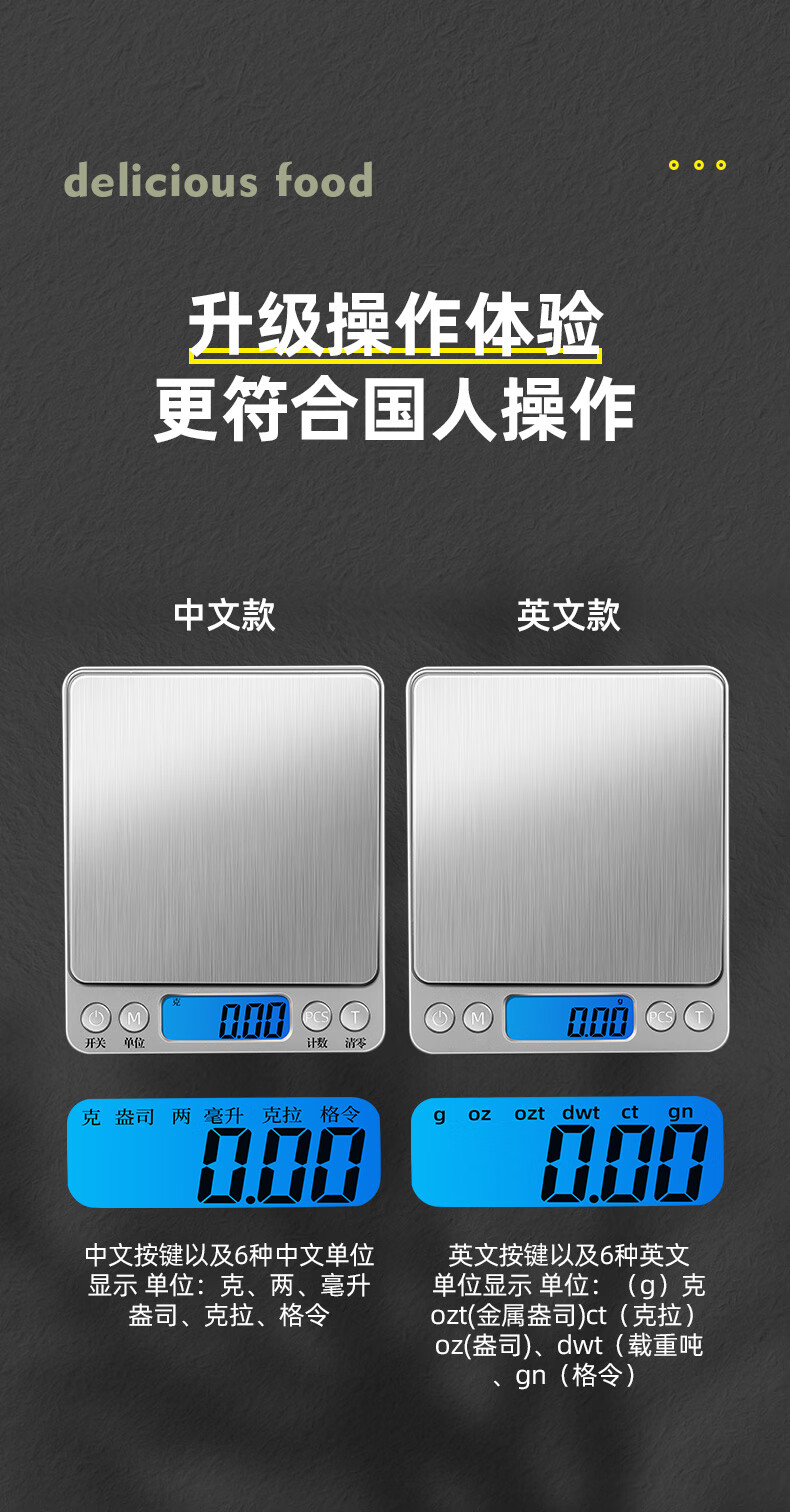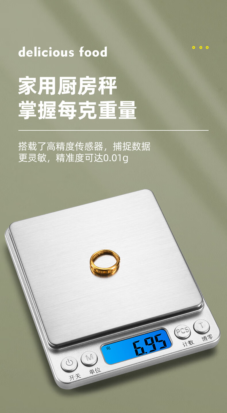 High-precision electronic scale mini portable pocket scale gold jewelry gram scale electronic scale kitchen scale 0.01g rechargeable dual-use model 500g/0.01g (comes with double trays)