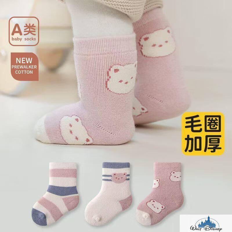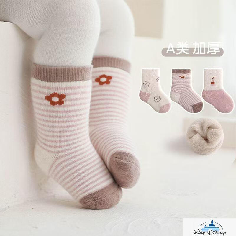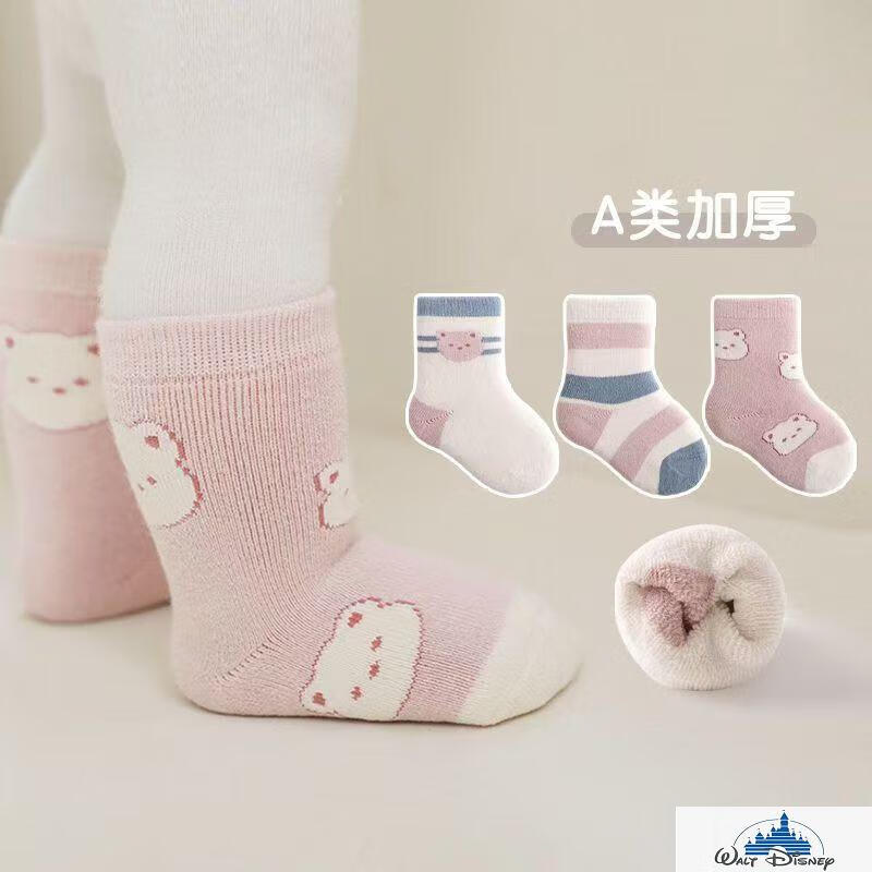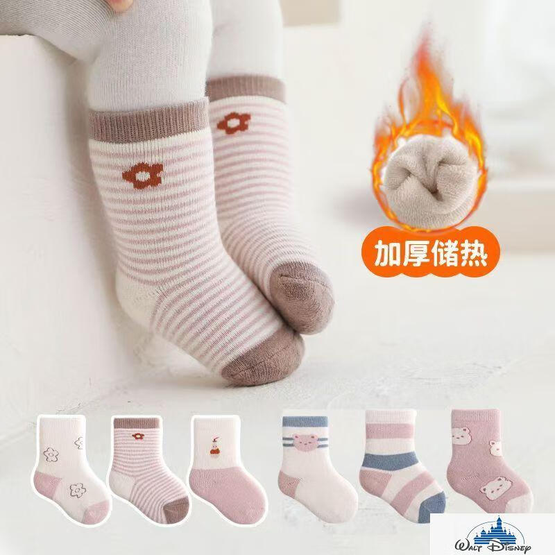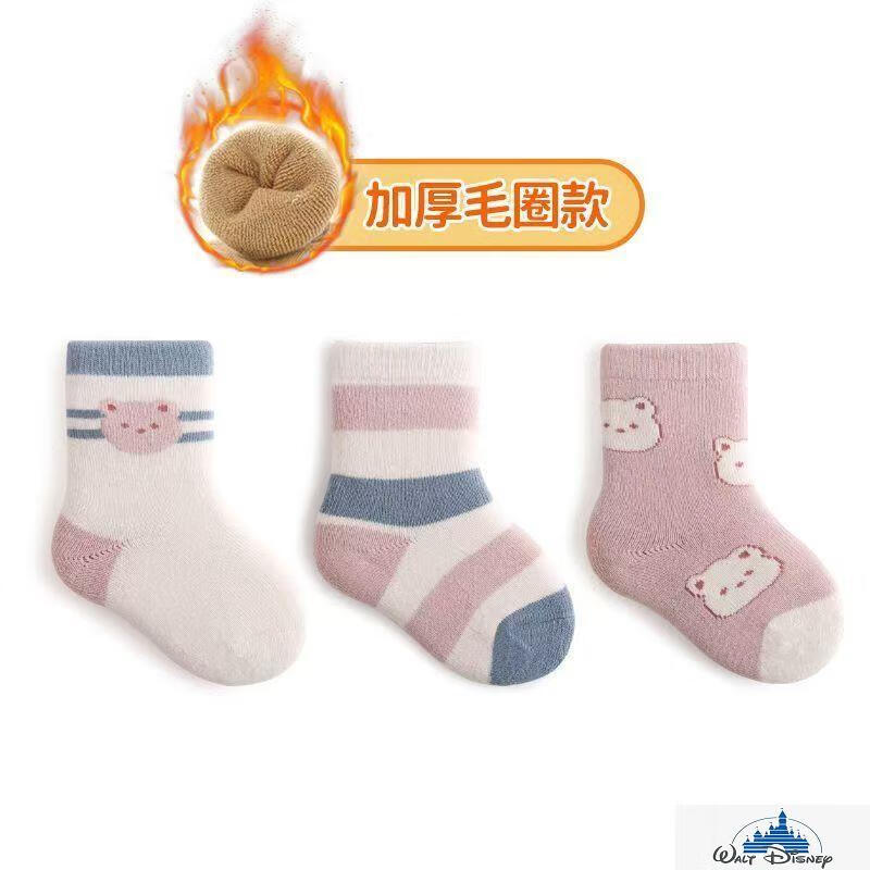 Disney (Disney) baby socks winter pure cotton thickened terry warm newborn plus velvet baby autumn and winter boys and girls medium tube blue puppy pure cotton thickened 6 pairs one size 6-12 months recommended foot length 9-12CM