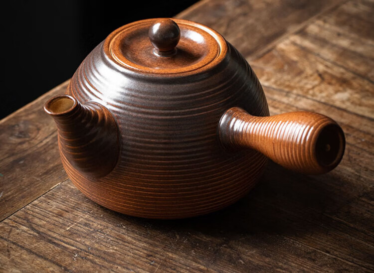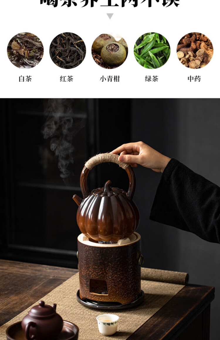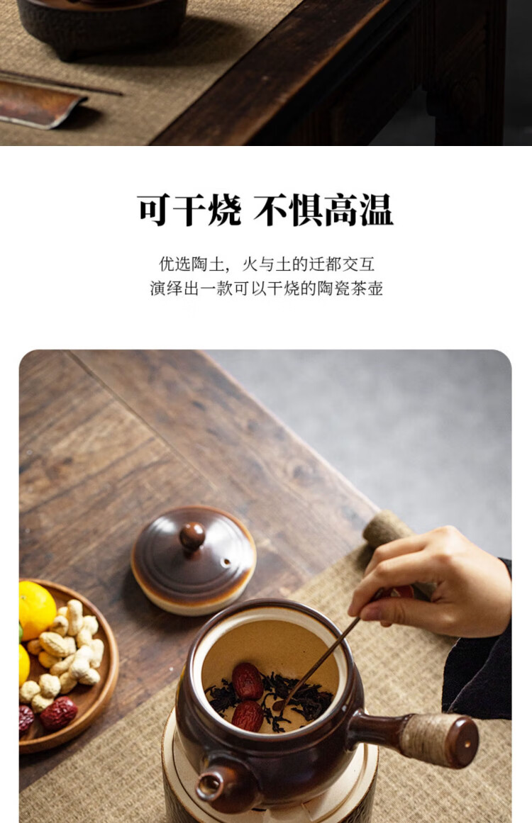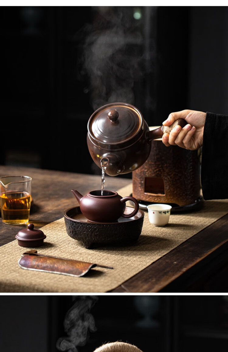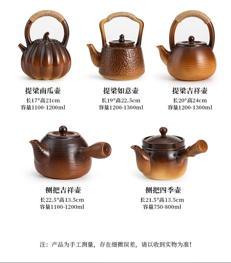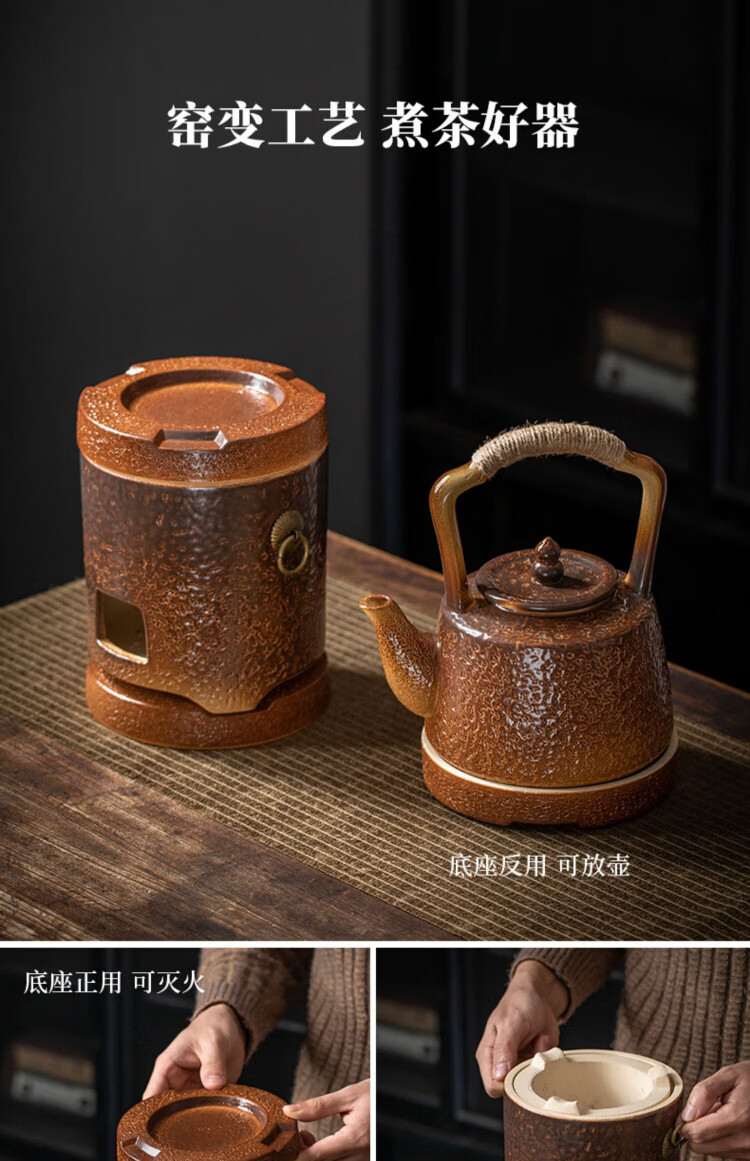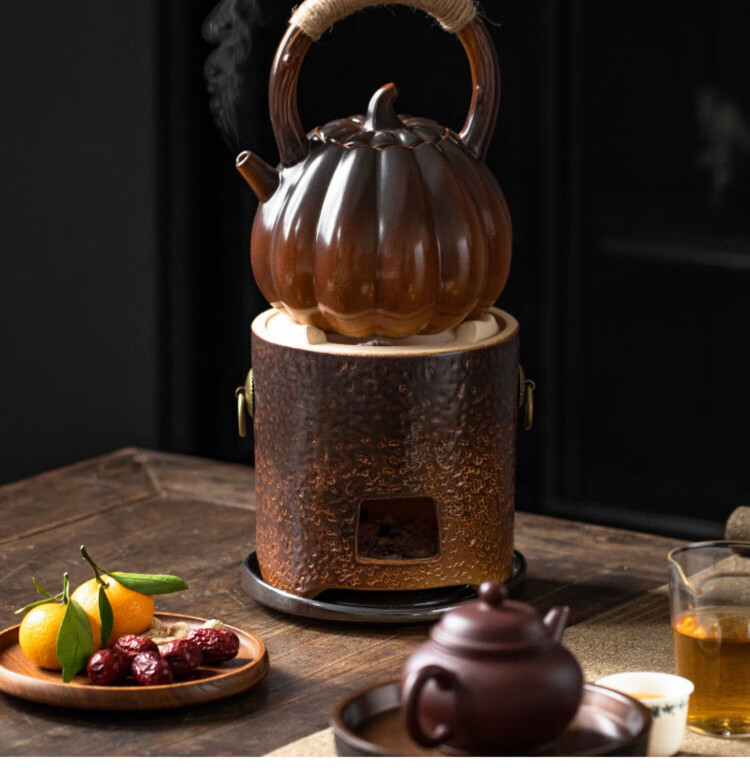 Cooking tea around the stove, pumpkin teapot, side handle kettle, charcoal-burning open fire kettle, indoor household retro tied teapot, double-ring carbon stove