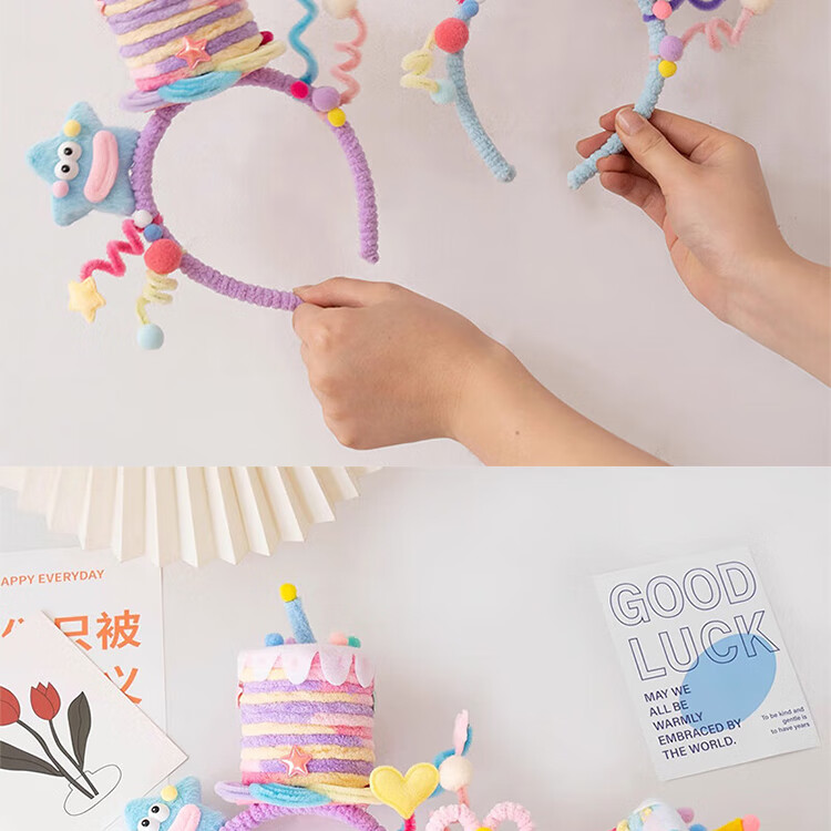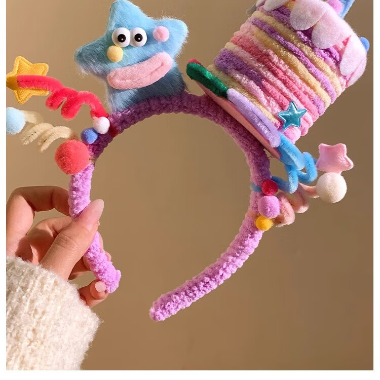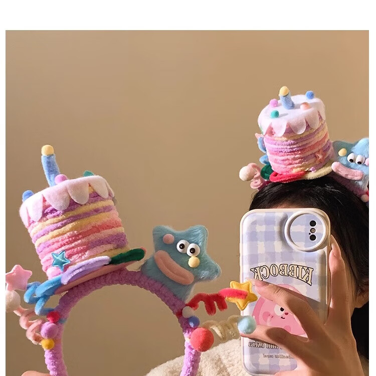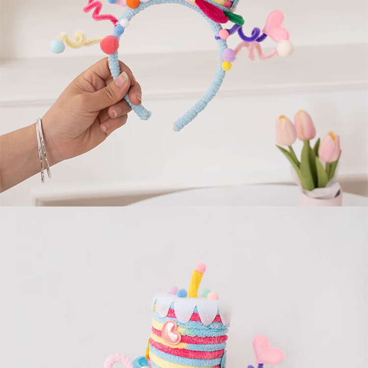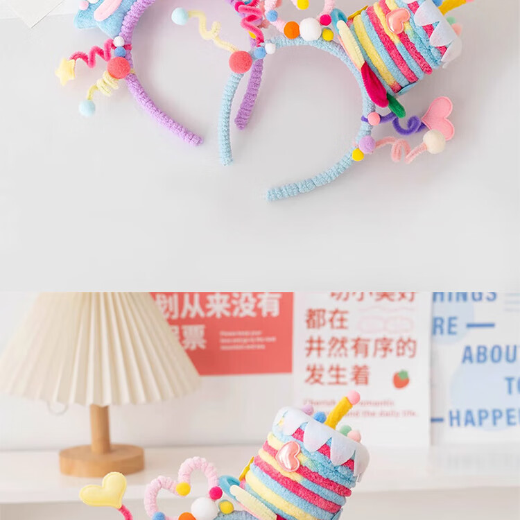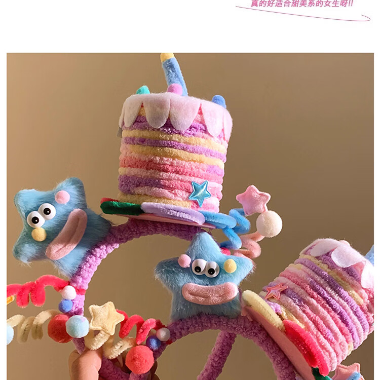 Birthday headband twist stick handmade finished children's first-year dinner party photo props cute hair accessories funny star birthday cake headband