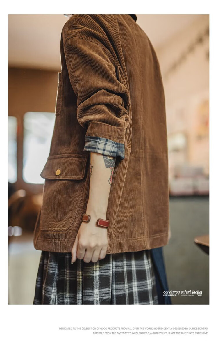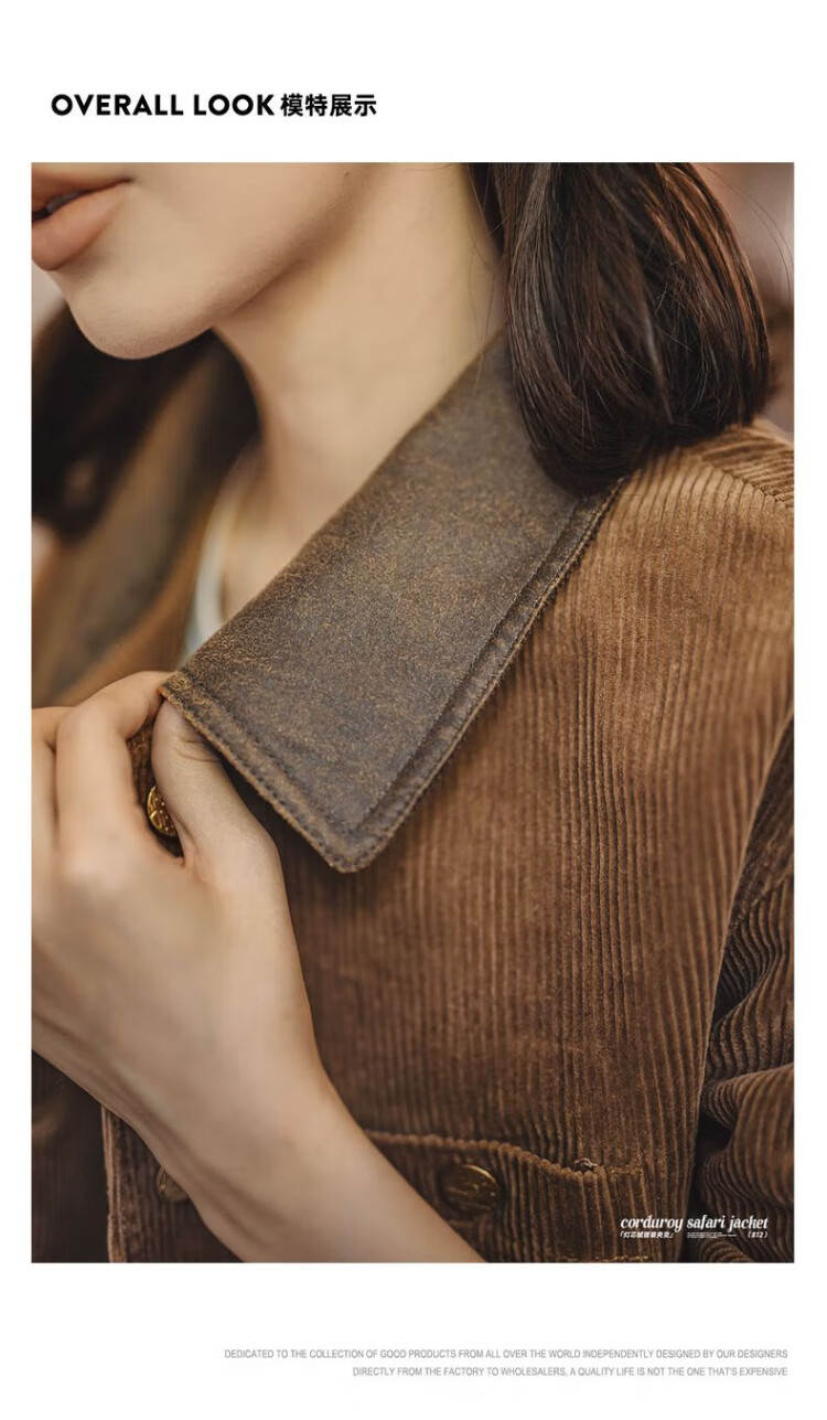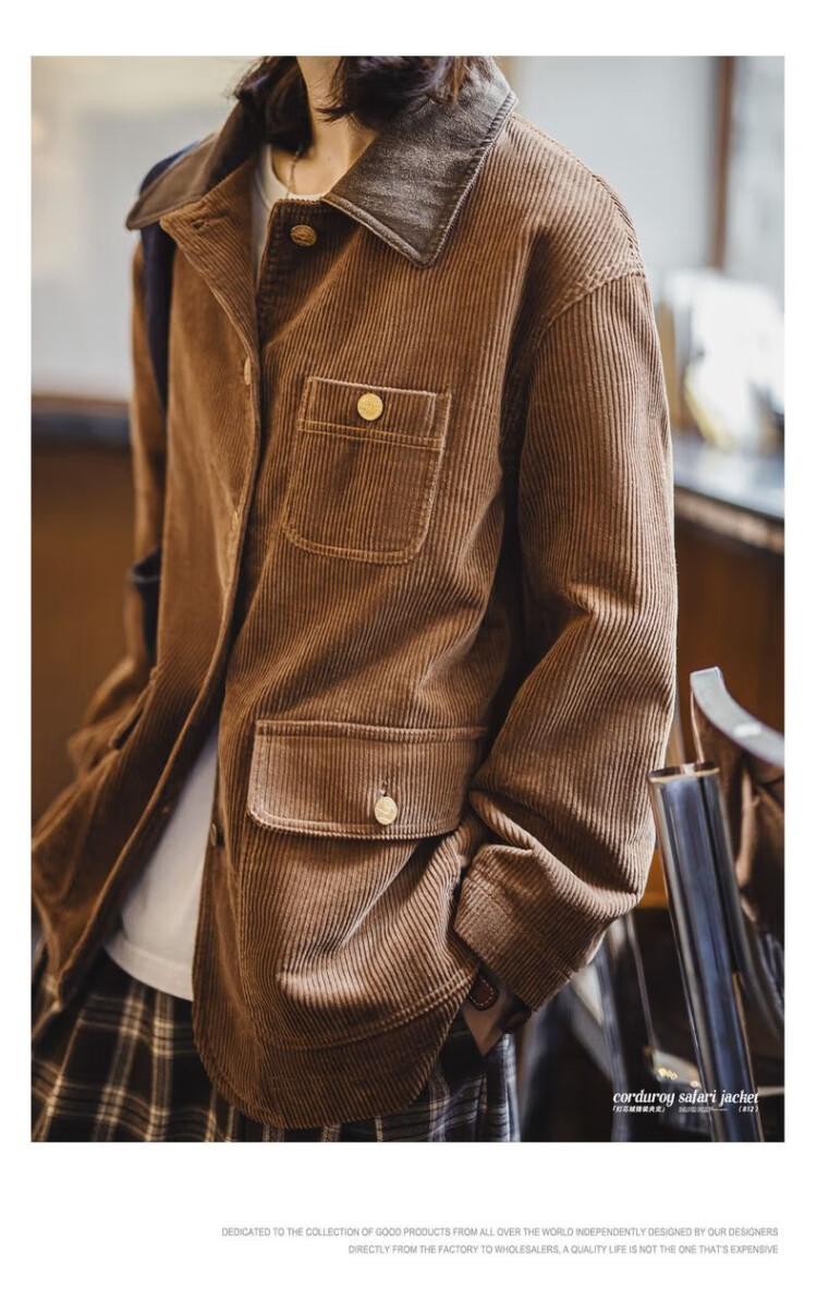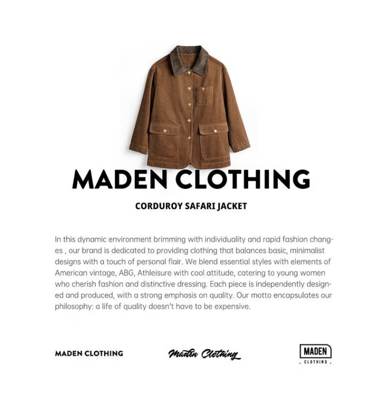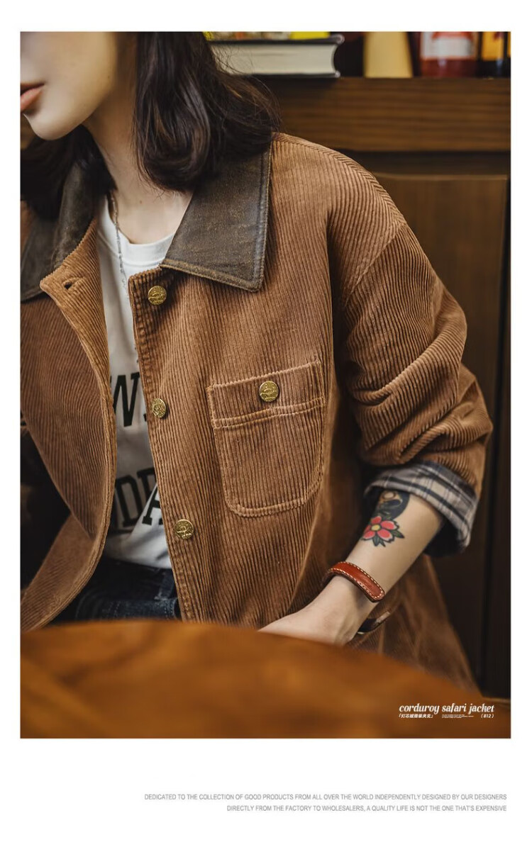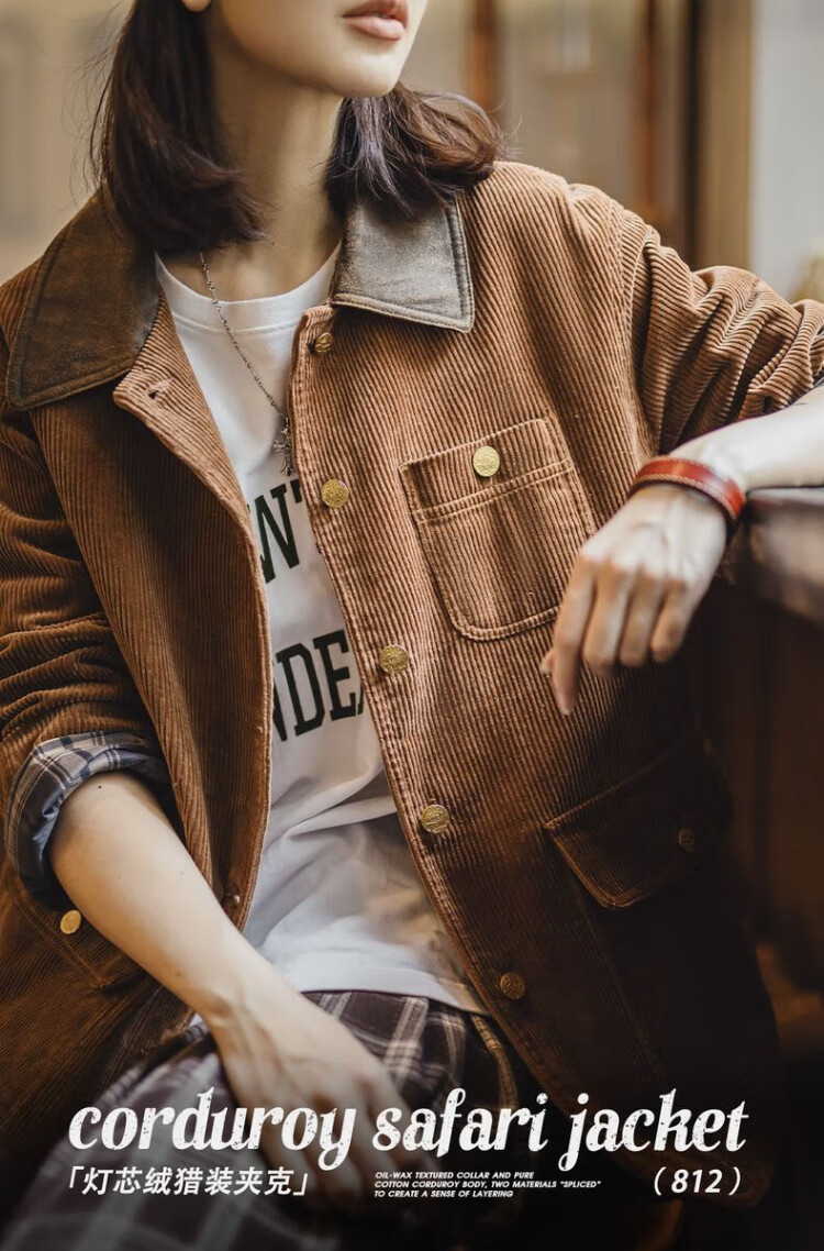 Madden Vintage Maillard Corduroy Hunting Jacket Women's Autumn and Winter New Contrast Lapel Corduro Women's Work Jacket Chestnut Shell Brown M (100-120Jin Jin equals 0.5kg)