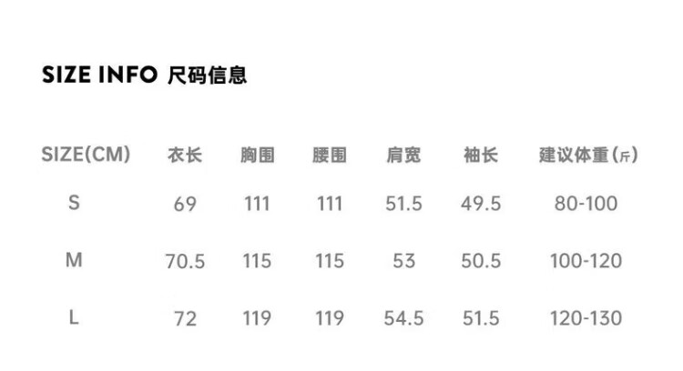 China(cm) 72-76 76-81 81-87 87-93 93-98