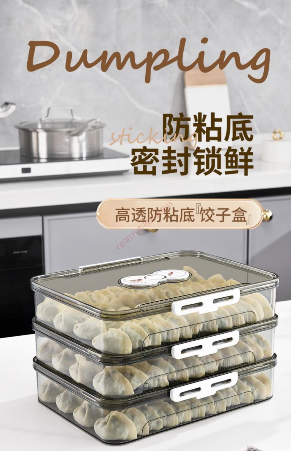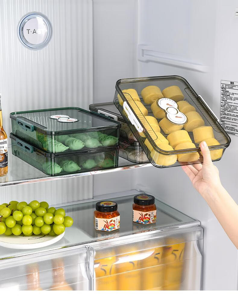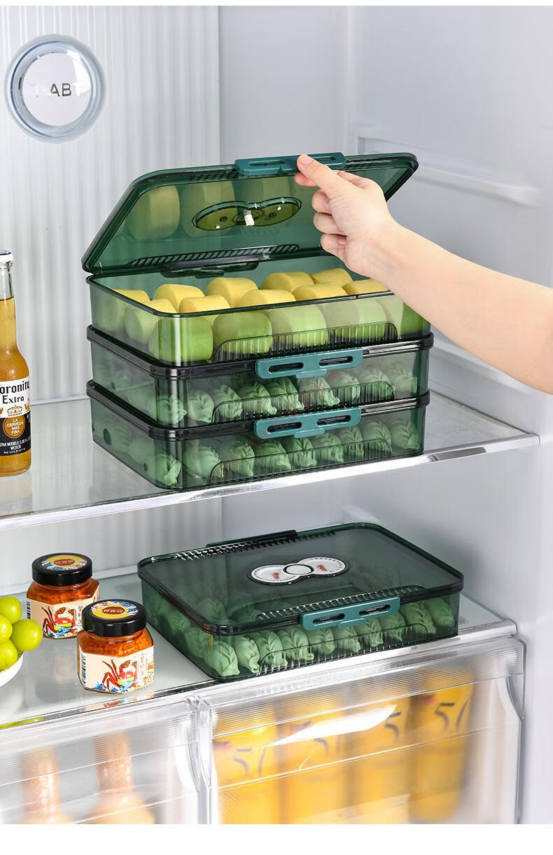 CLCEY dumpling box, specially sealed for household food freezing, fresh-keeping dumplings, wontons, quick-frozen kitchen refrigerator storage artifact, transparent, one cover and one layer, holds about 40-50 dumplings