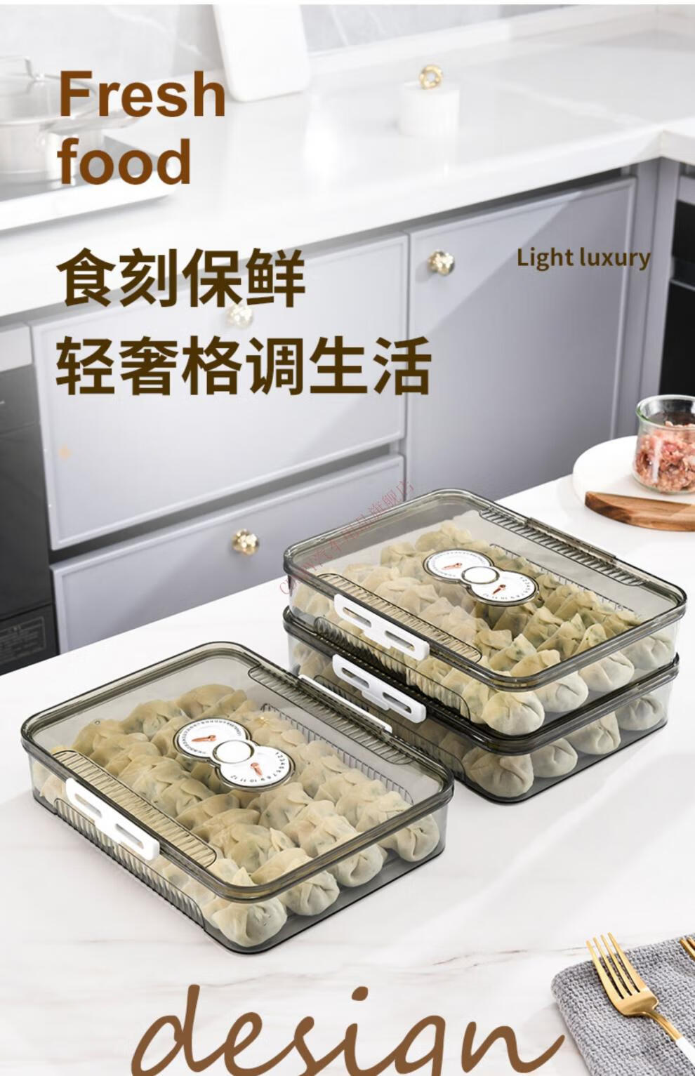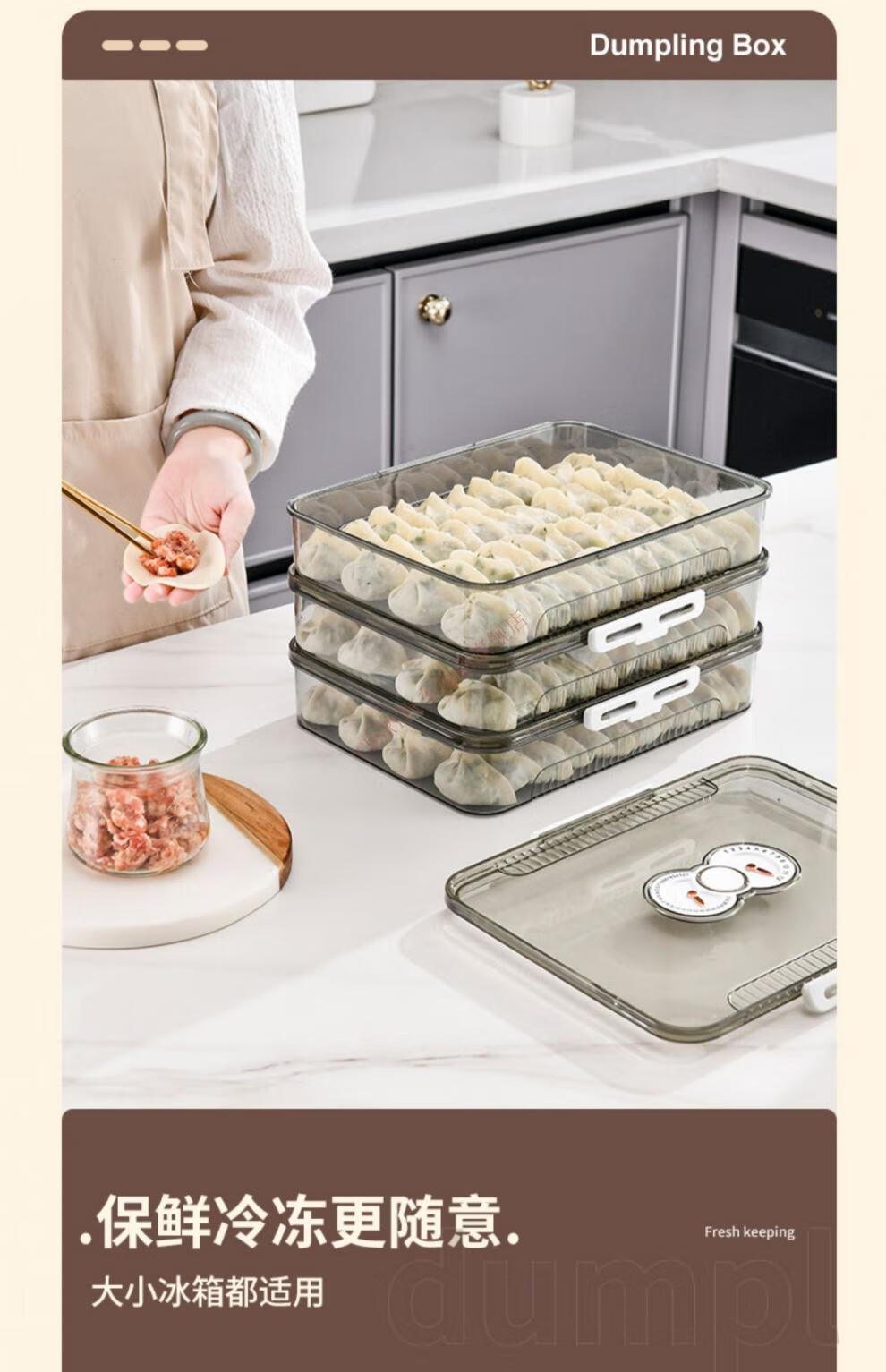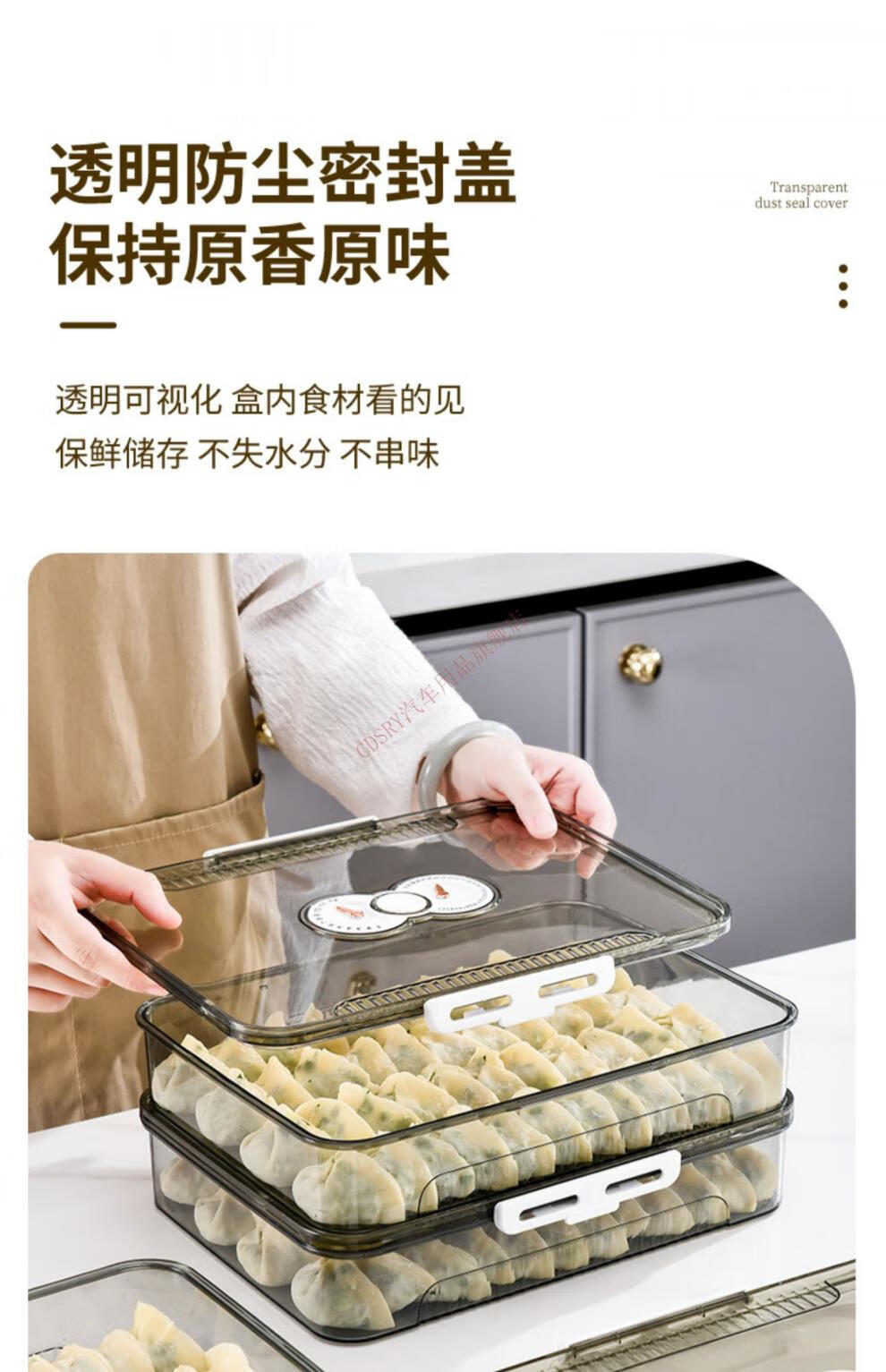 CLCEY dumpling box, specially sealed for household food freezing, fresh-keeping dumplings, wontons, quick-frozen kitchen refrigerator storage artifact, transparent, one cover and one layer, holds about 40-50 dumplings