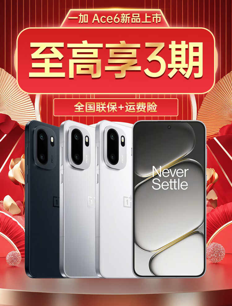 OnePlus has 15% off on national supplements. OnePlus Ace 6, new Ace6, Snapdragon 8 Extreme, 165Hz high refresh rate, eye protection, gaming screen, 7800mAh glacier battery, AI mobile game photography, flash white, 16GB+512GB, official standard configuration, nationwide warranty